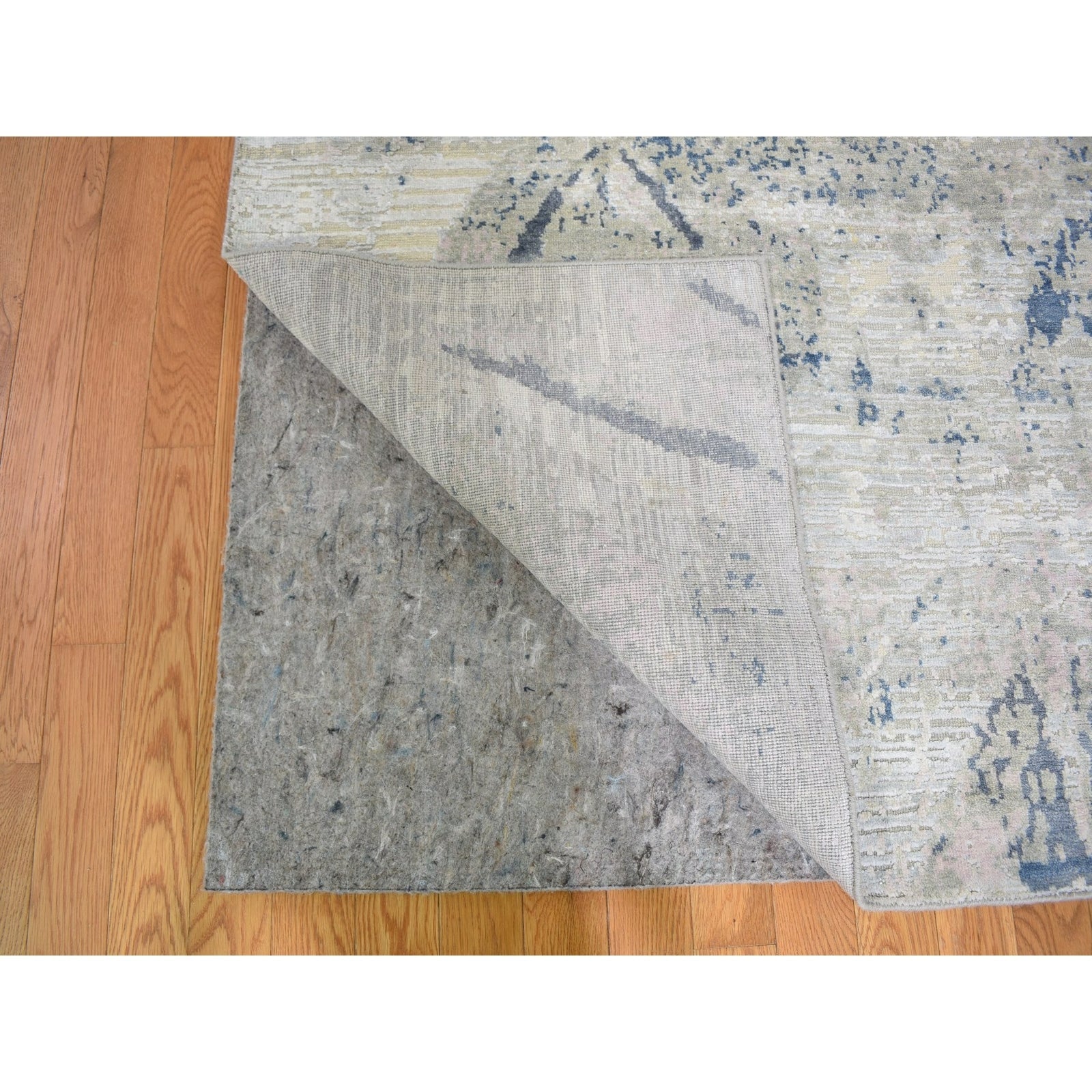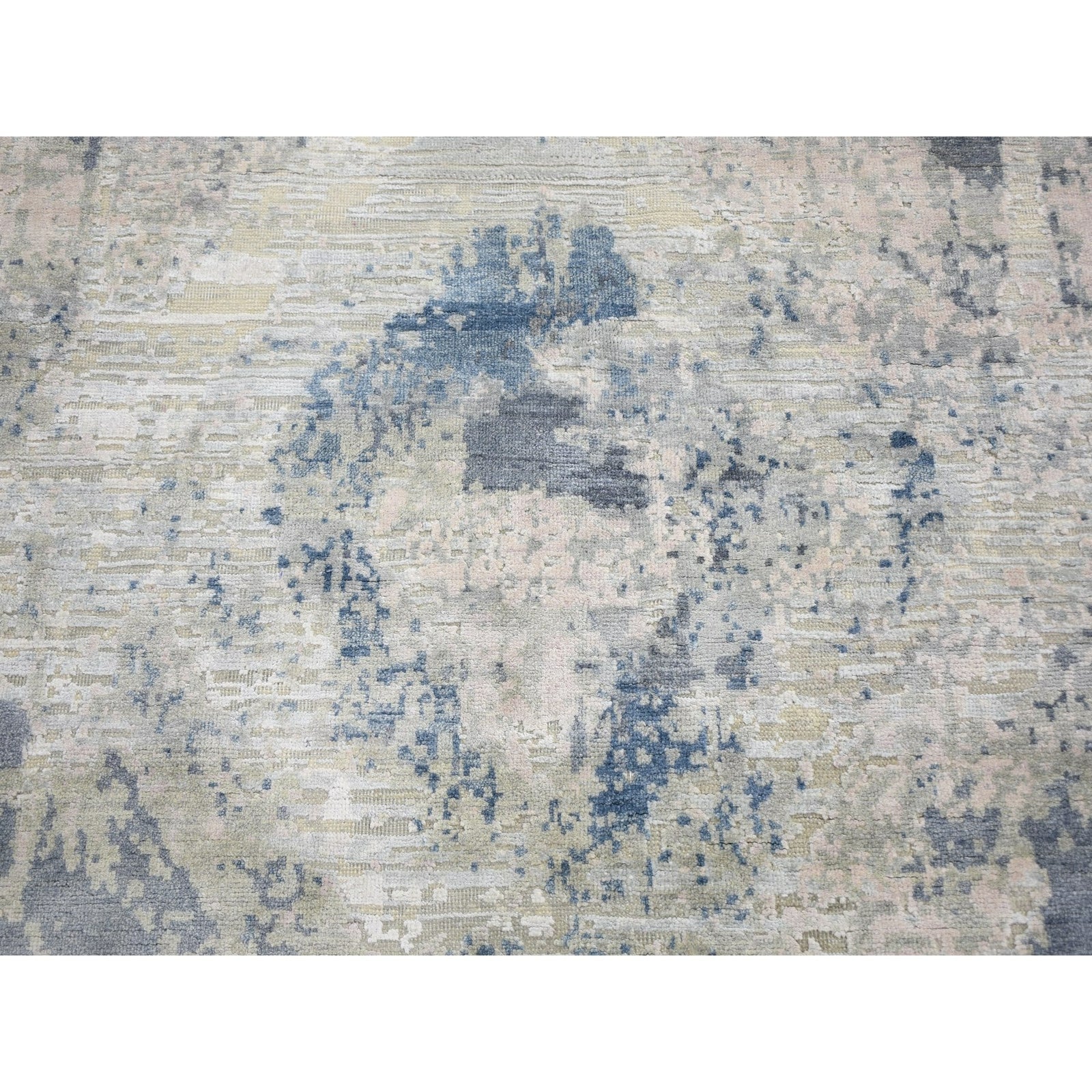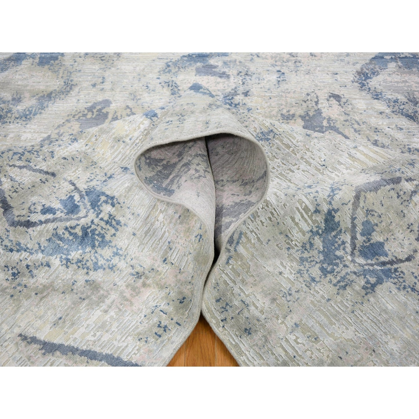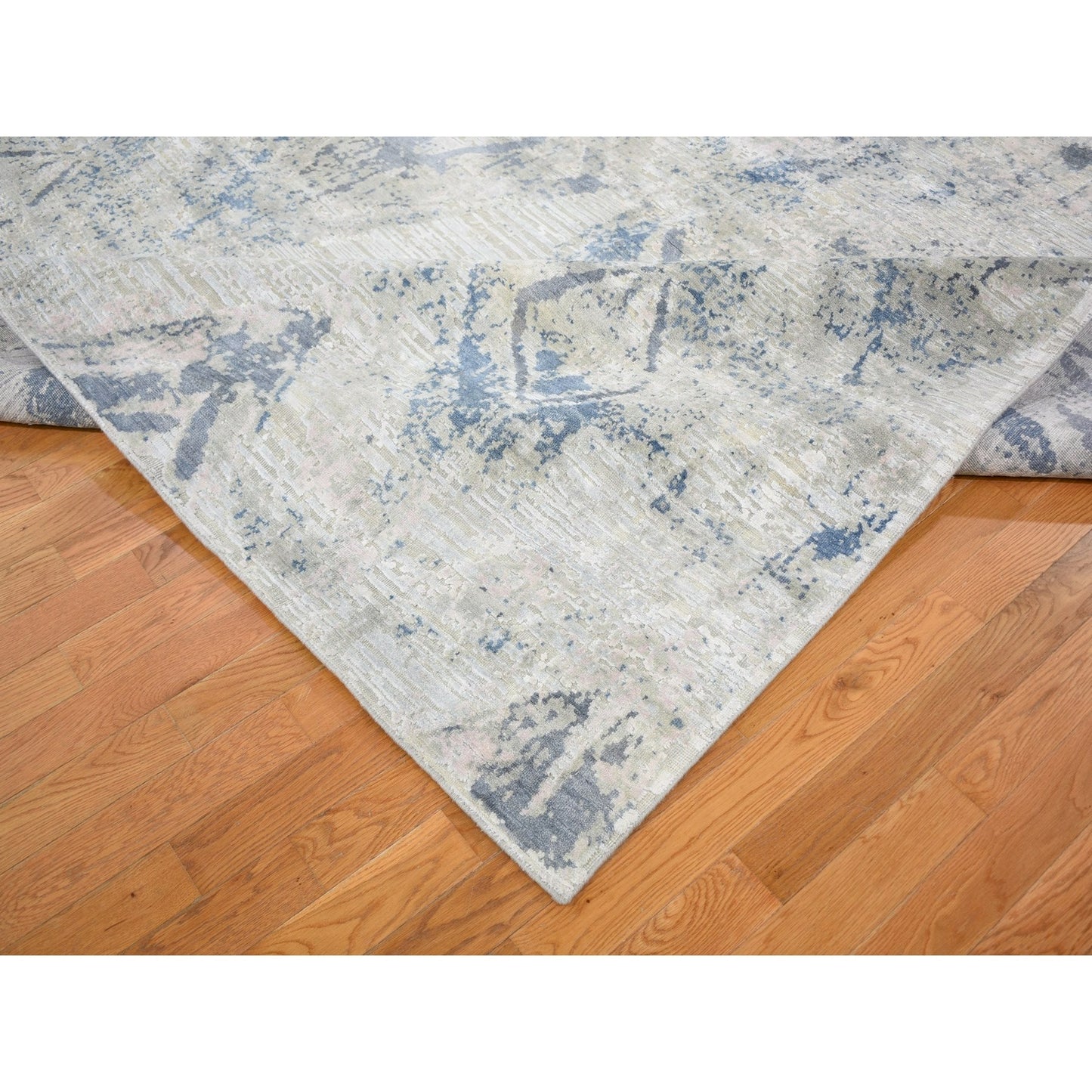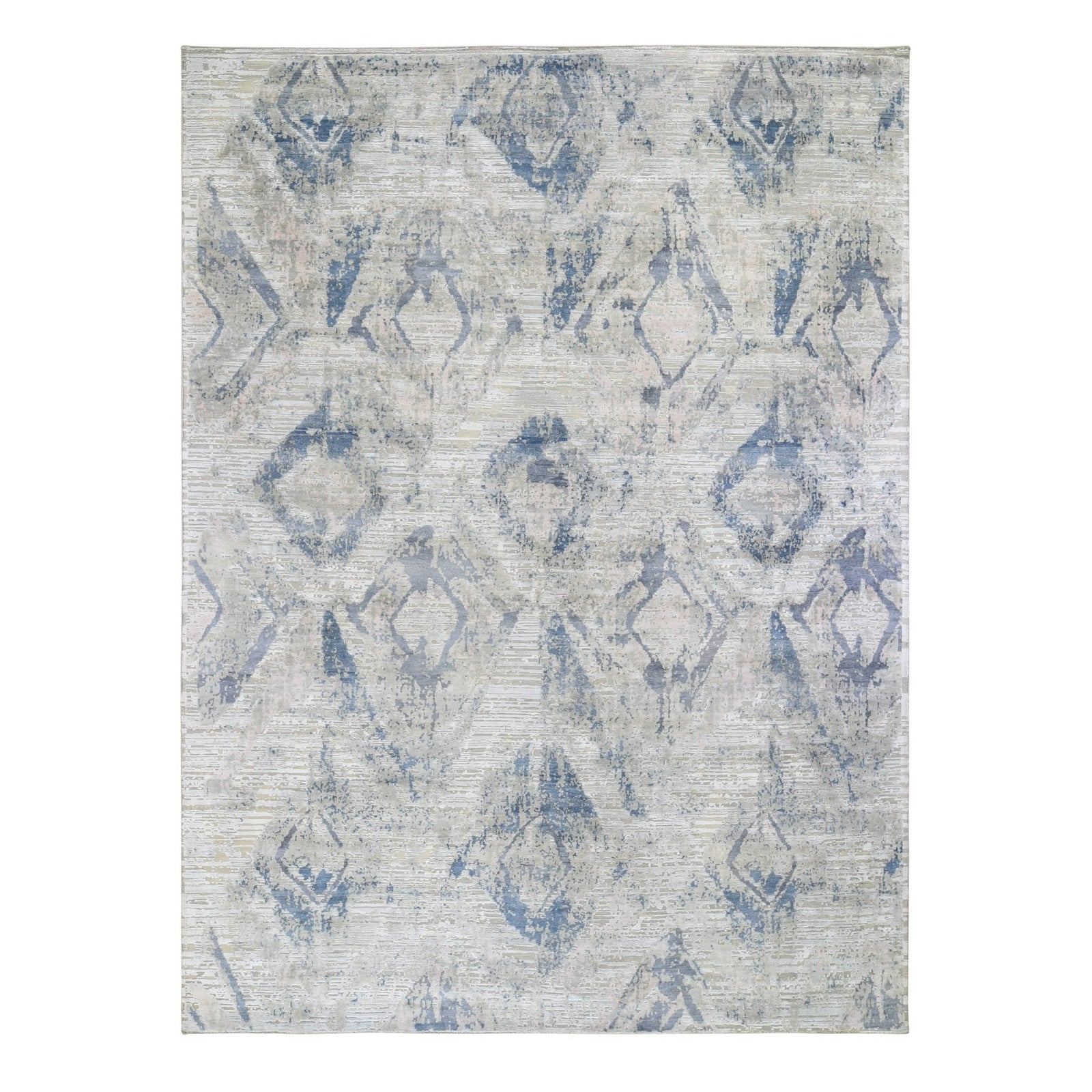 8'10"X12'1" Ivory Large Elements With Pastels Silk With Textured Wool Rug