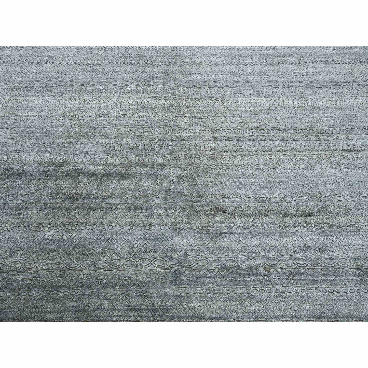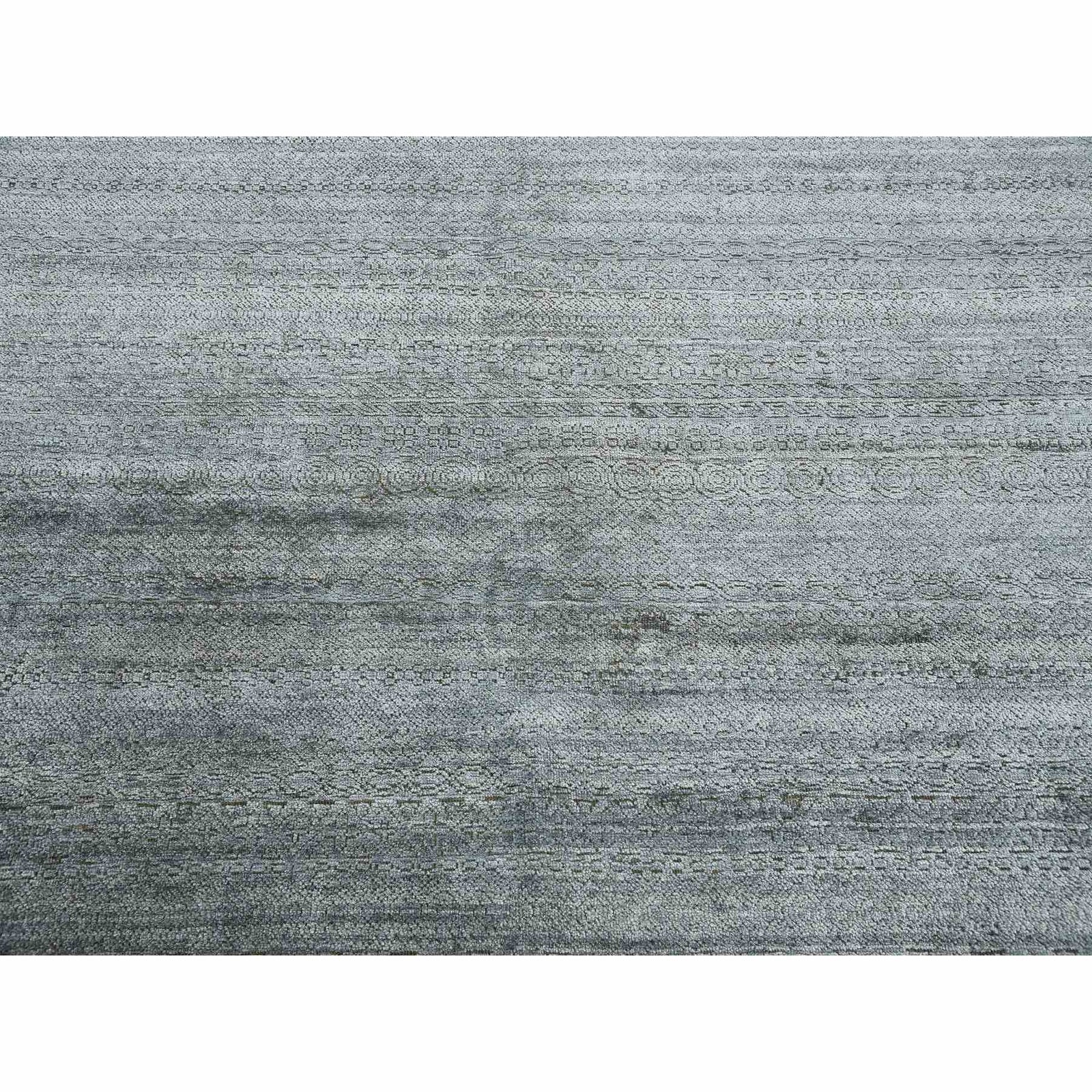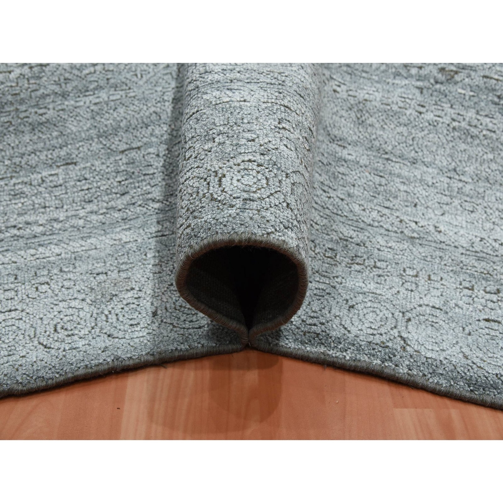 8'10"X8'10" Gray Silk Transitional Design Hand Knotted Square Rug
