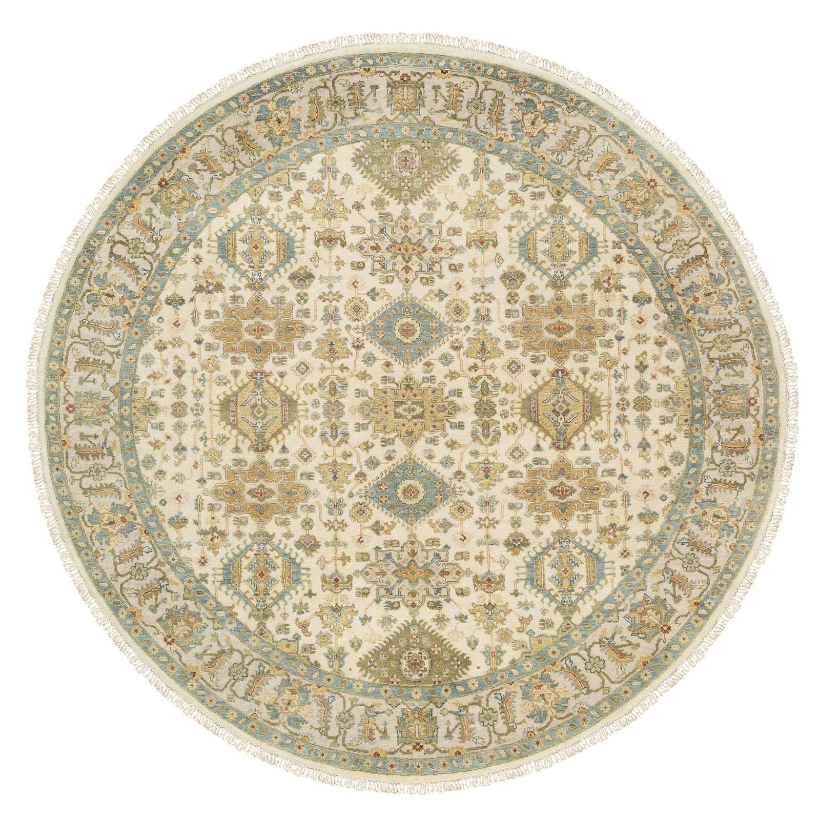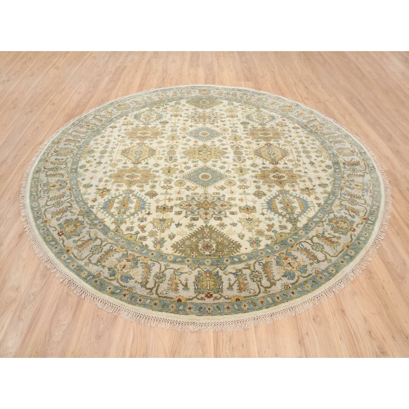 8'10"X8'10" Ivory Hand Knotted Karjihooz Design Wool Round Rug