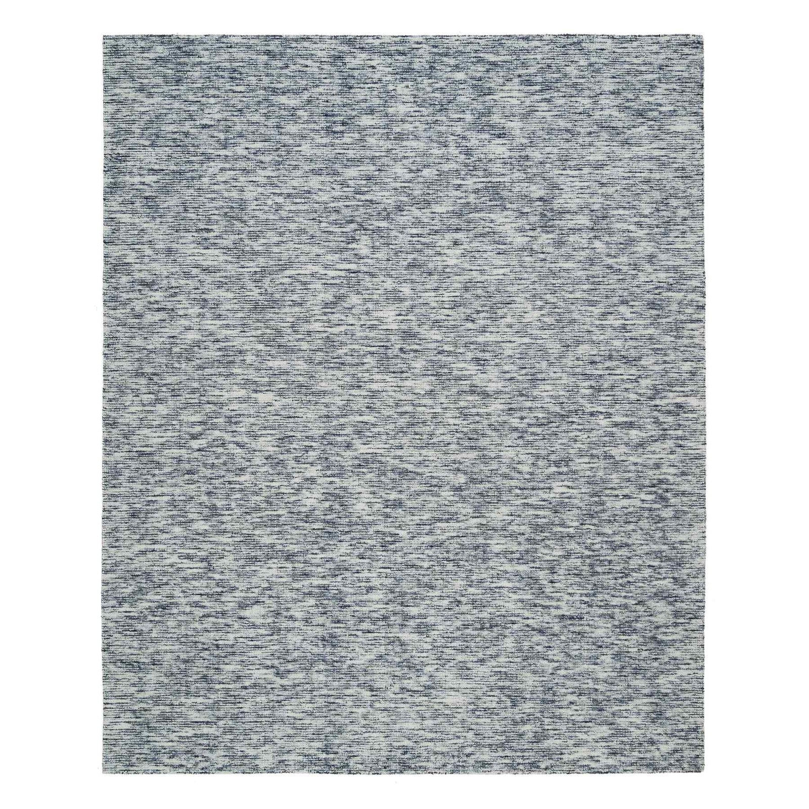 8'1"X10' Blue Hand Loomed Modern Striae Design Pure Wool Rug