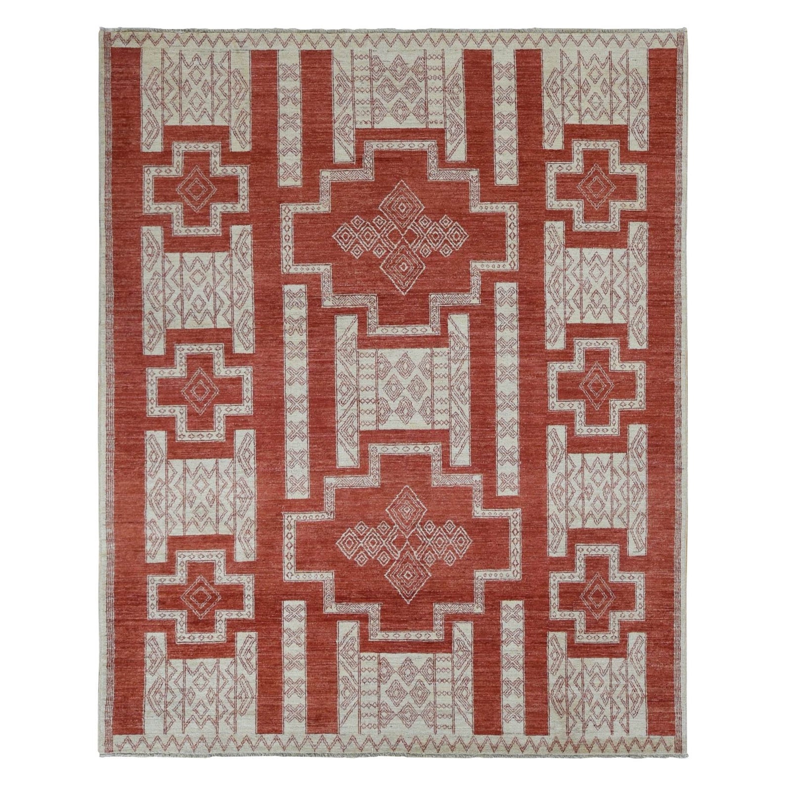 8'1"X10' Red Wool Hand Knotted Peshawar With Geometric Motifs Rug