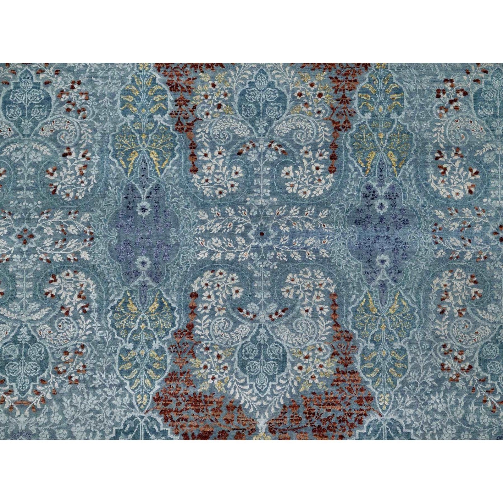 8'1"X10'1" Cerulean Blue Jewelry Design Wool And Silk Hand Knotted Rug
