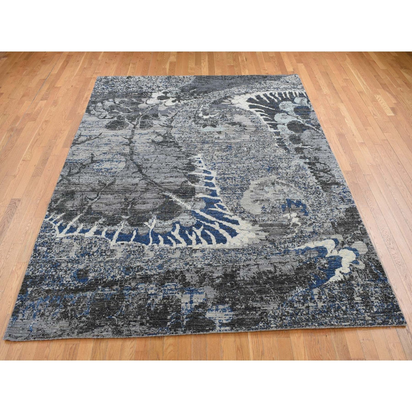 8'1"X10'1" Gray Broken Flower Design Pure Wool Hand Knotted Rug