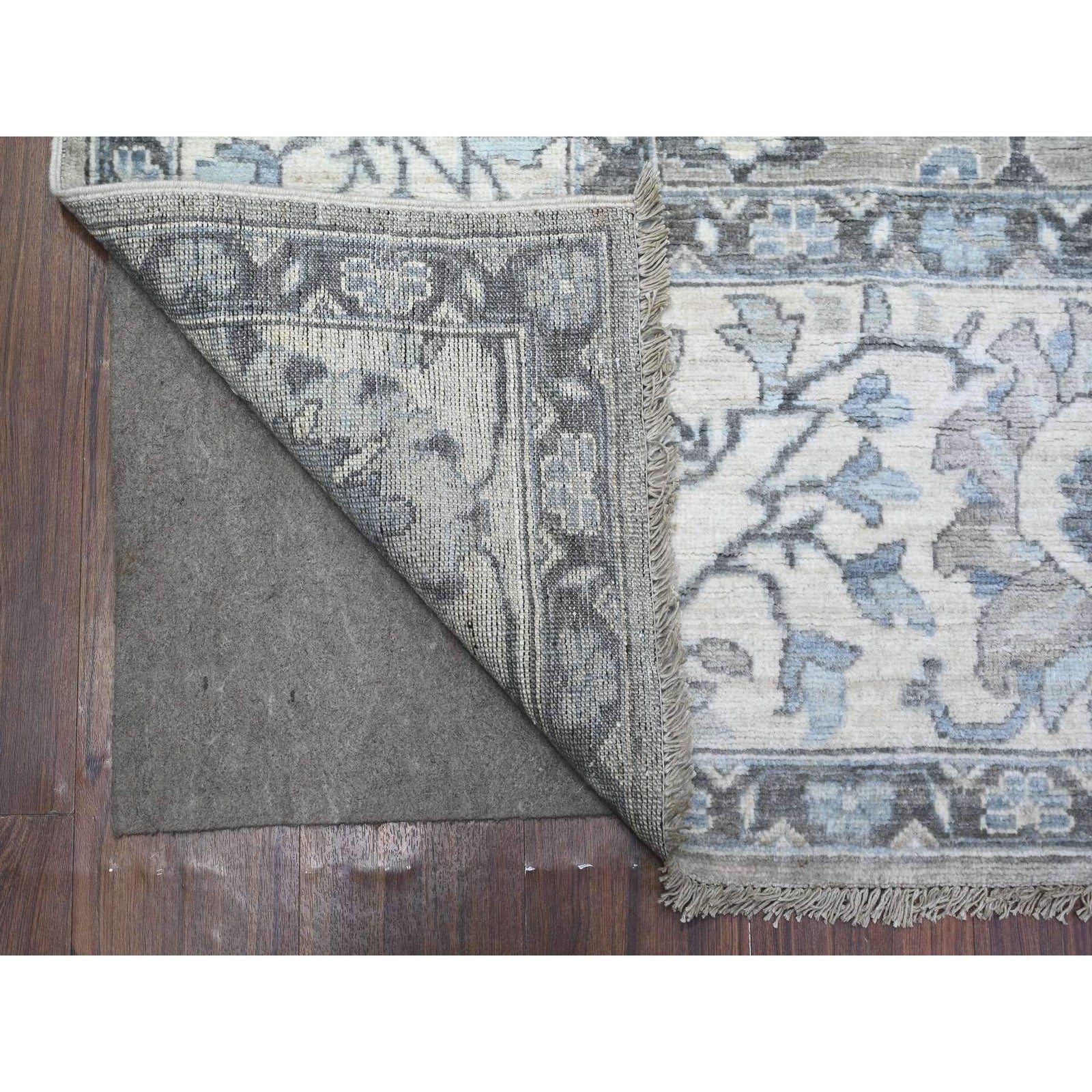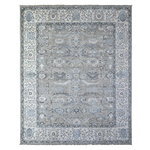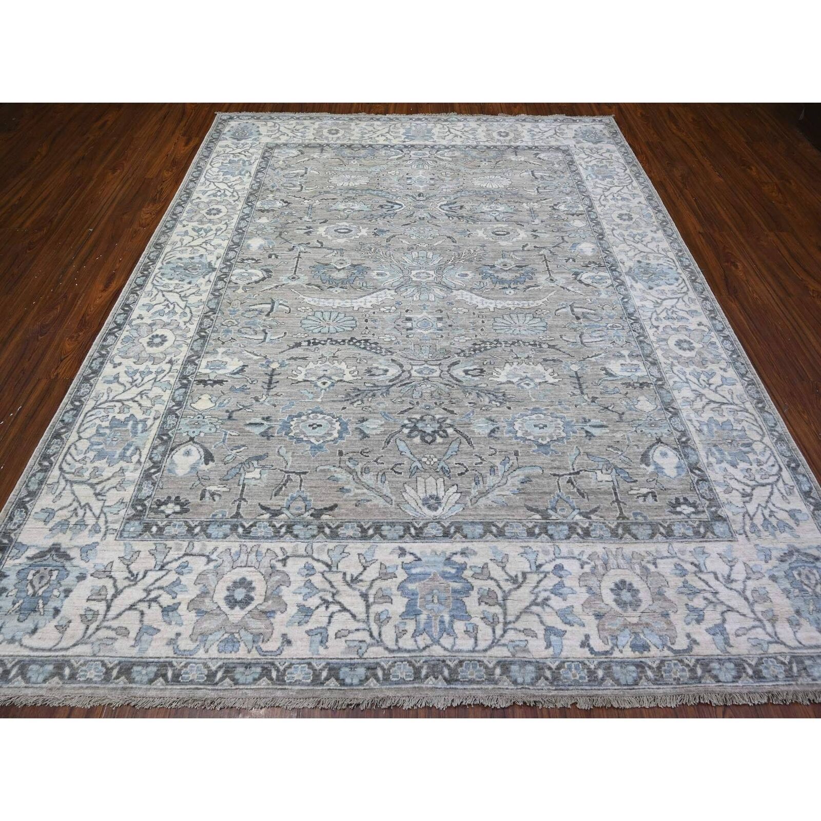 8'1"X10'1" Gray Sickle Leaf Design Hand Knotted Peshawar Heris Wool Rug