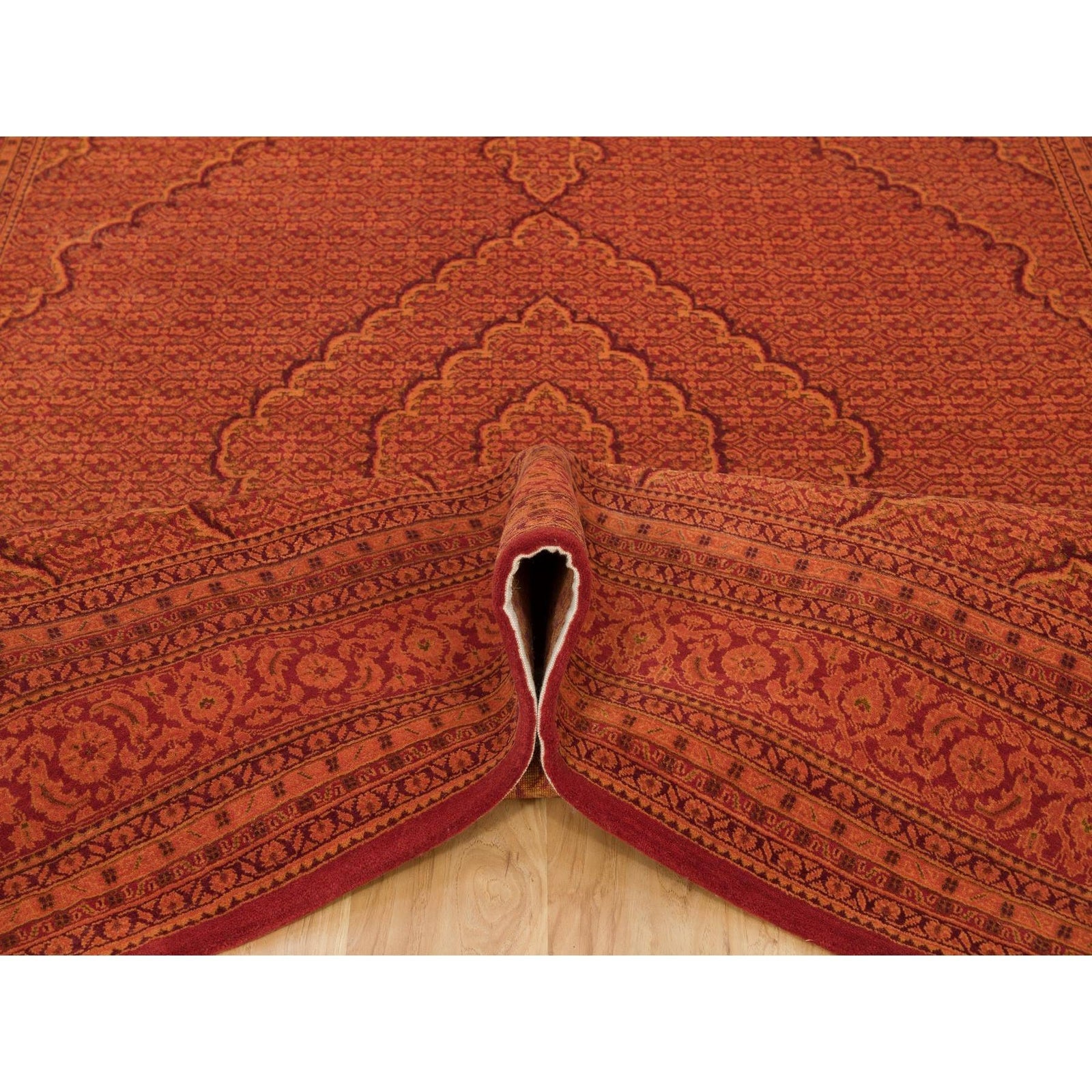 8'1"X10'1" Spicy Orange Wool And Silk Tebraz Mahi Hand Knotted Rug