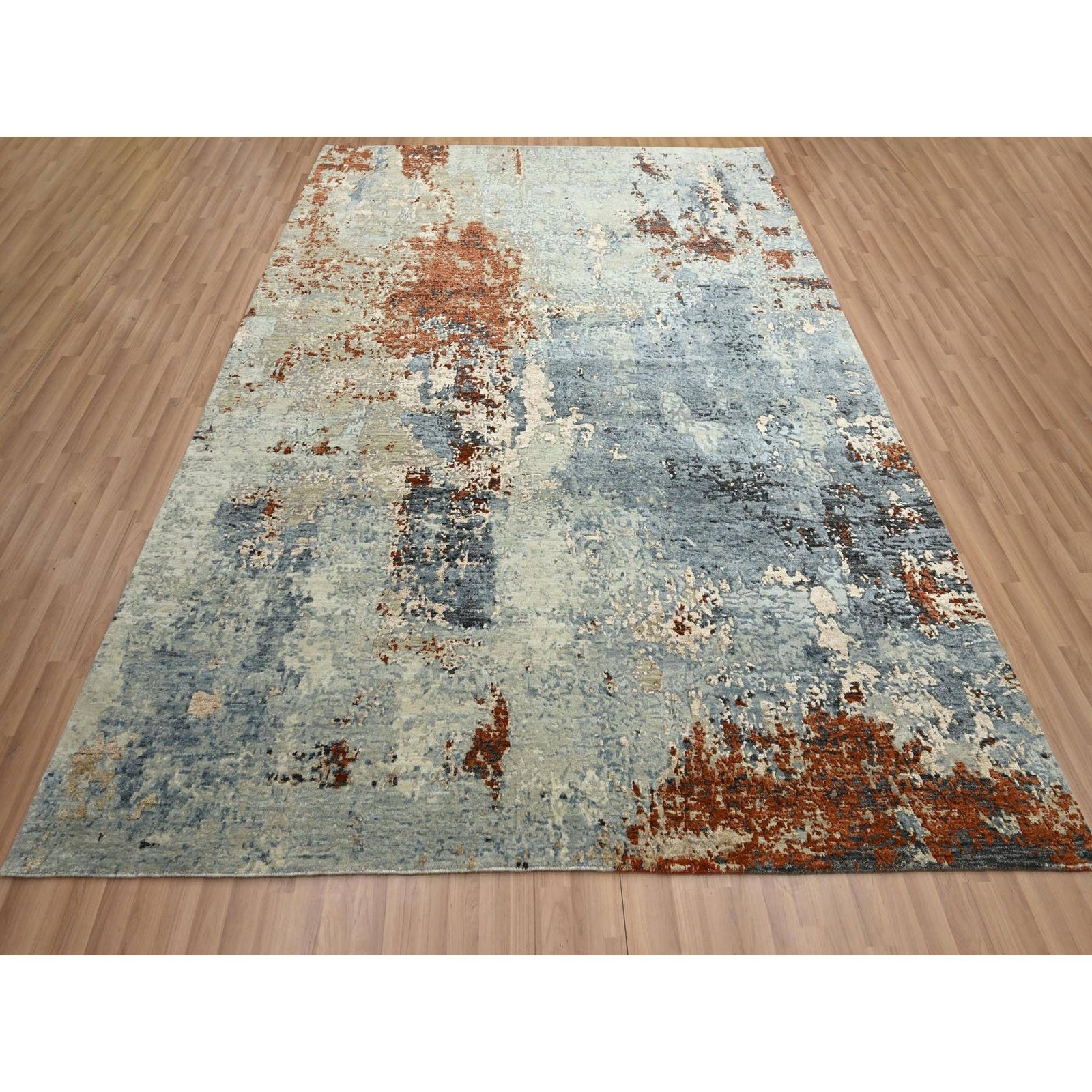 8'1"X10'2" Gray-Beige Abstract Design Pure Wool Hand Knotted Oriental Rug