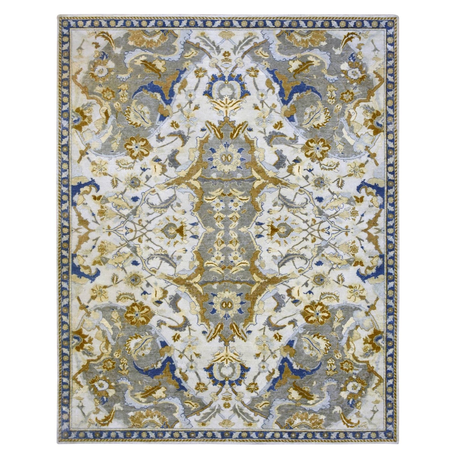 8'1"X10'2" Ivory Zoroastrian Ispahan Inspired Hand Knotted 100% Wool Rug