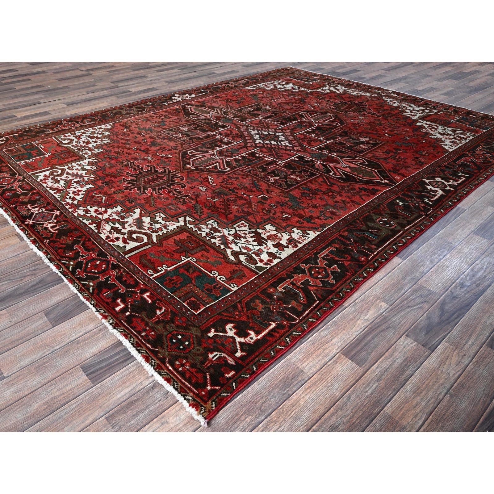8'1"X10'8" Blush Red Vintage Zoroastrian Heris Pure Wool Hand Knotted Rug