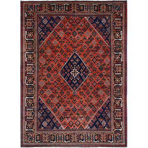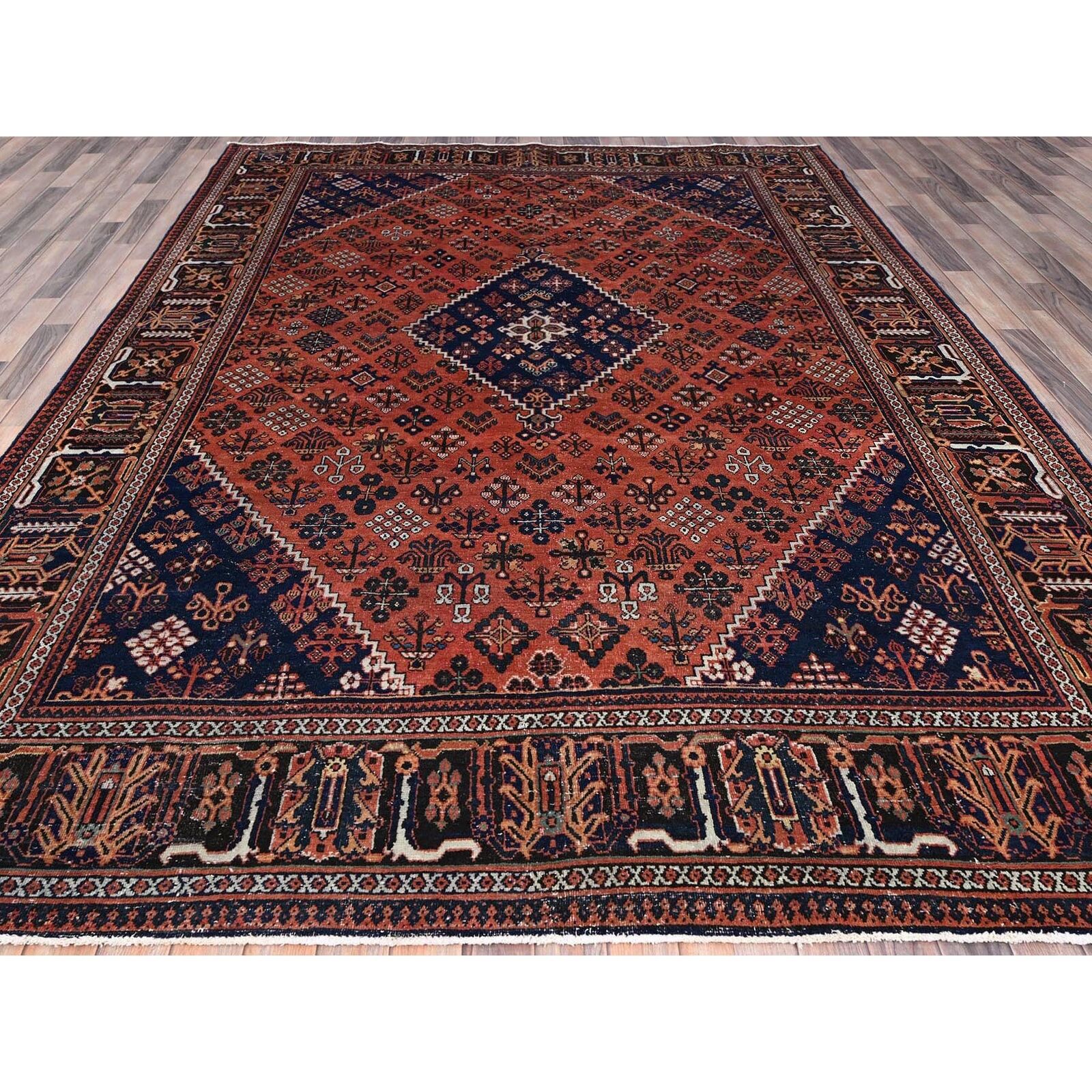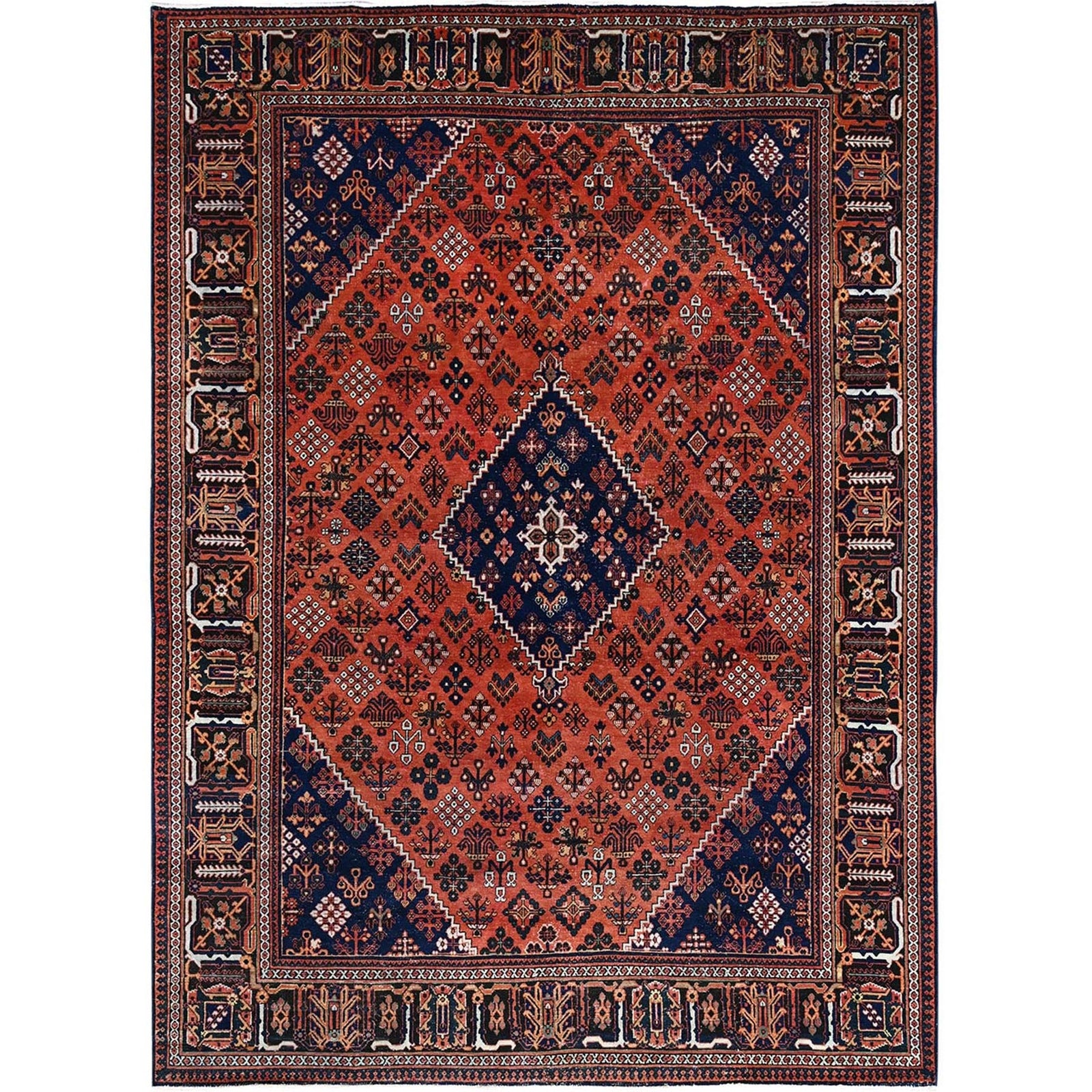 8'1"X11'3" Ochre Red Hand Knotted Vintage Pure Wool Joshagan Cleaned Rug