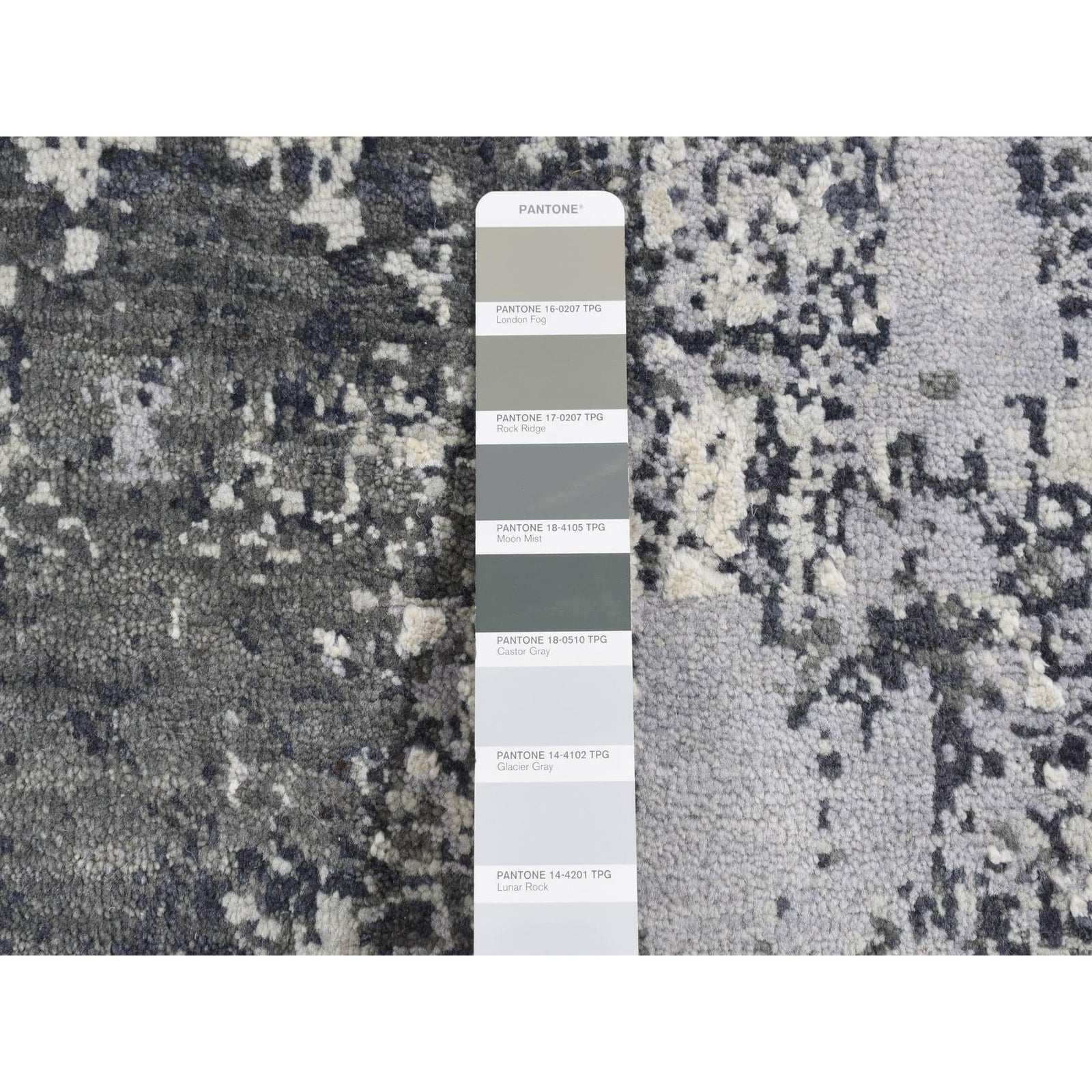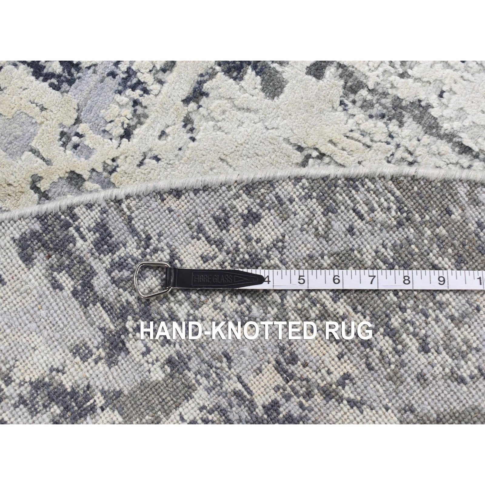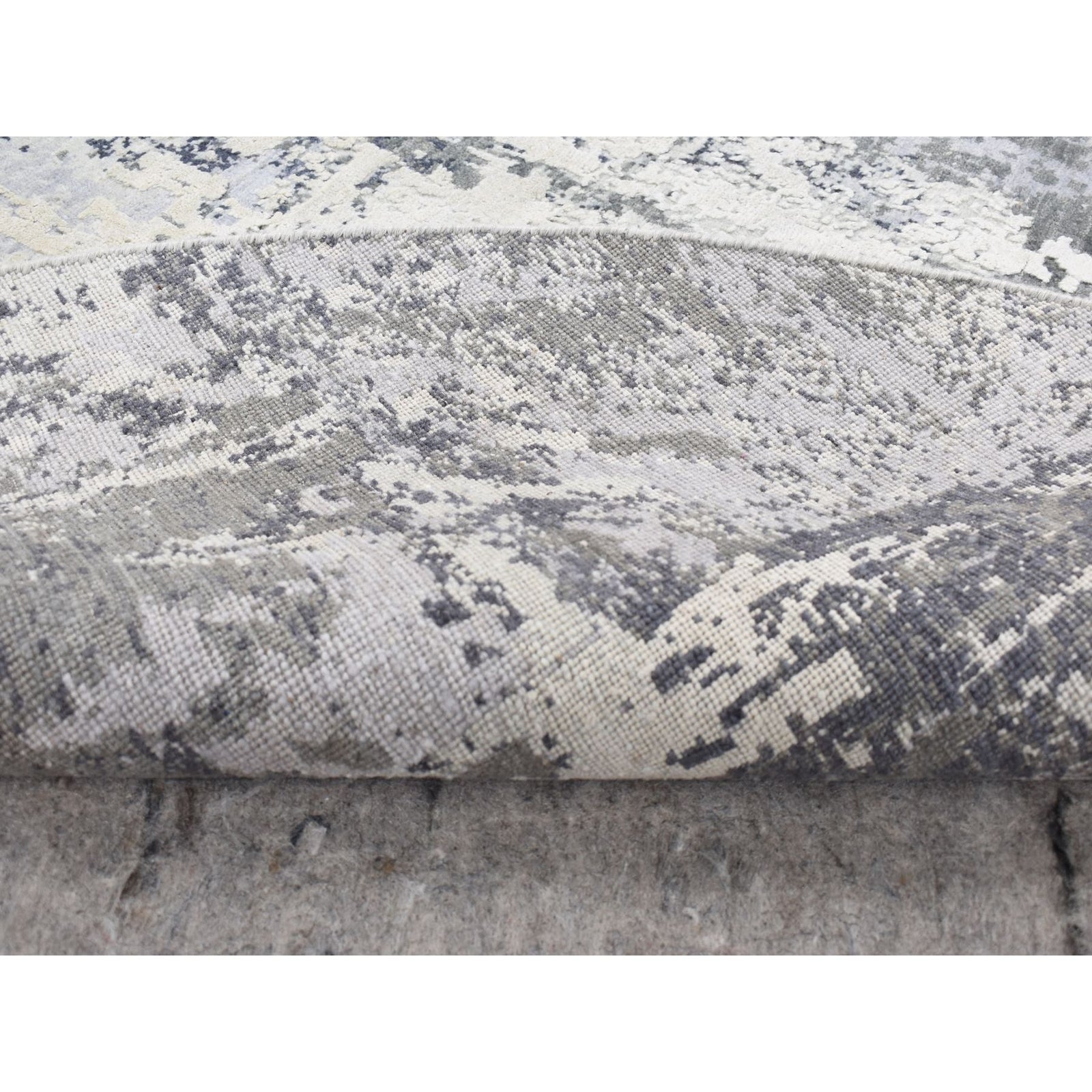 8'1"X8'1" Gray Abstract Design Wool And Pure Silk Hand Knotted Round Rug