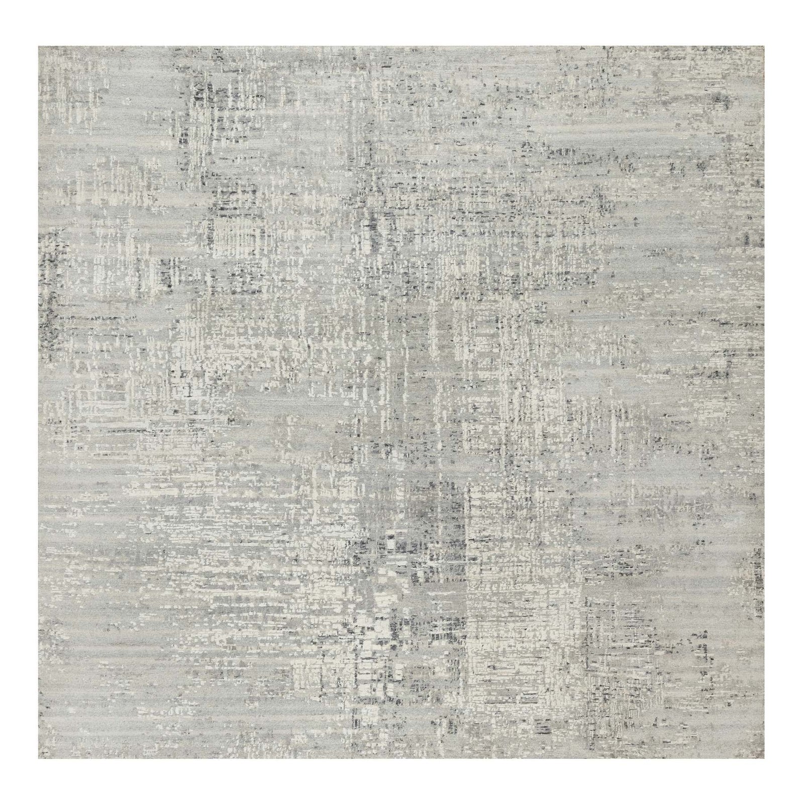 8'1"X8'1" Gray Undyed Natural Wool Modern Hand Knotted Square Rug