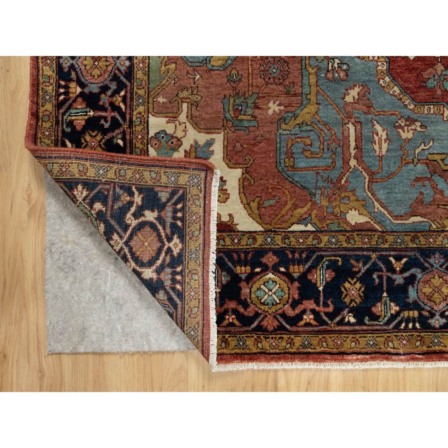 8'1"X8'1" Red Antiqued Fine Heris Recreation Wool Hand Knotted Square Rug