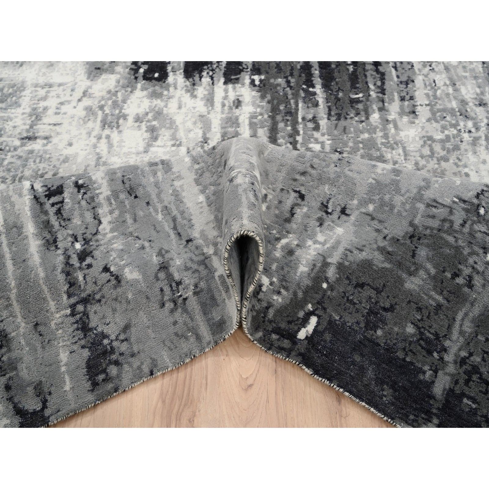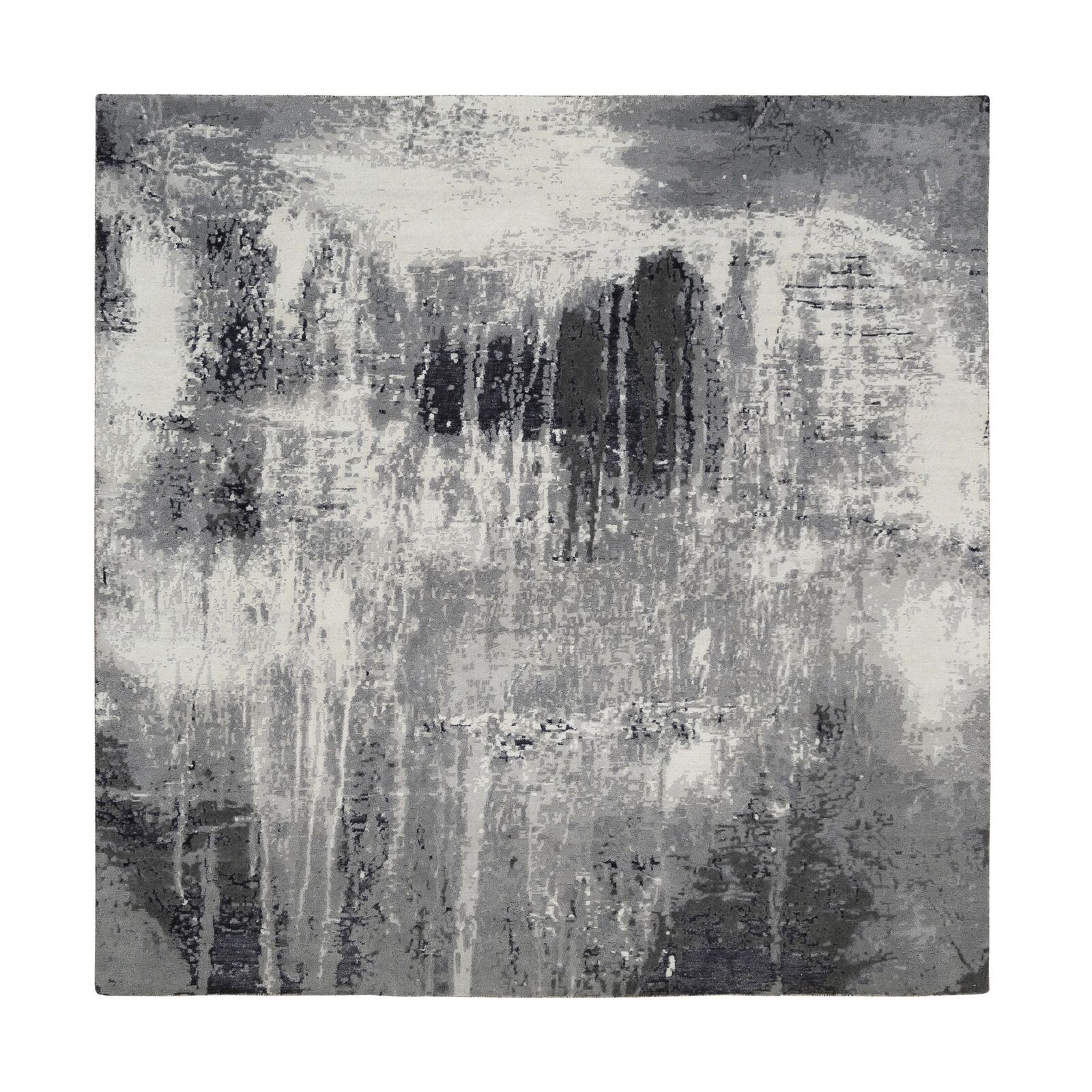 8'1"X8'1" Wool And Silk Ivory Abstract Design Hand Knotted Square Rug