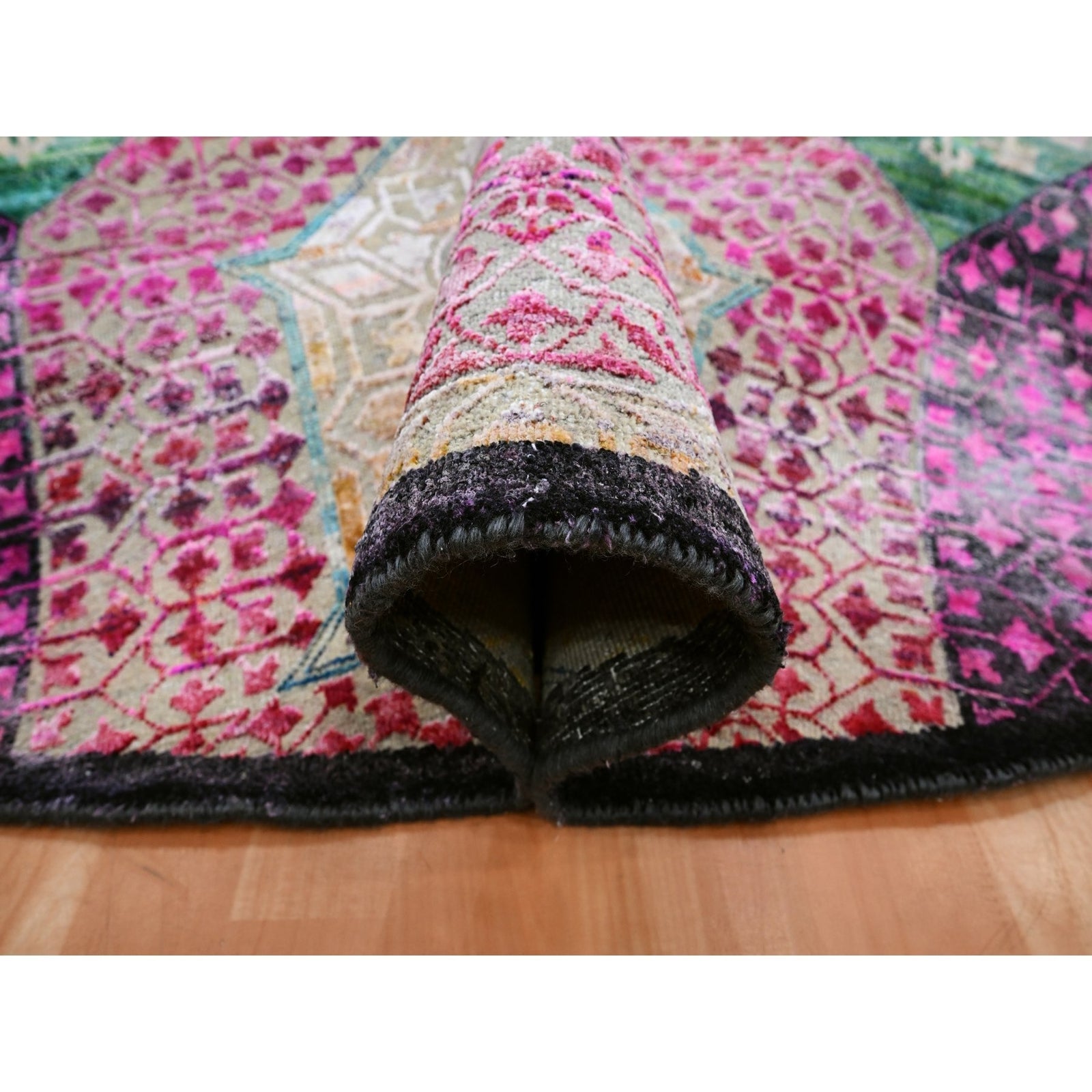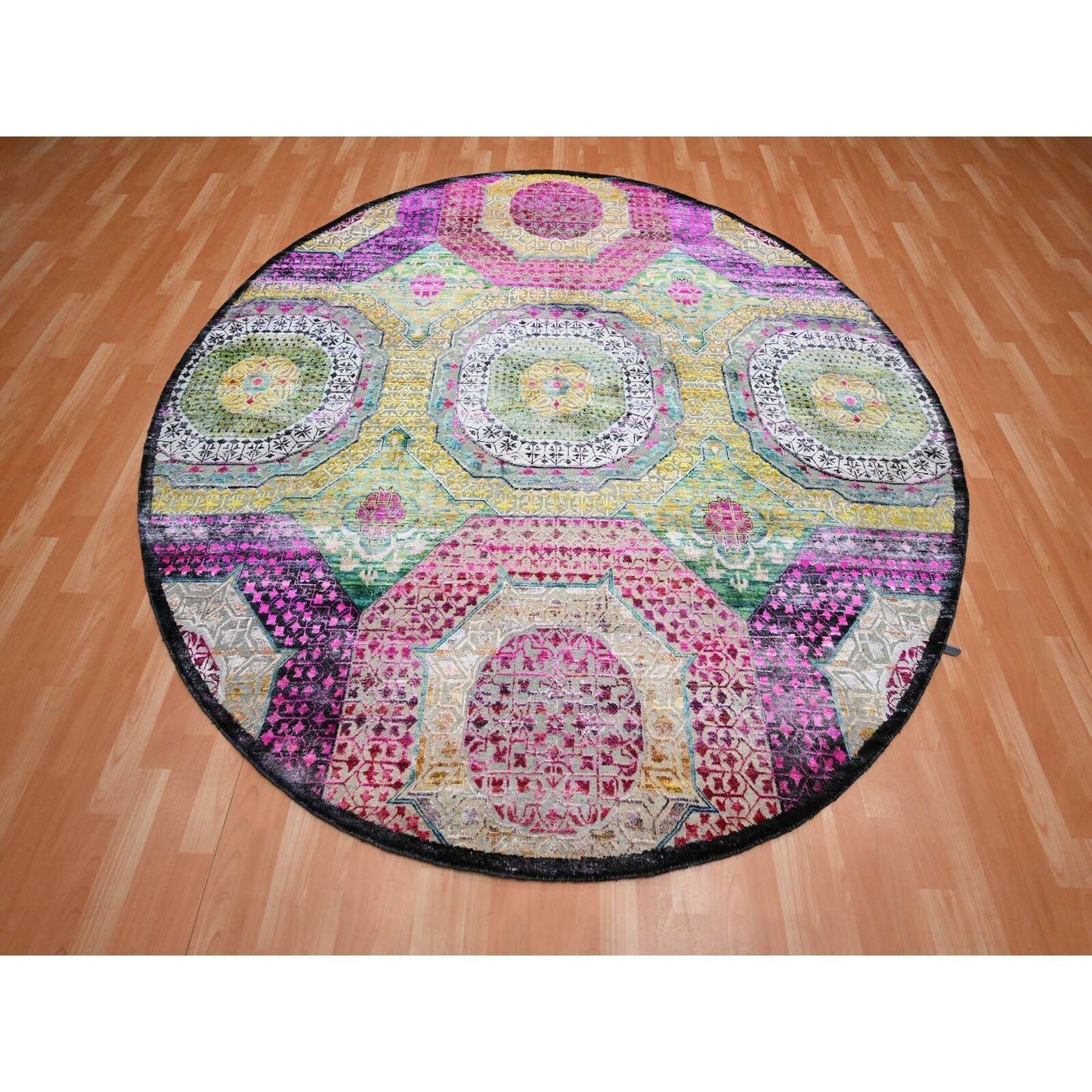 8'1"X8'1" Yellow Mamluk Design Sari Silk With Wool Hand Knotted Round Rug