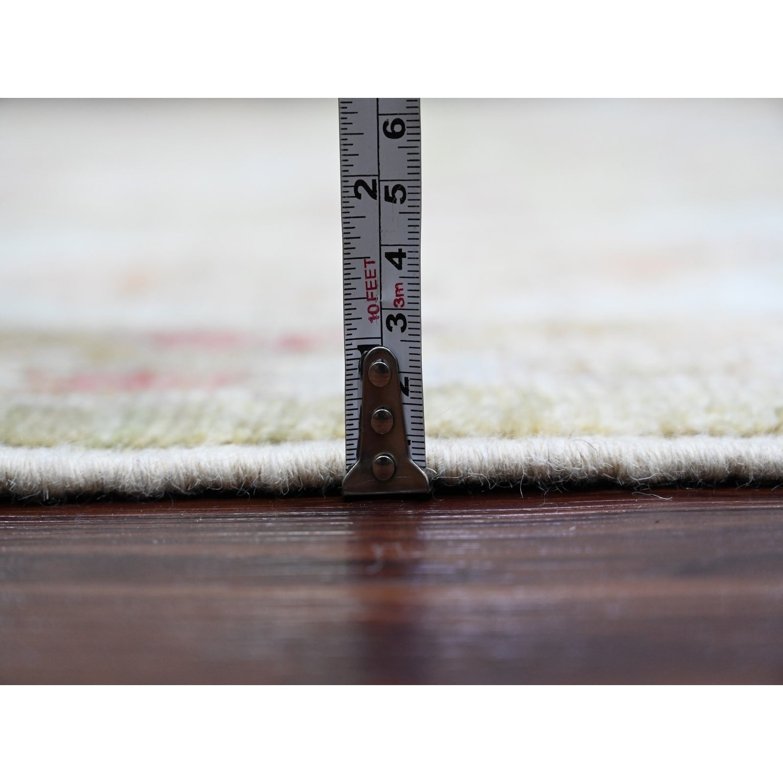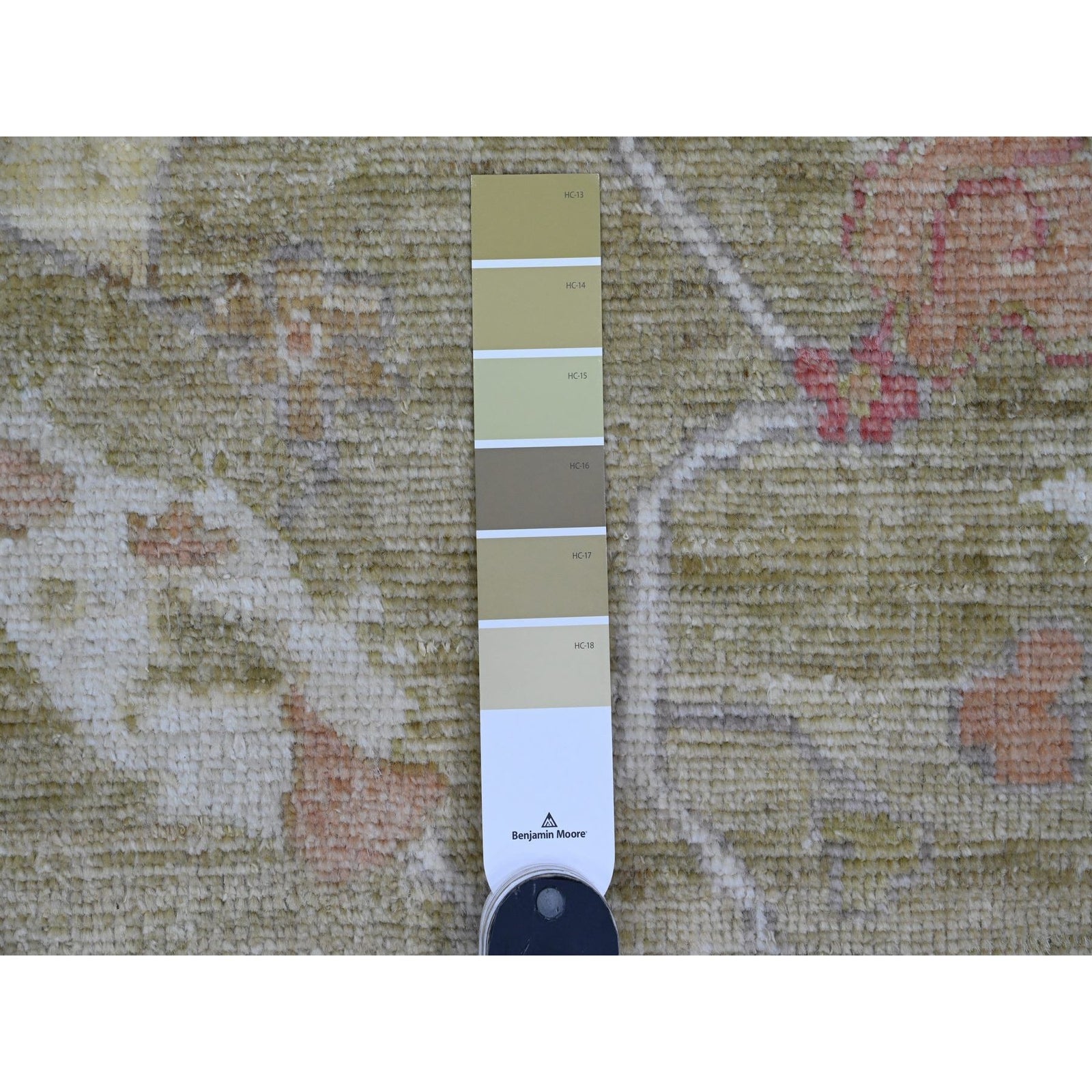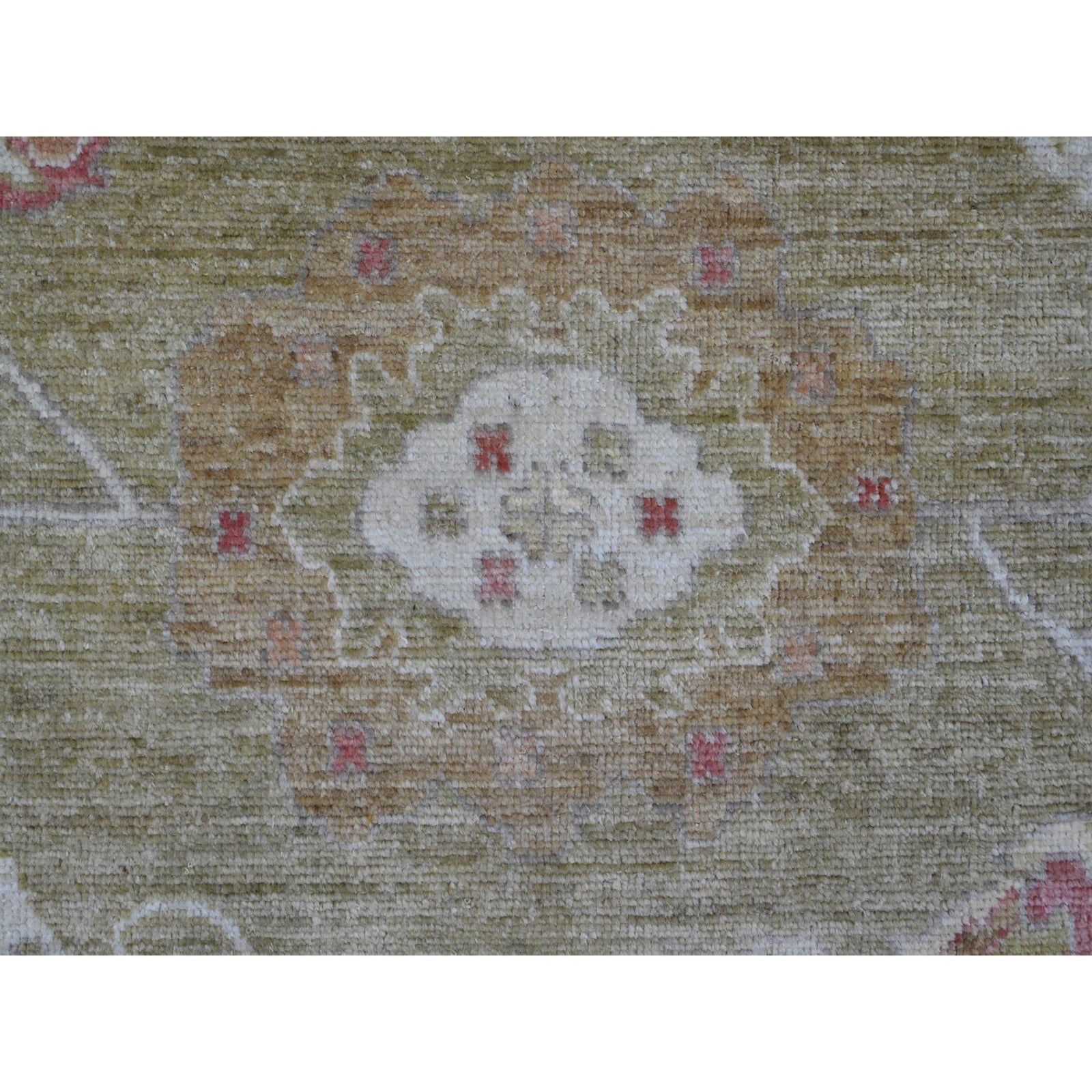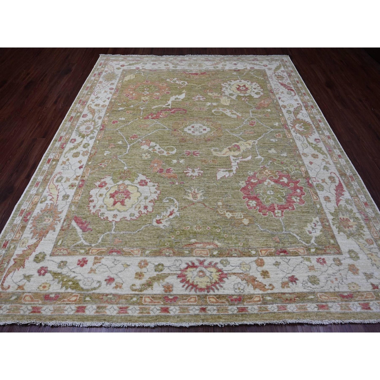 8'1"X9'7" Green Afghan Angora Oushak Leaf Design Wool Hand Knotted Rug
