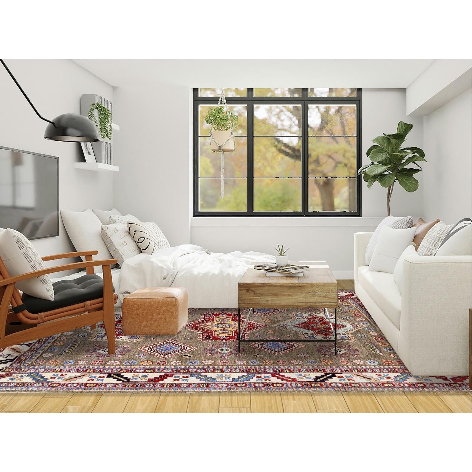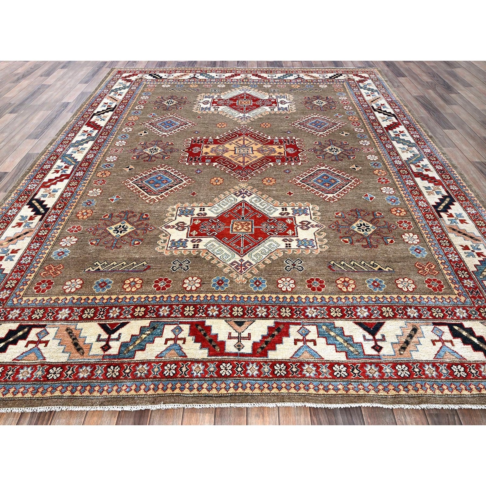 8'2"X10' Brown Afghan Special Kazak Geometric Design Hand Knotted Wool Rug