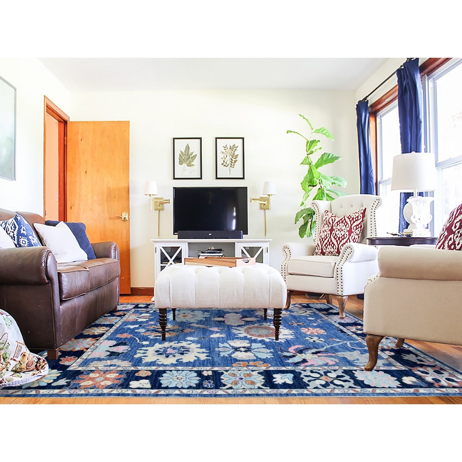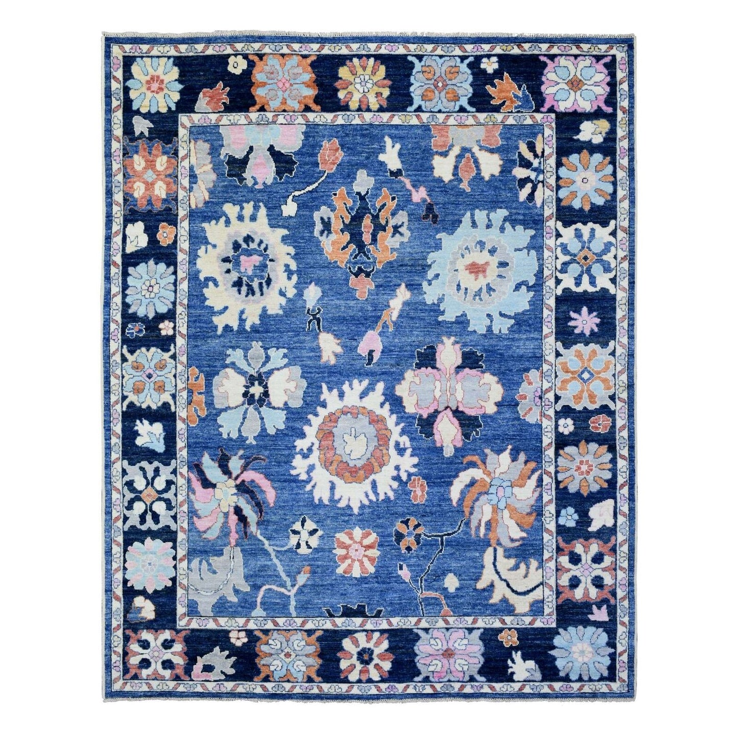8'2"X10' Denim Blue Hand Knotted Afghan Angora Oushak Pure Wool Rug