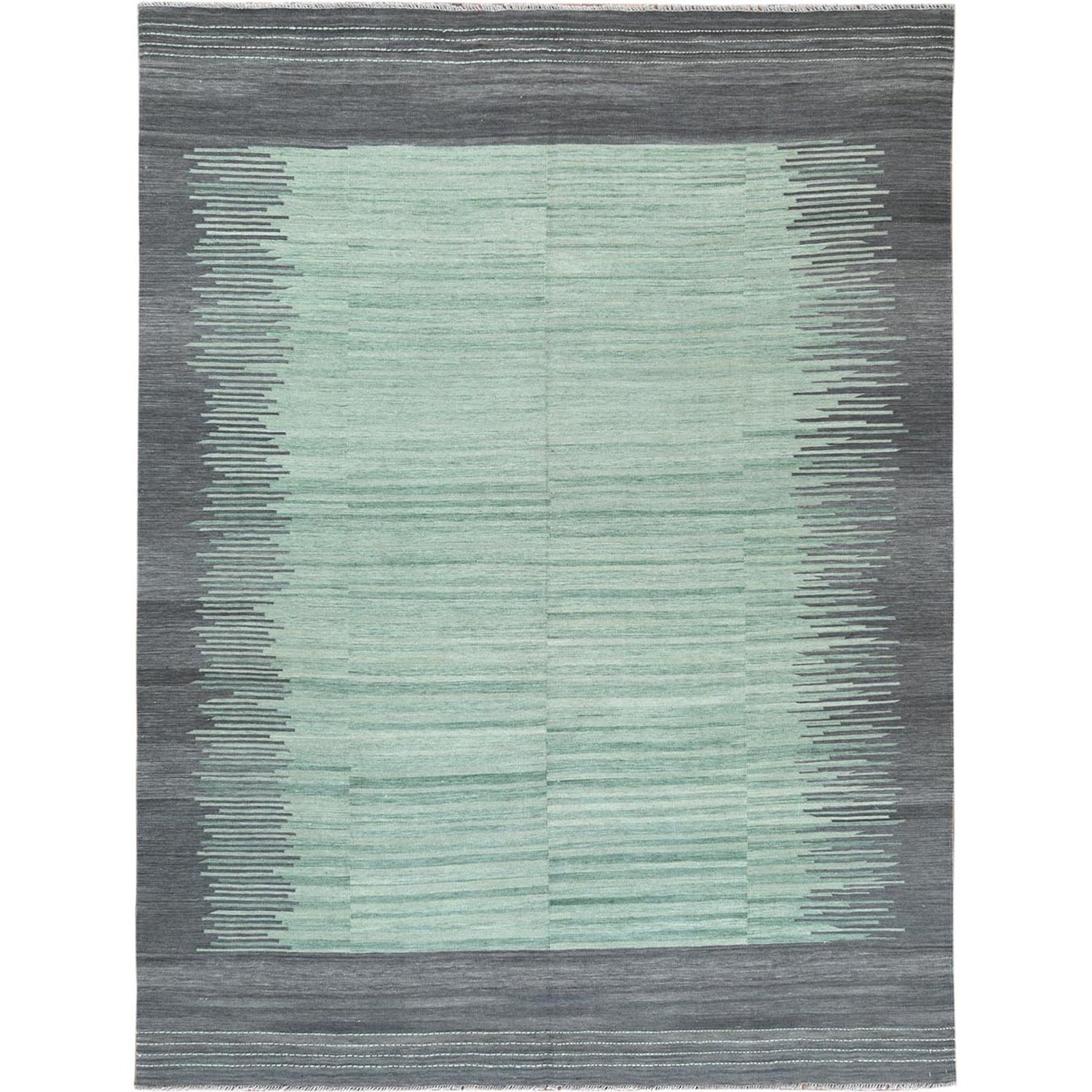 8'2"X10'1" Hand Woven Light Green Flat Weave Kilim Handspun Wool Rug