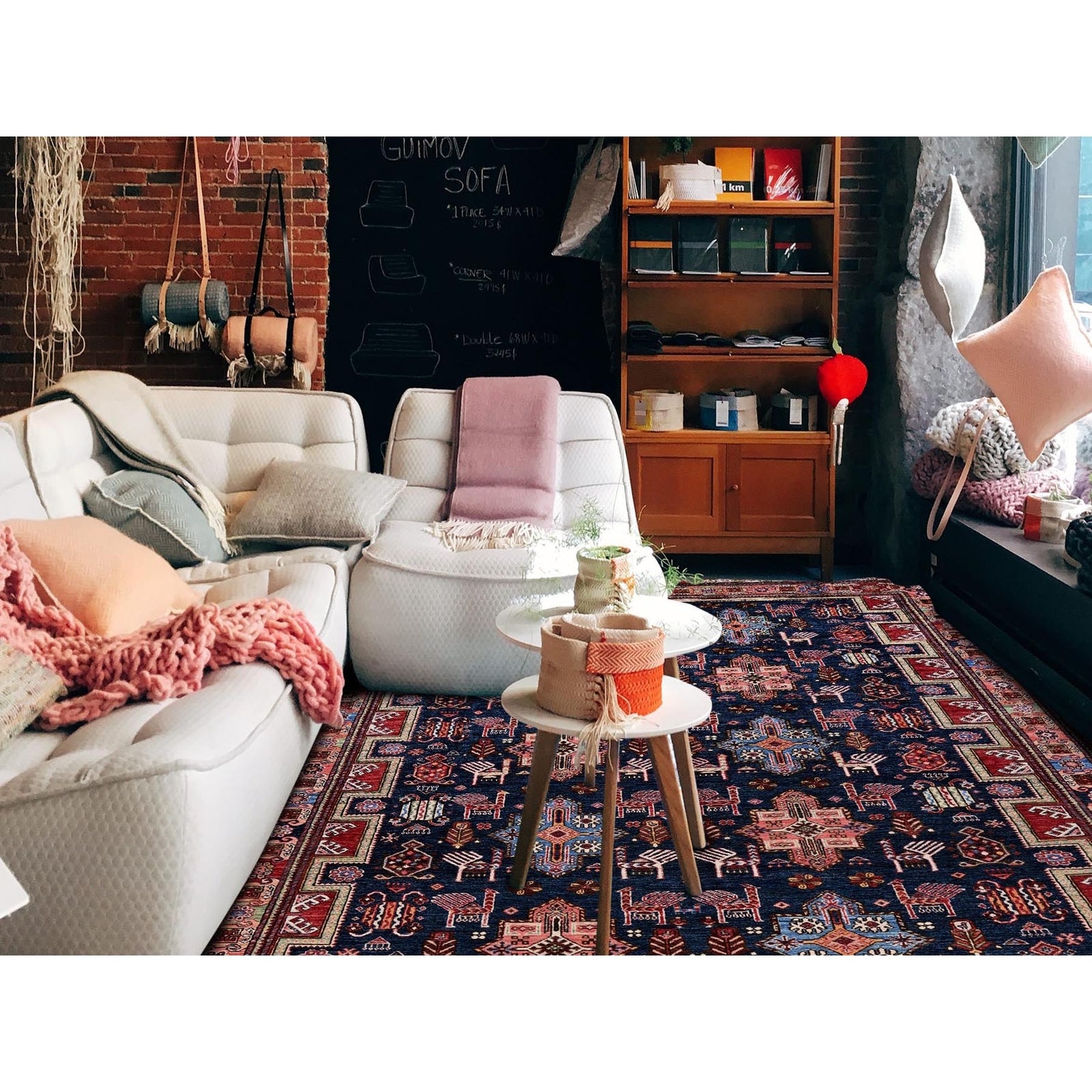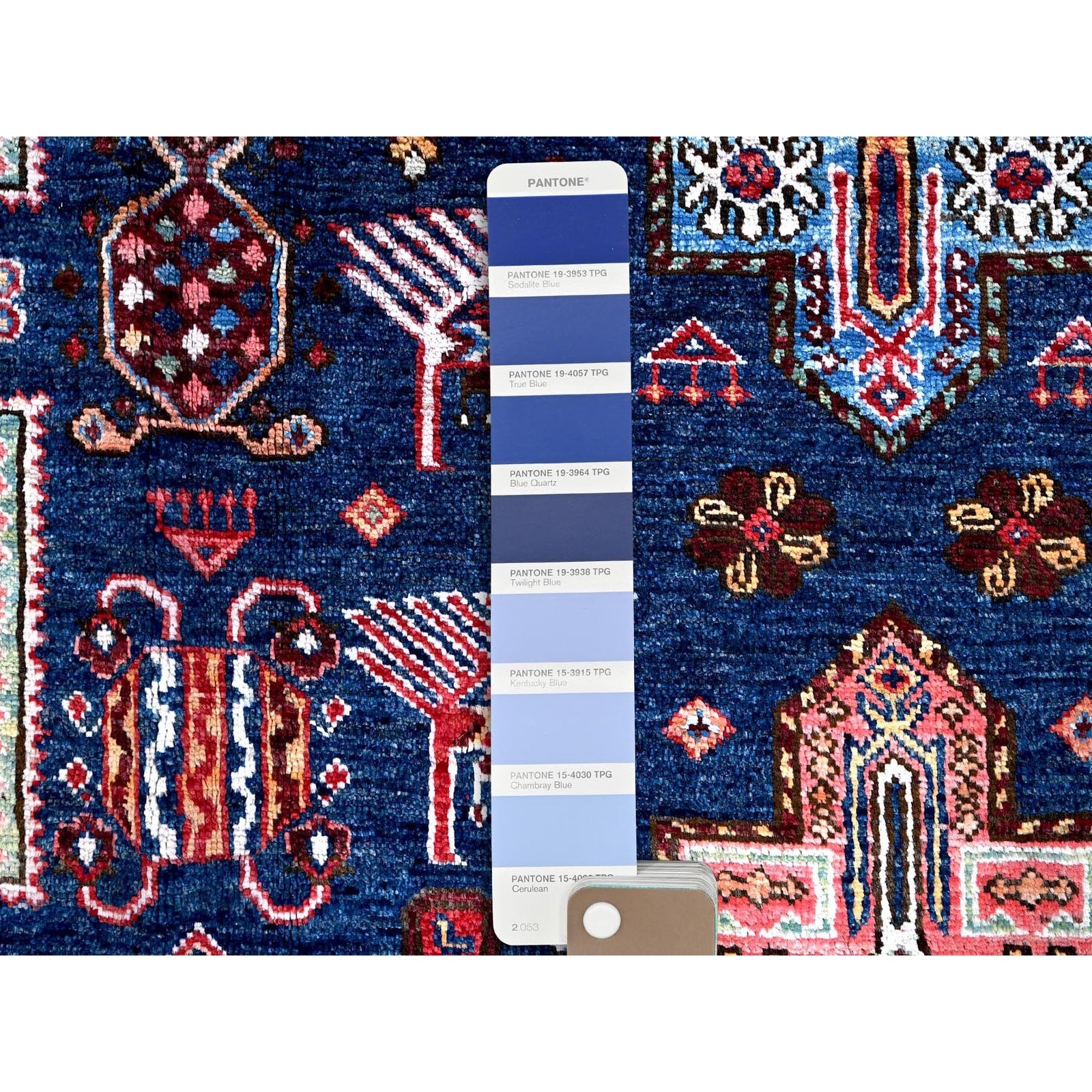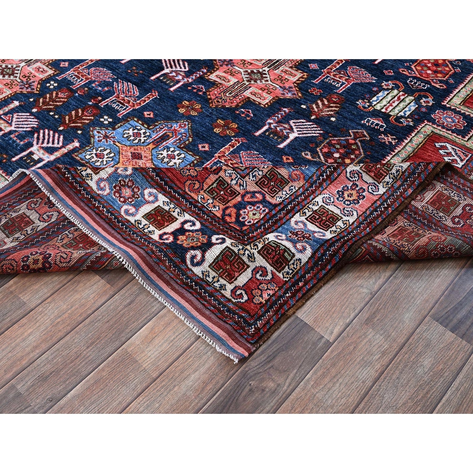 8'2"X10'5" Navy Afghan Ersari Ancient Bird Figurines Hand Knotted Wool Rug