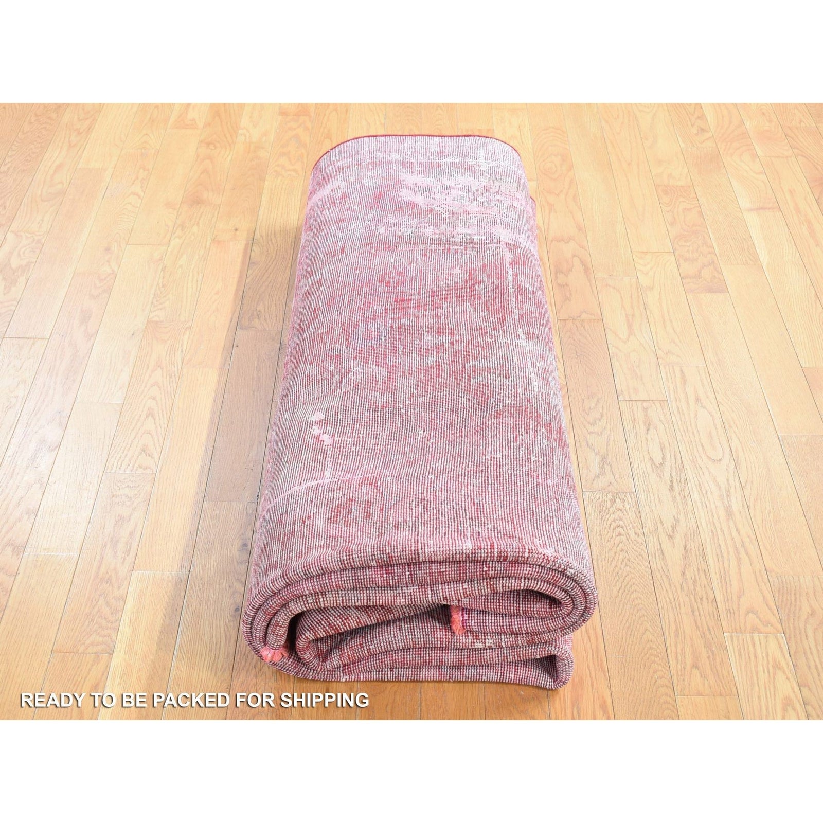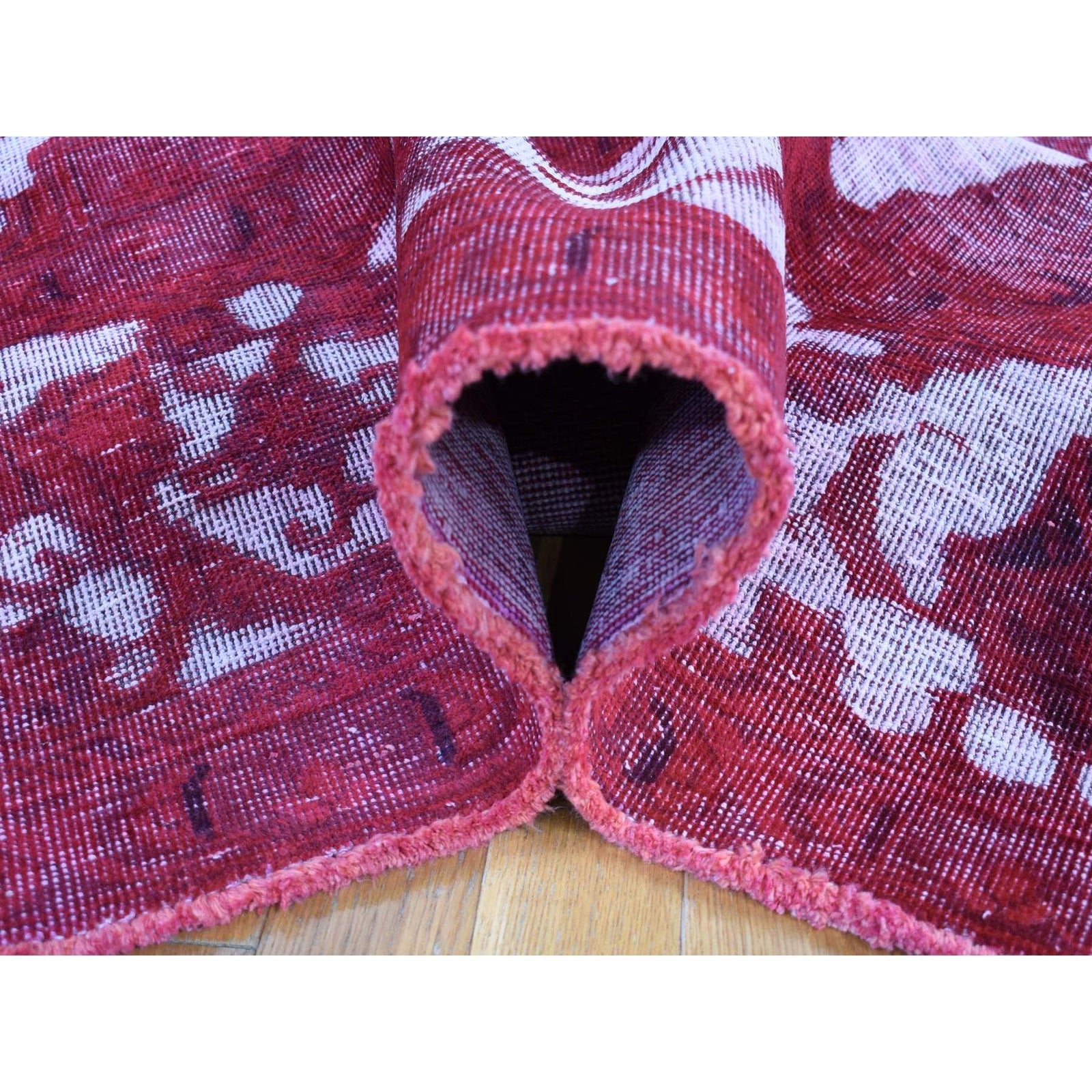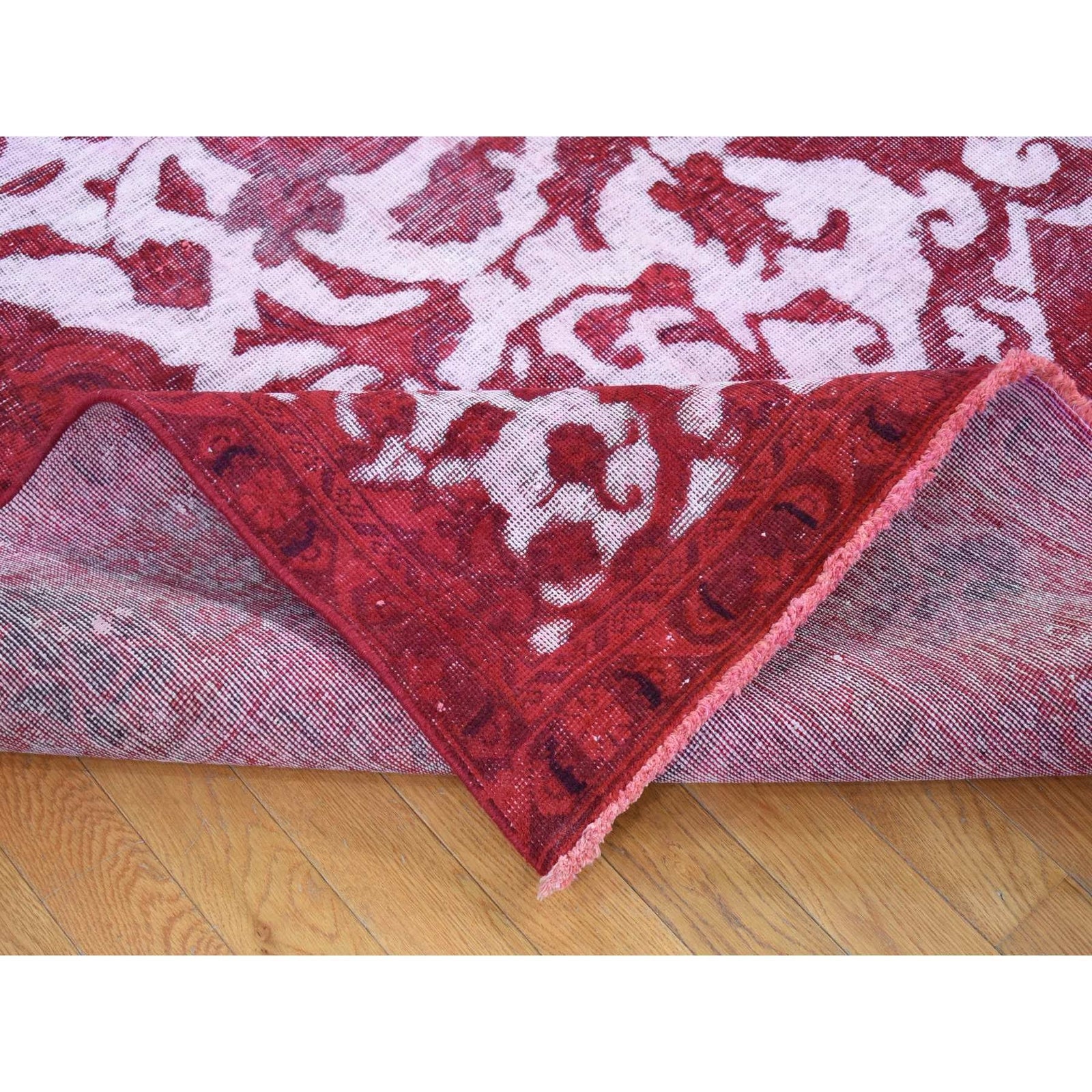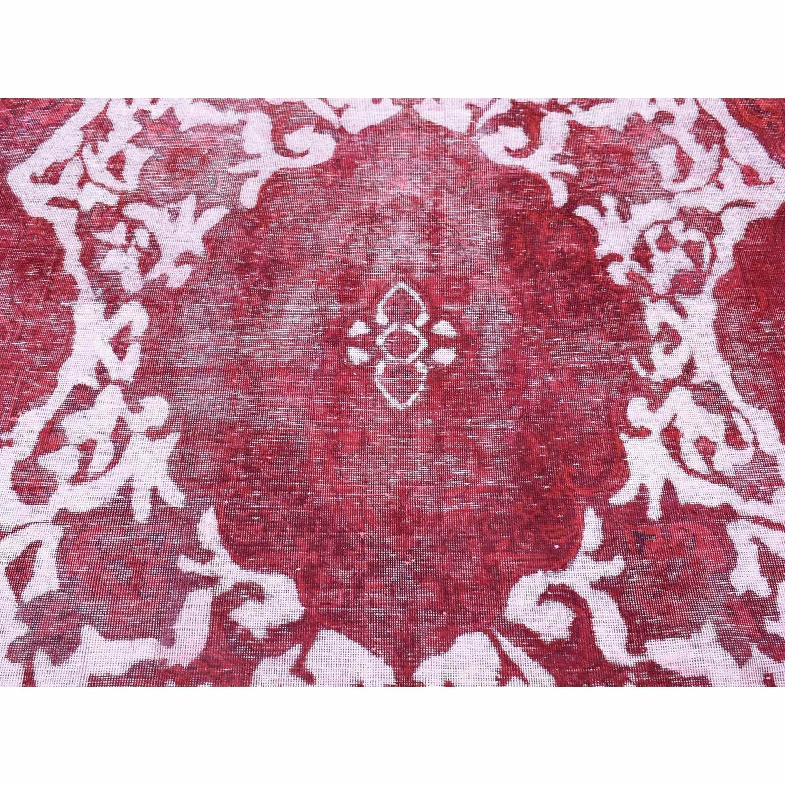 8'2"X11'1" Red Overdyed Vintage Tebraz Design Pure Wool Hand Knotted Rug