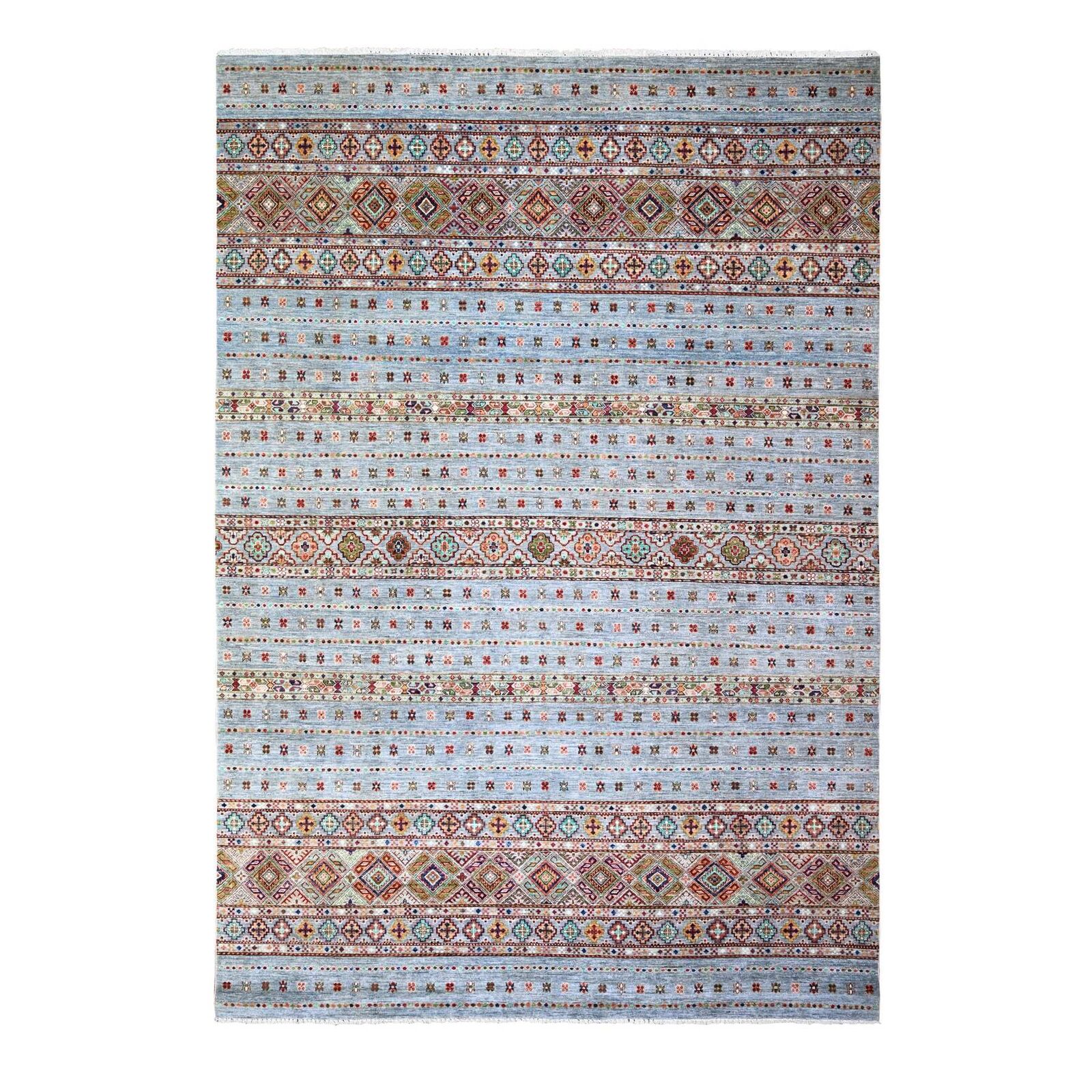 8'2"X11'10" Blue Gray Super Kazak Khorjin Design Hand Knotted Wool Rug