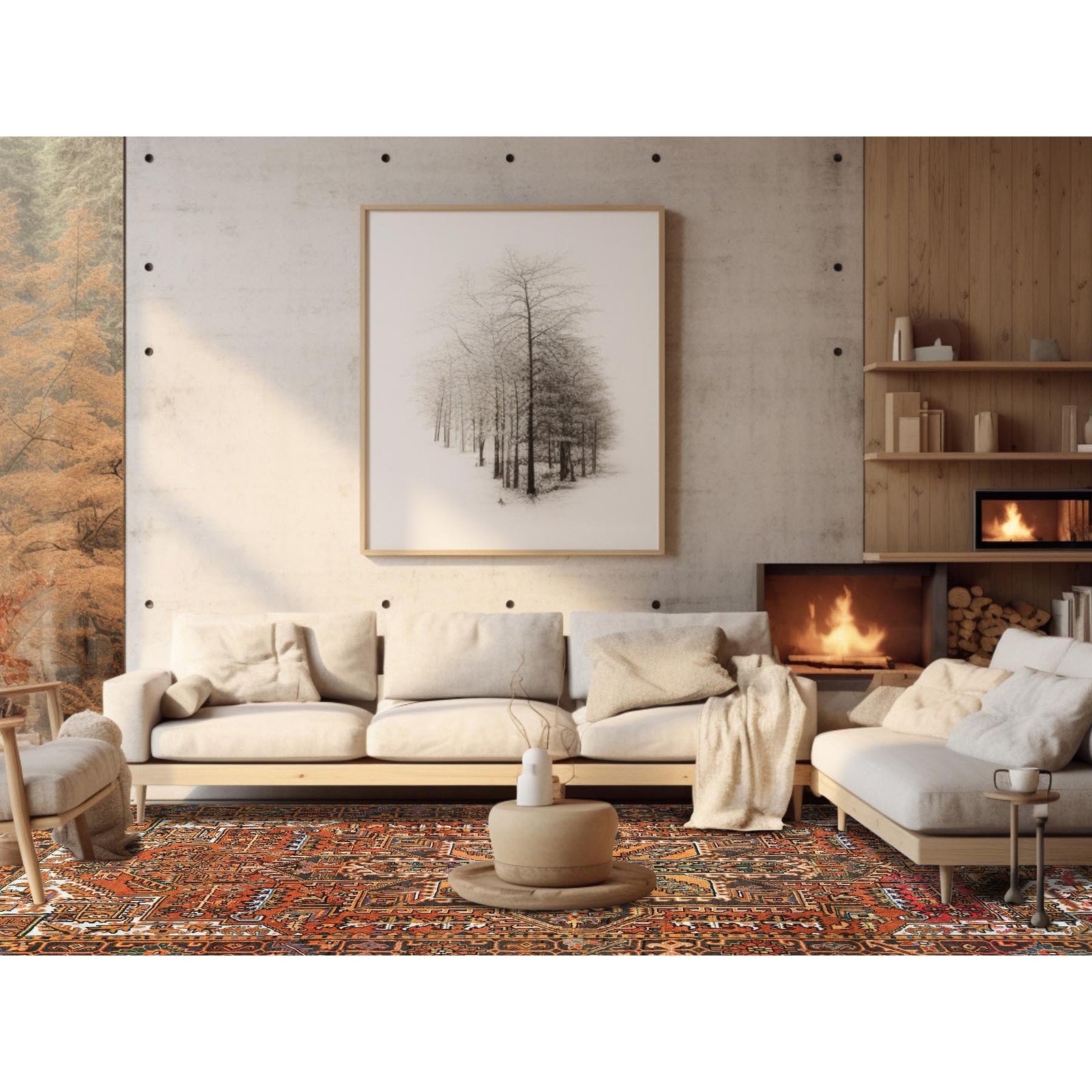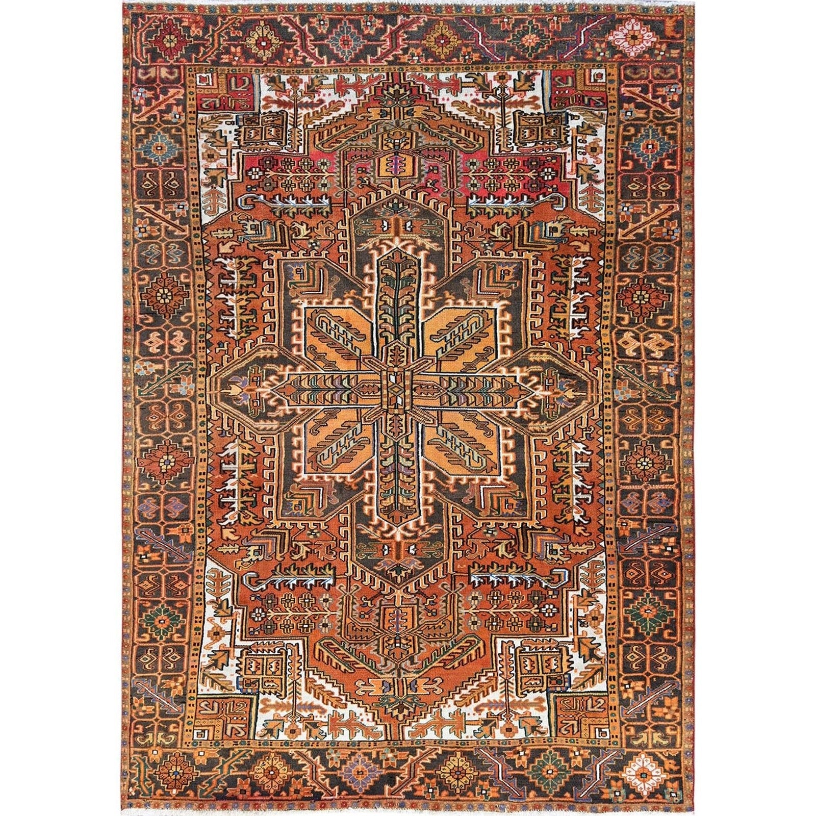 8'2"X11'2" Orange Semi Antique Zoroastrian Heris Hand Knotted Wool Rug