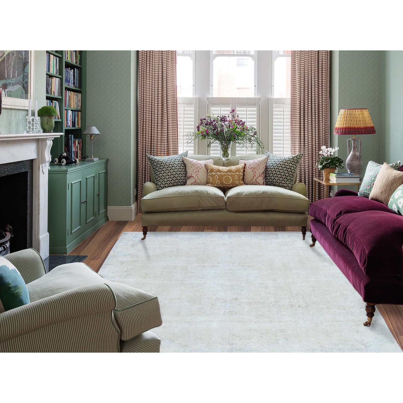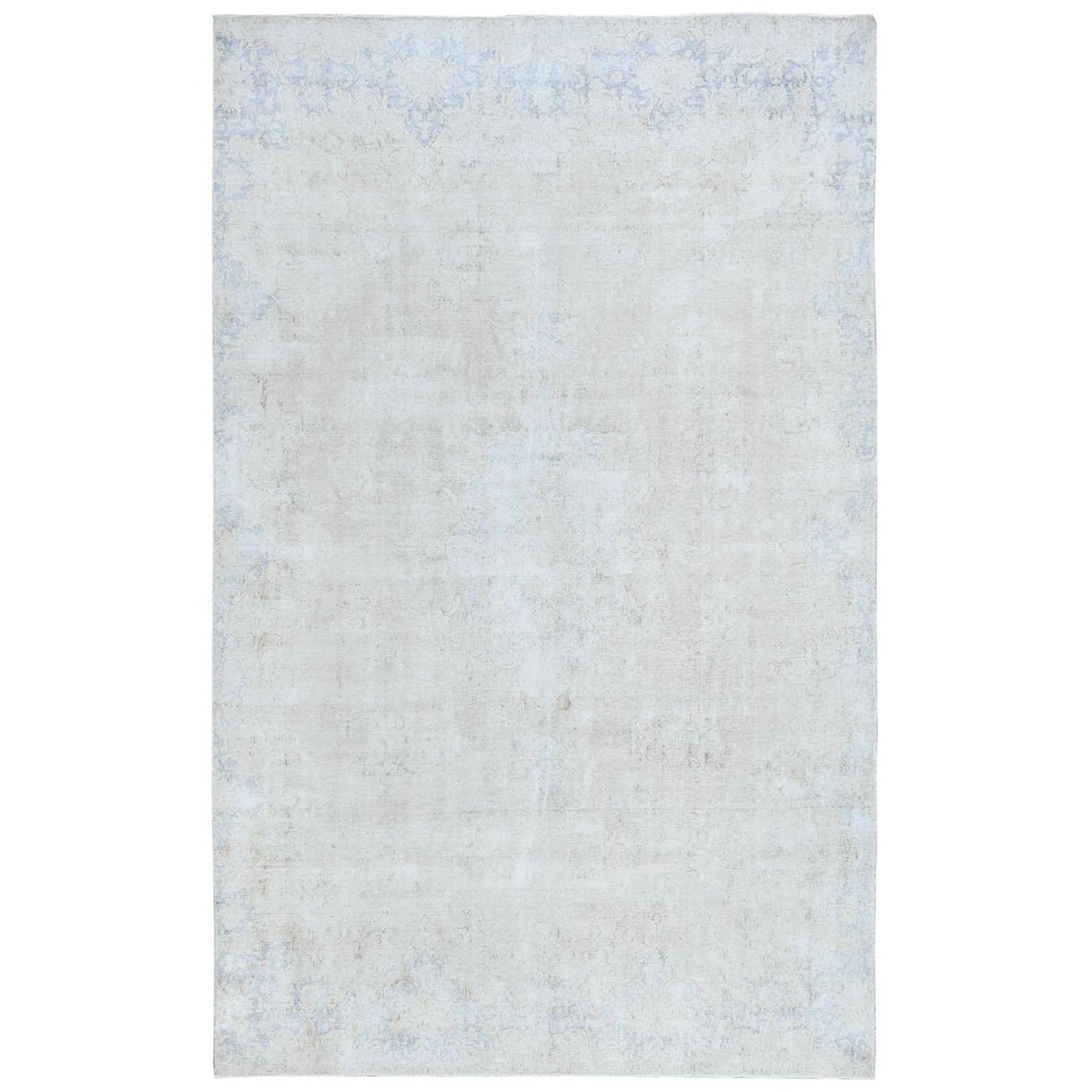 8'2"X13' Ivory Old Farsian Karman Hand Knotted Wool Distressed Look Rug