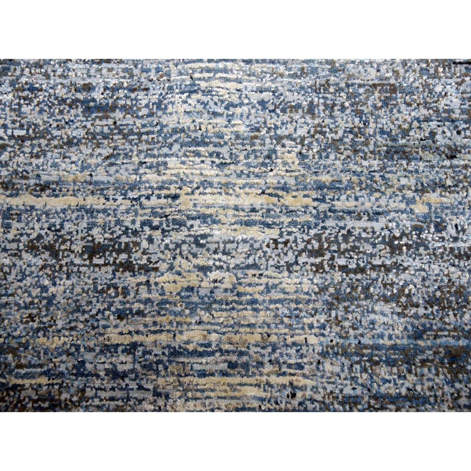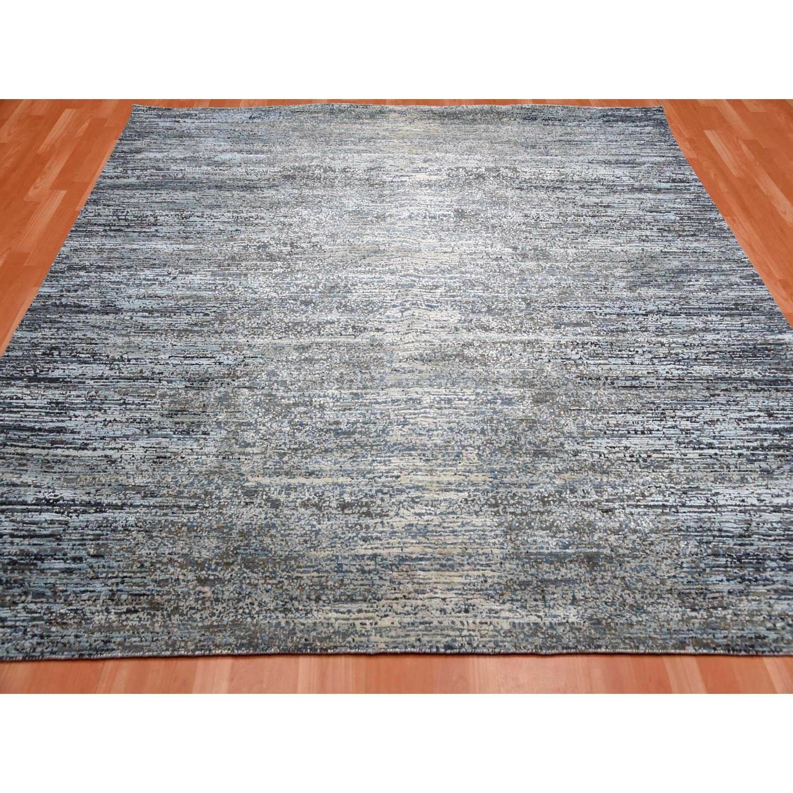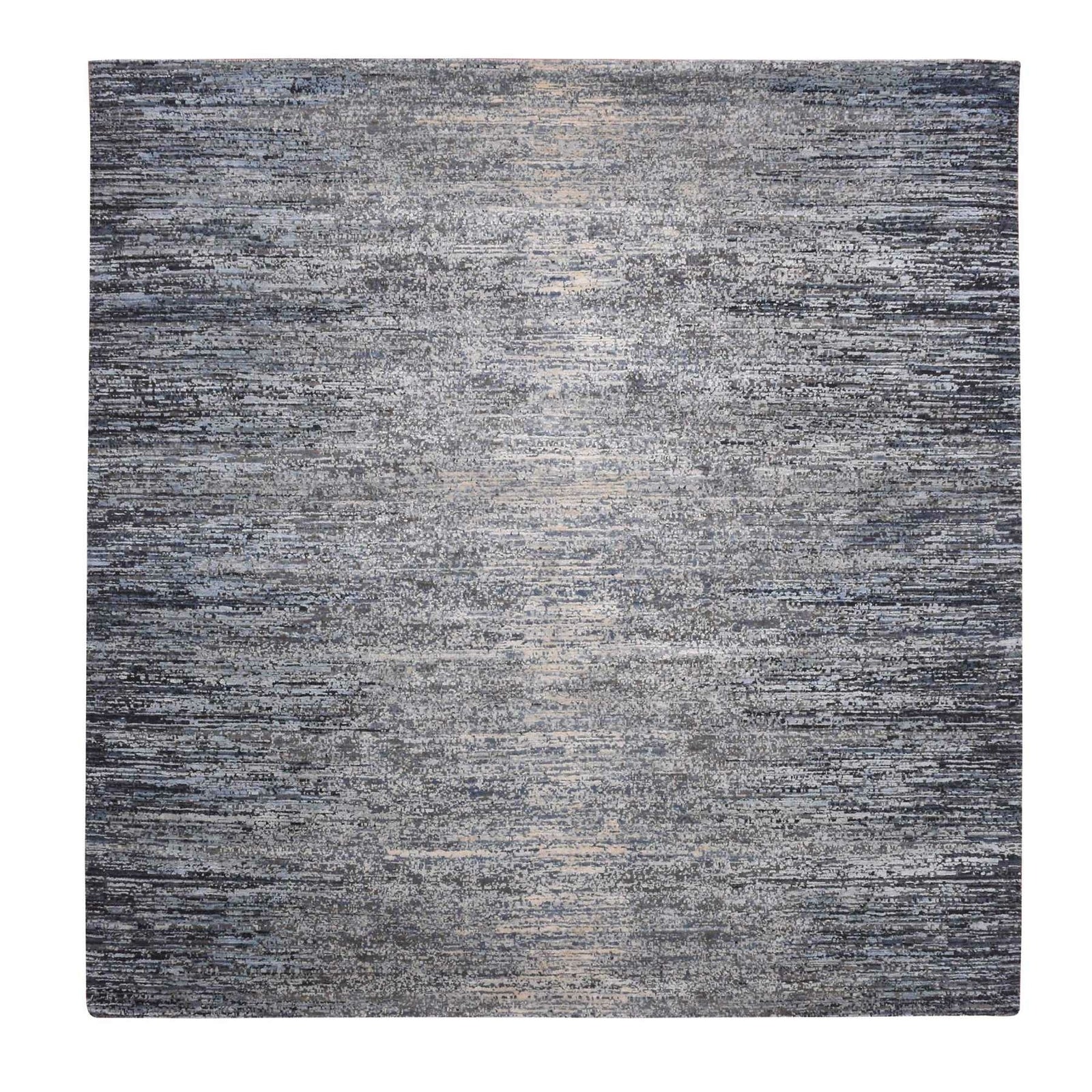 8'2"X8'2" Blue Oceanic Wool And Pure Silk Hand Knotted Square Rug