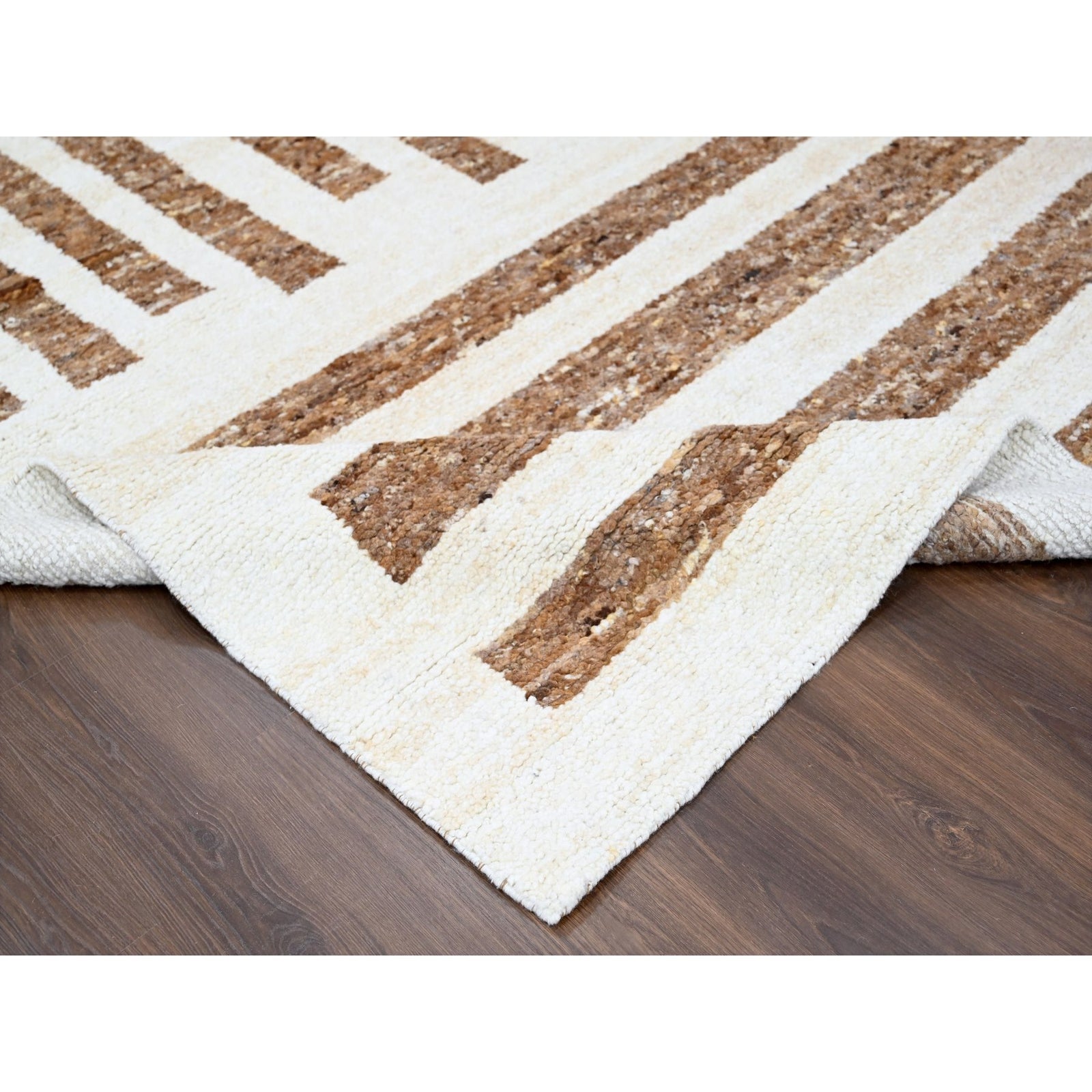 8'2"X9'10"Brown Wool Minimalist Stripe Design Hand Knotted Oriental Rug