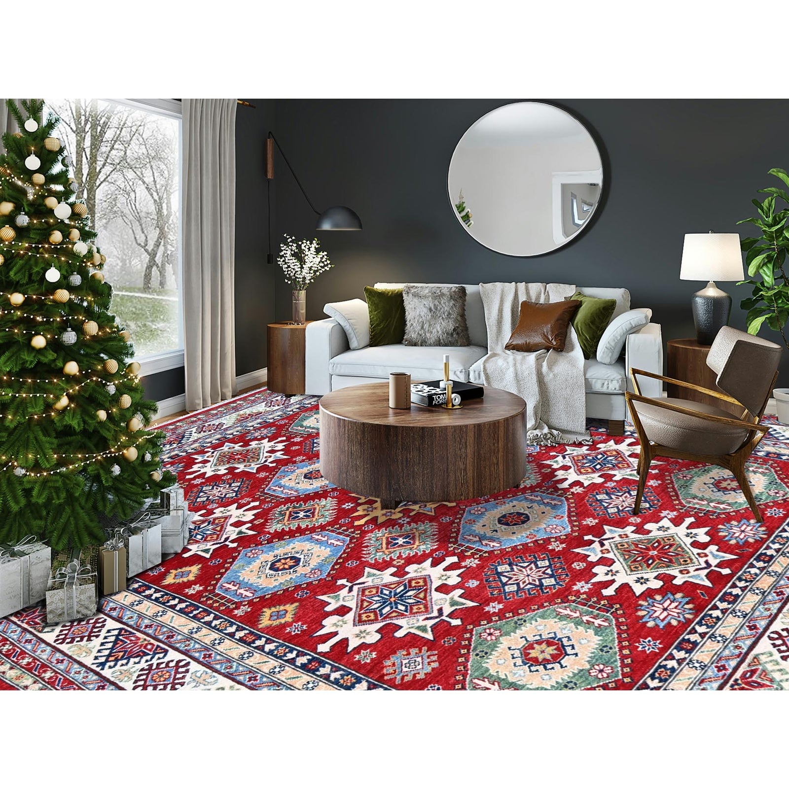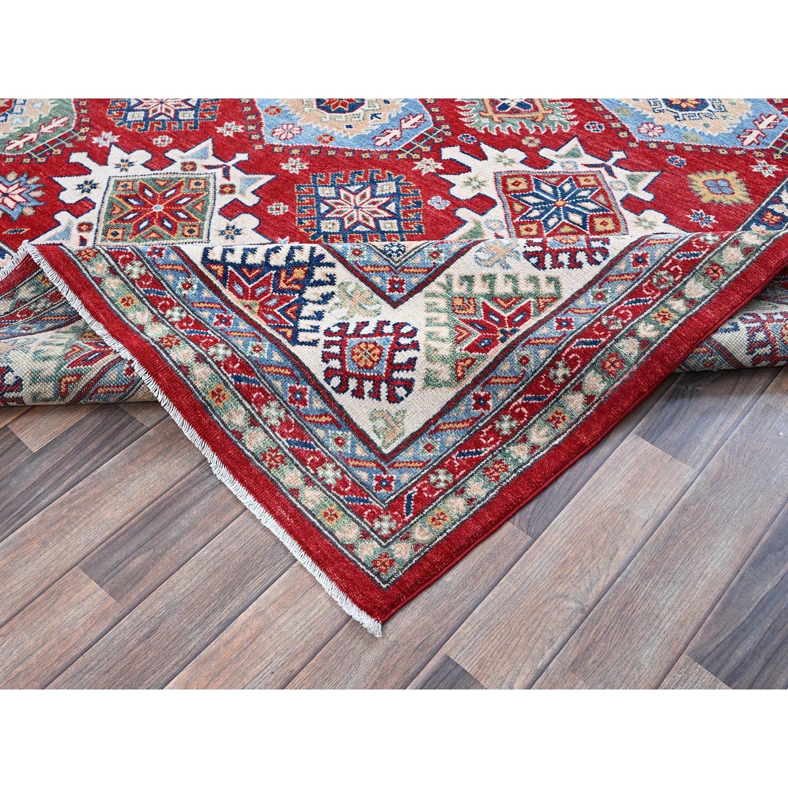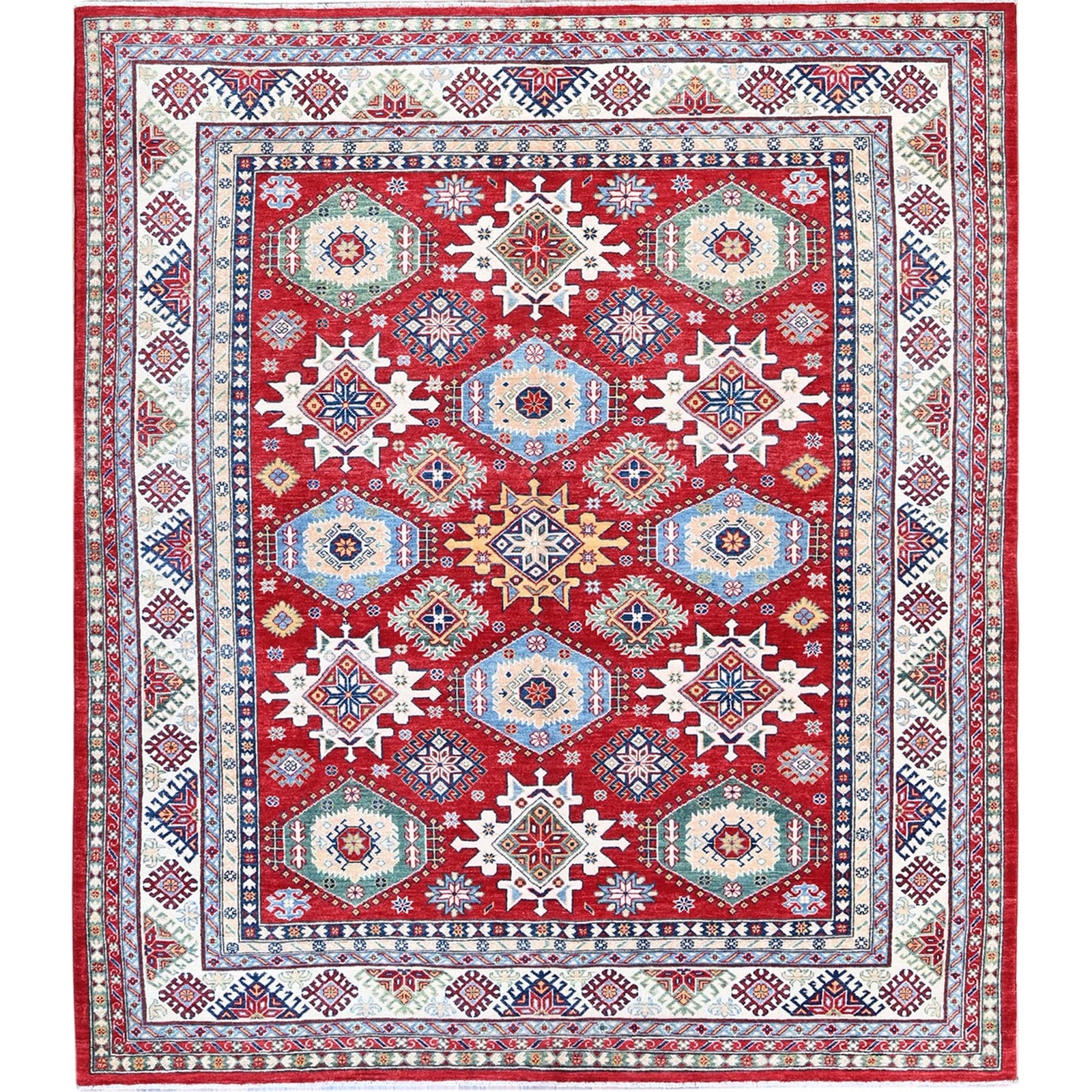 8'2"X9'8" Red Kazak With Geometric Medallions Design Wool Hand Knotted Rug