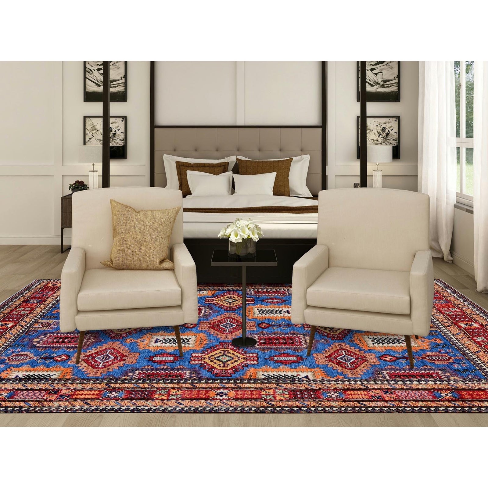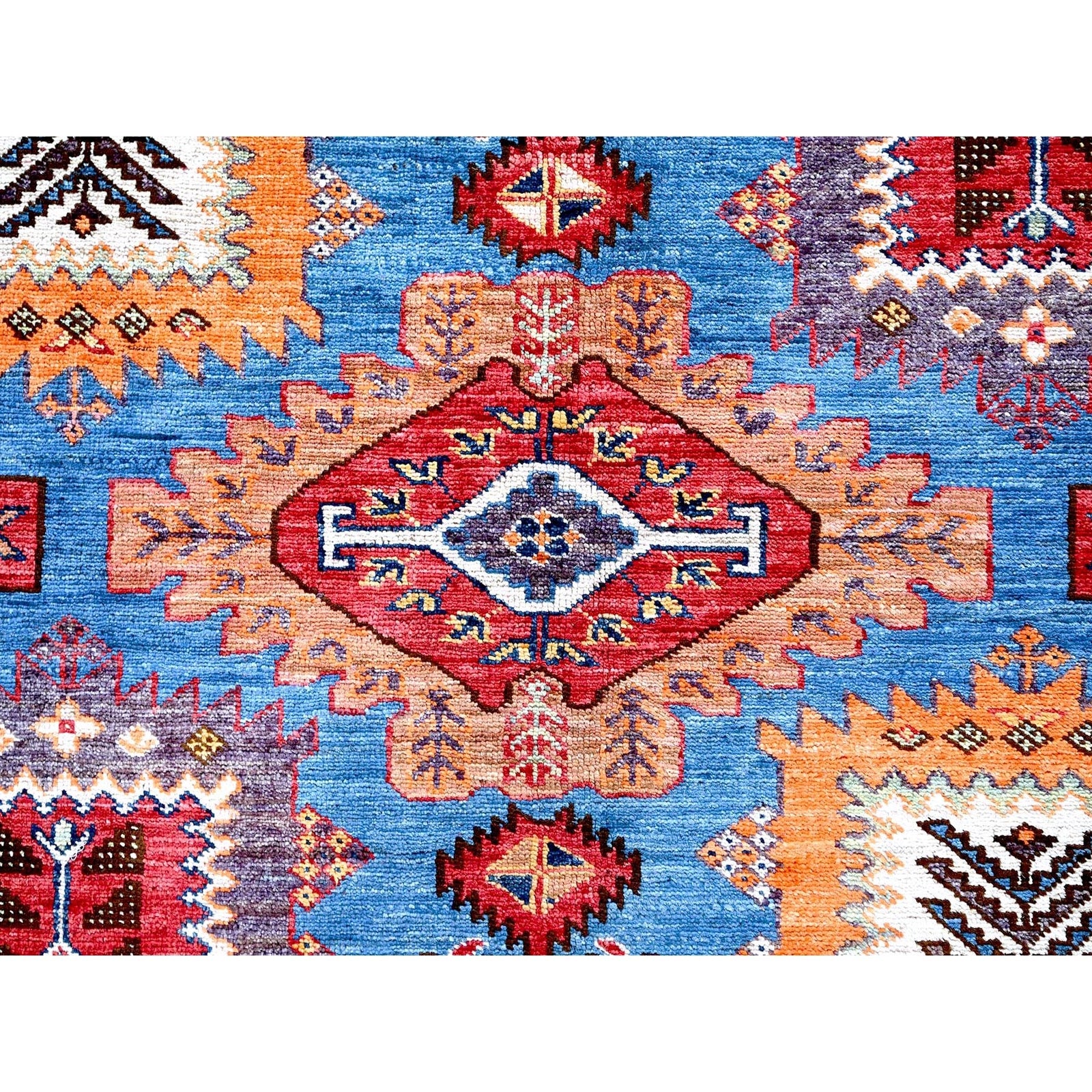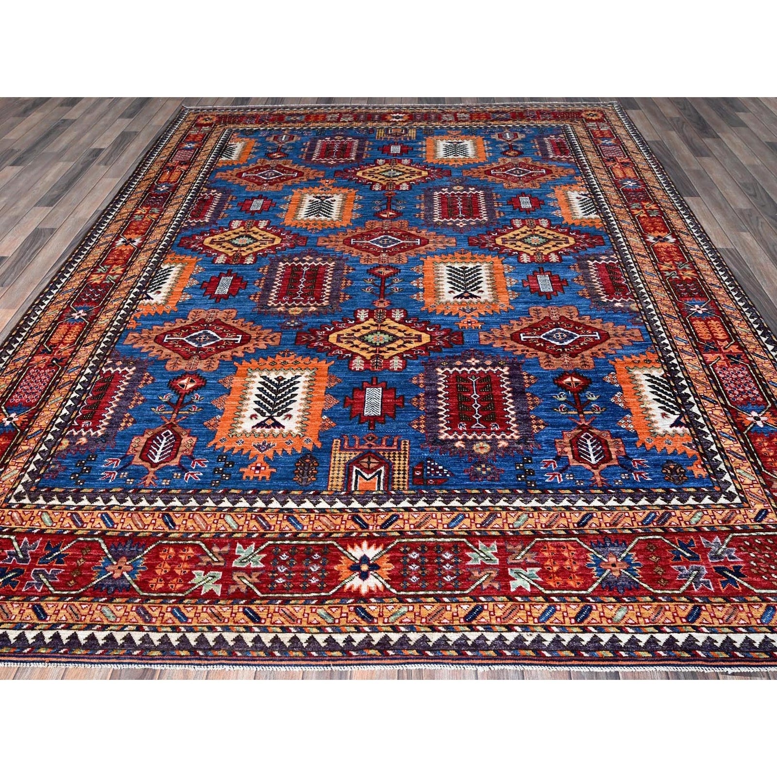8'2"X9'9" Blue Antique Caucasian Design Revival Hand Knotted Pure Wool Rug