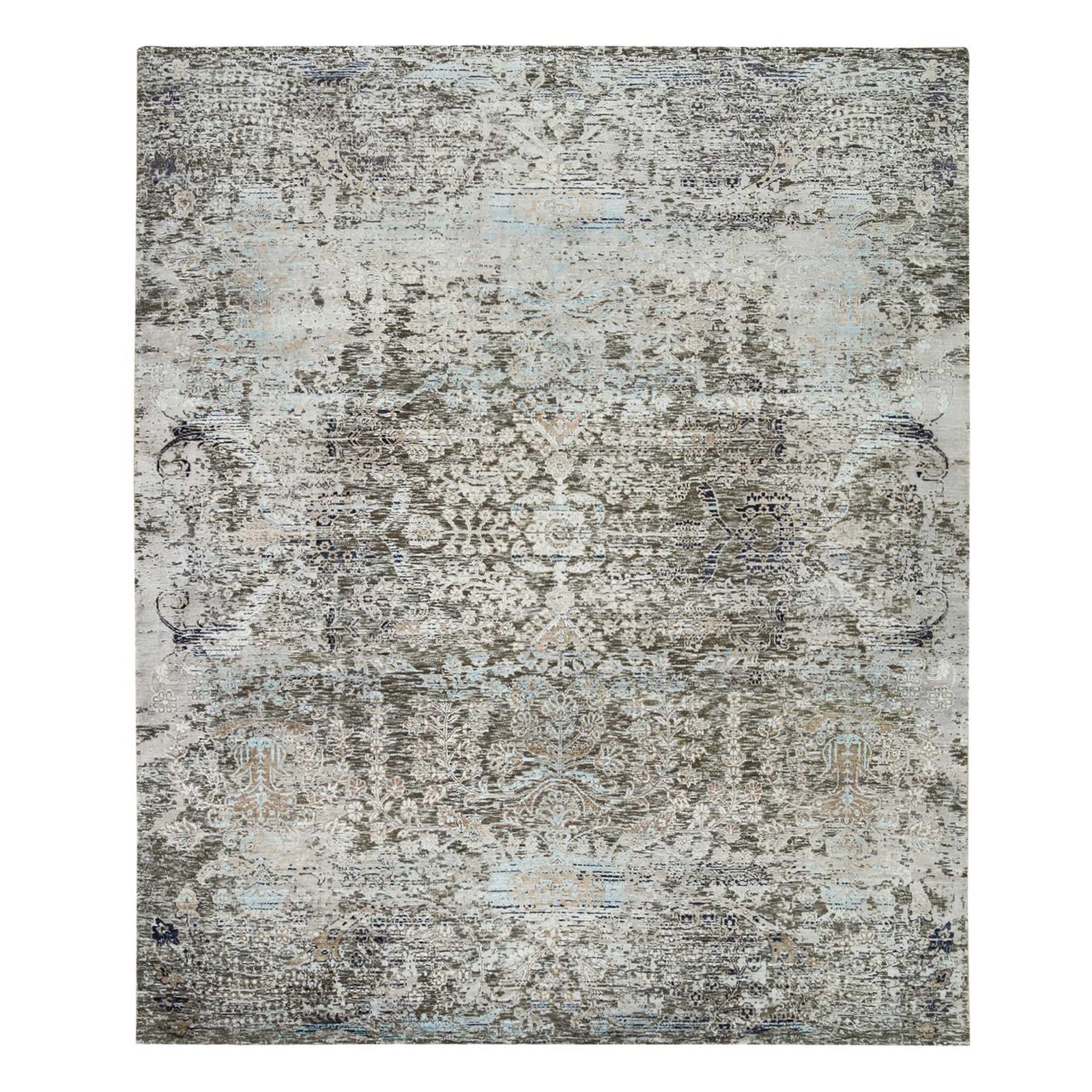 8'3"X10' Gray Hand Knotted Transitional Design Wool And Silk Rug