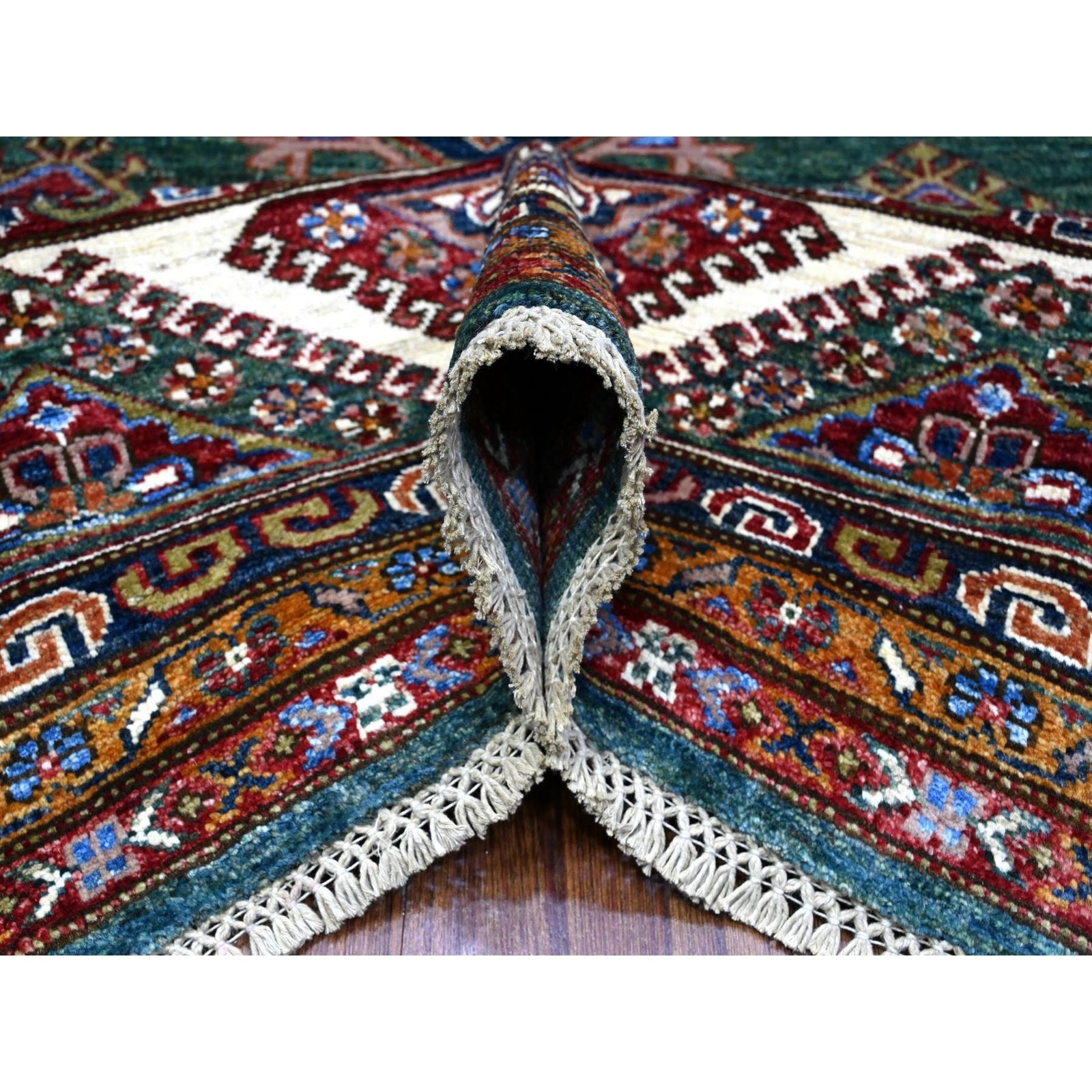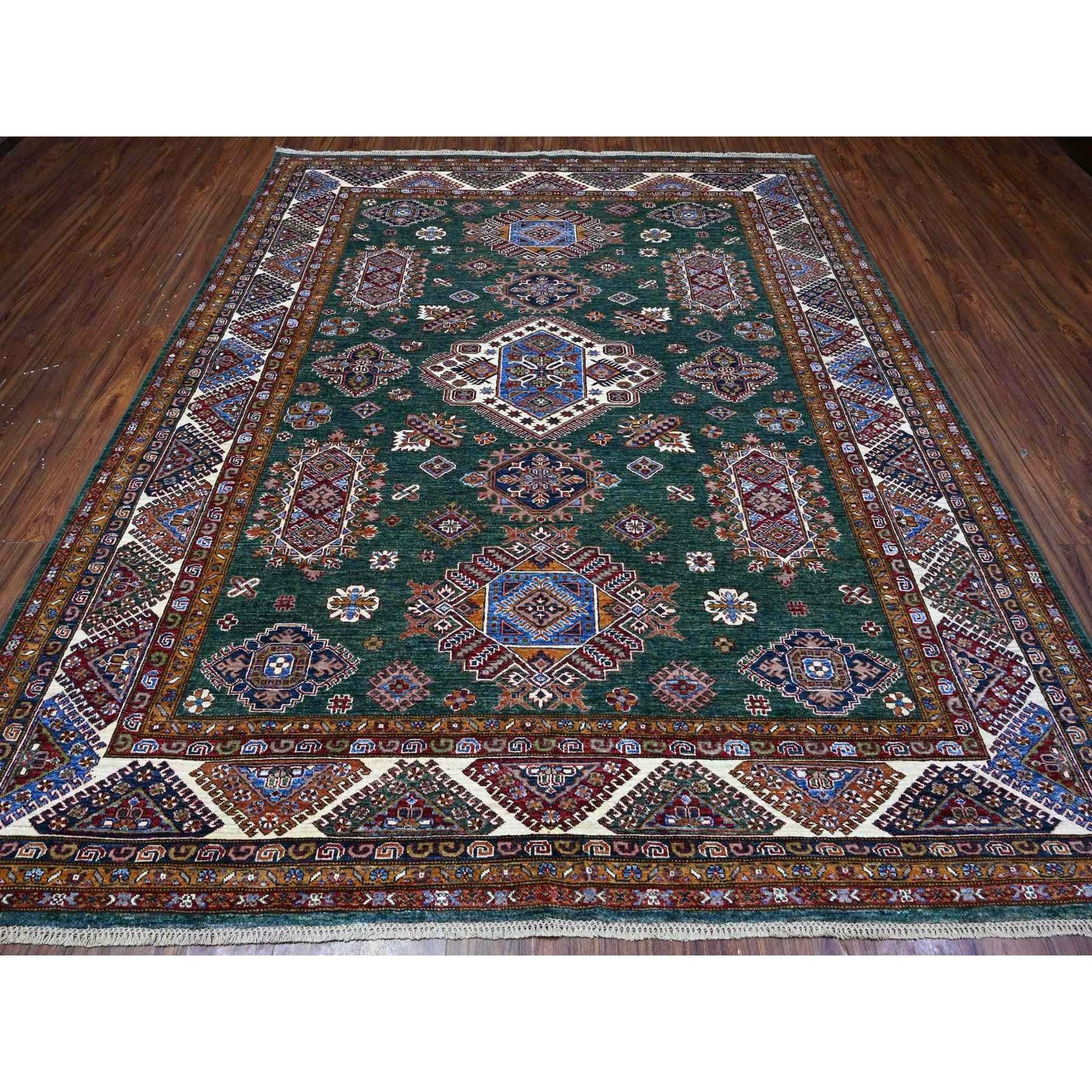 8'3"X10' Green Hand Knotted Super Kazak Tribal Elements Wool Oriental Rug