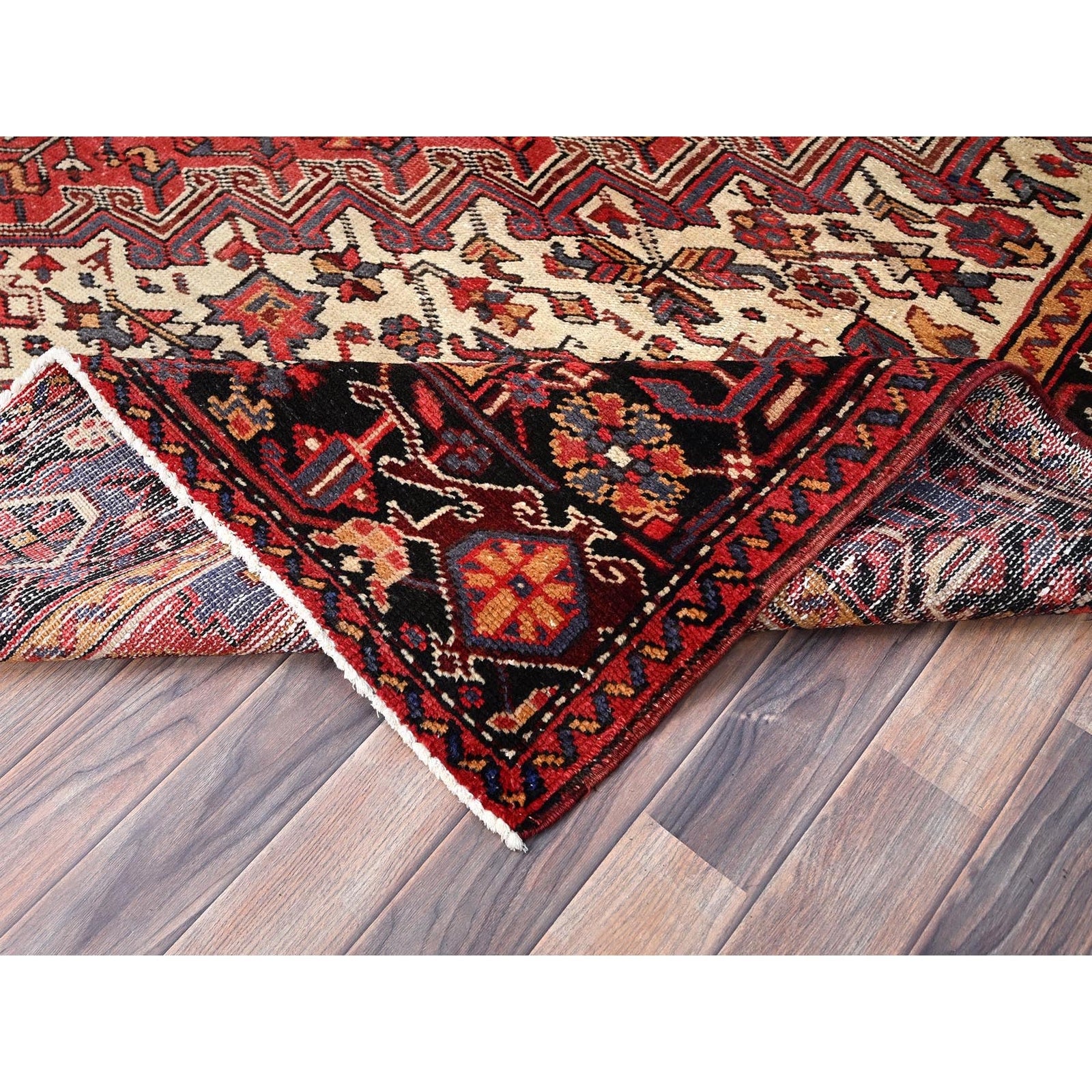 8'3"X12' Red And Ivory Spandrels Shiny Wool Hand Knotted Zoroastrian Rug