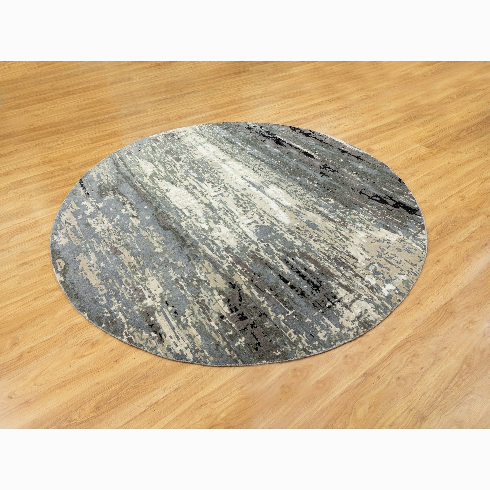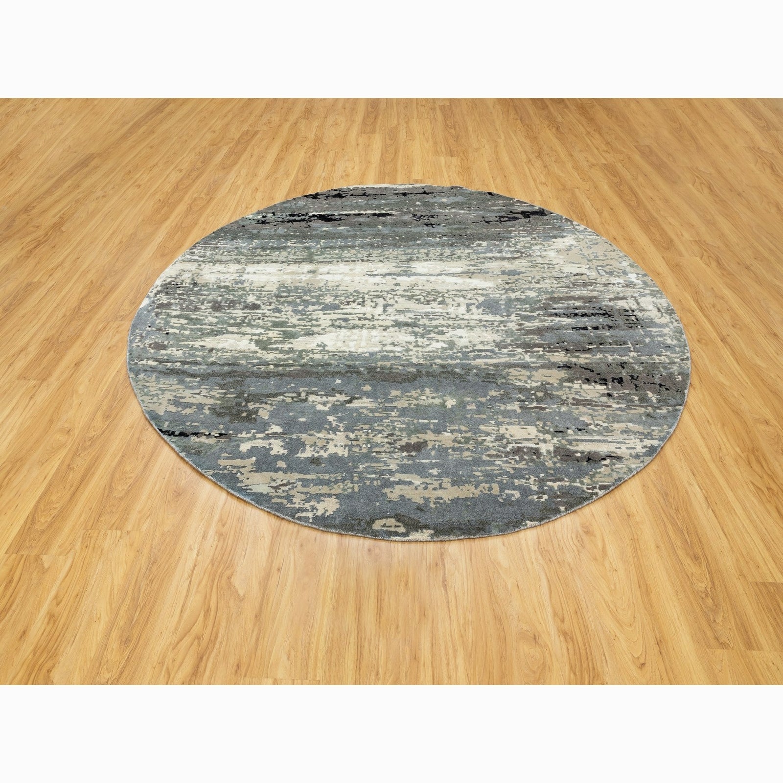 8'3"X8'3" Abstract Design Wool & Silk Hi-Low Pile Hand Knotted Round Rug
