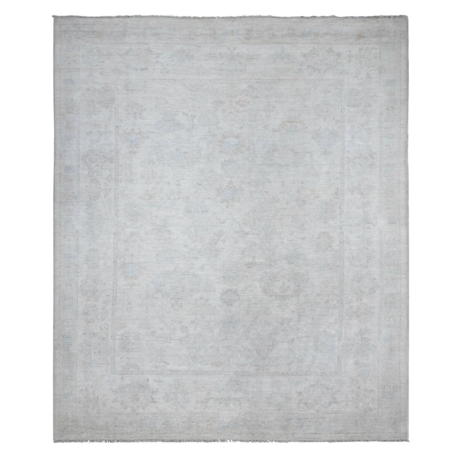 8'3"X9'9" Pacific Pearl White Faded Afghan Angora Oushak Oriental Rug