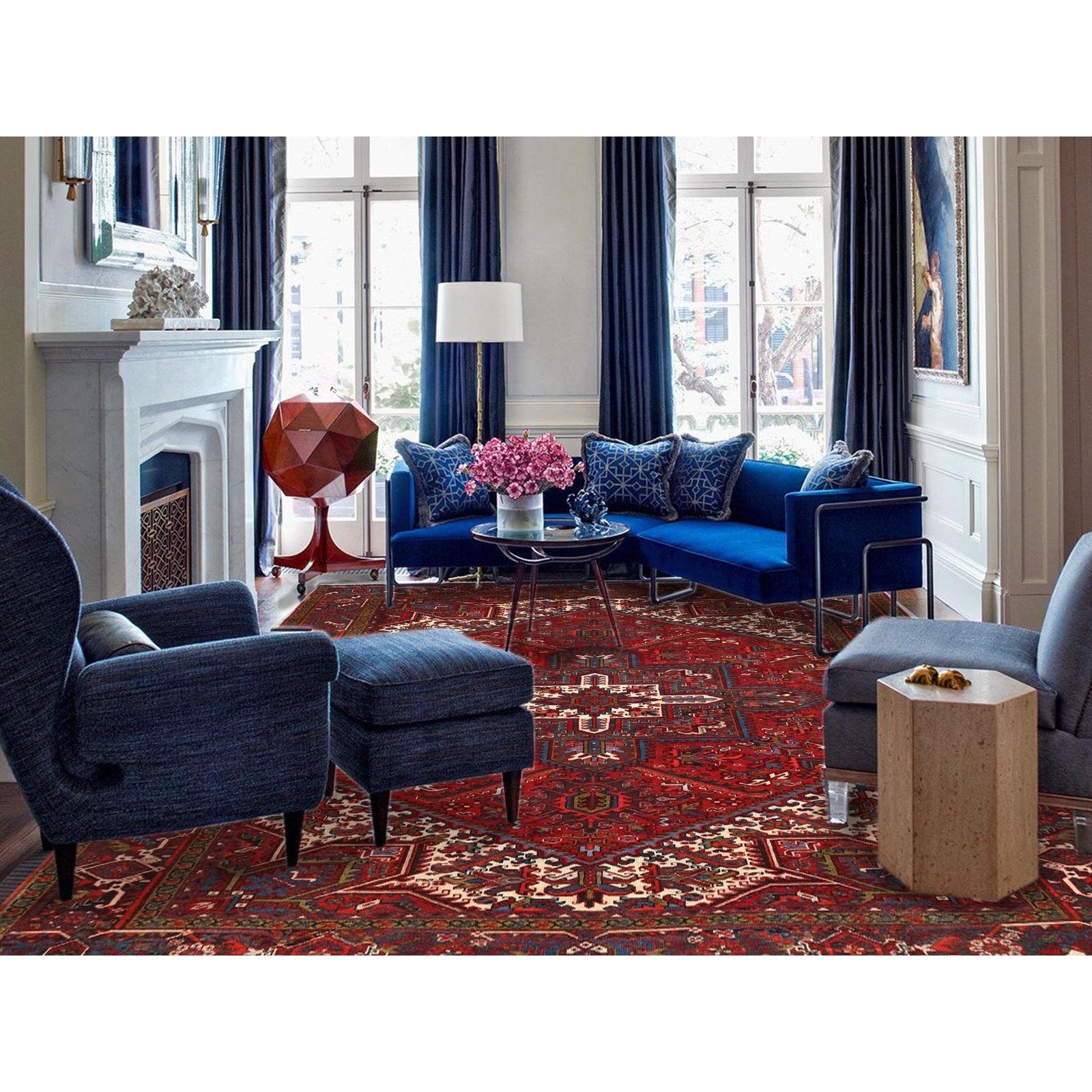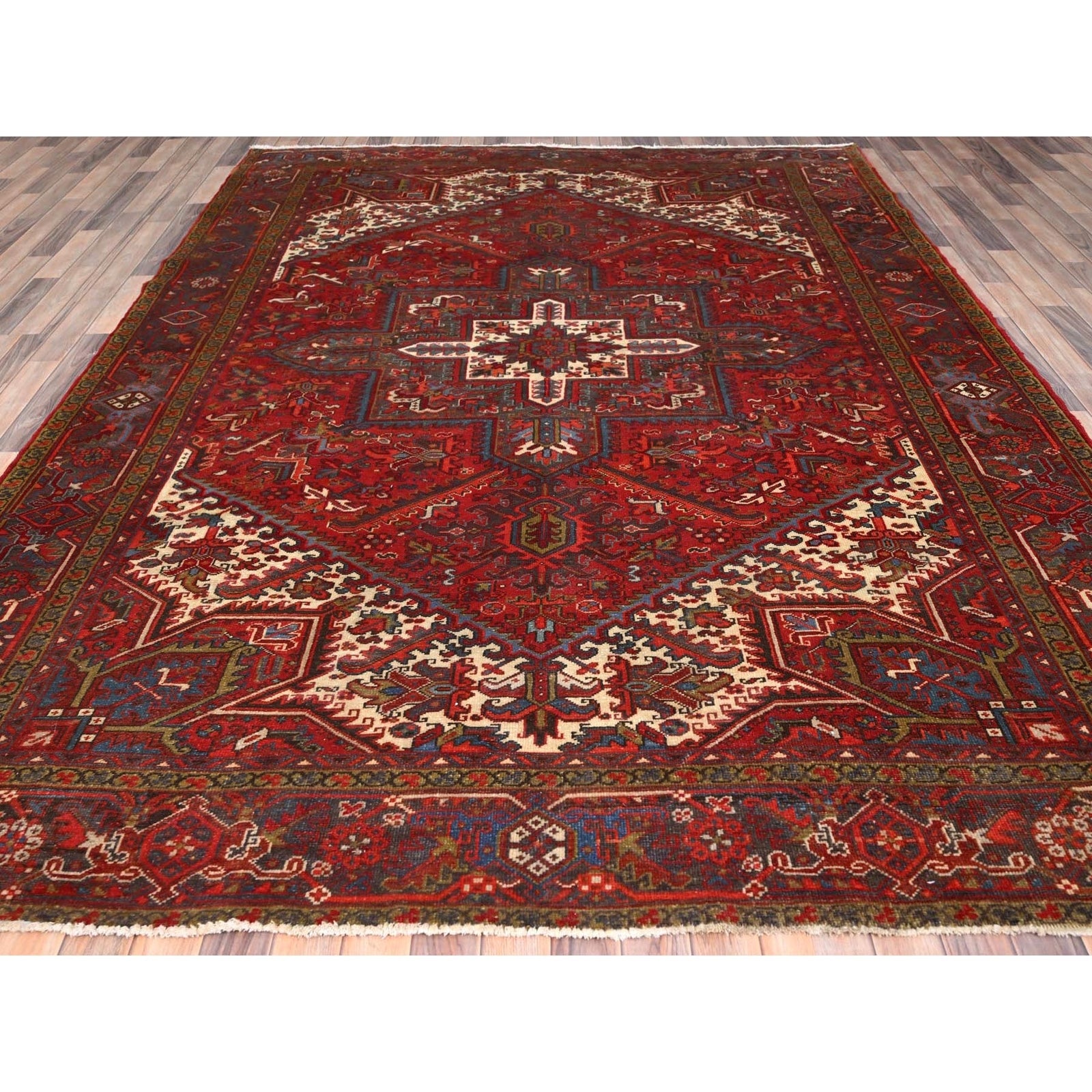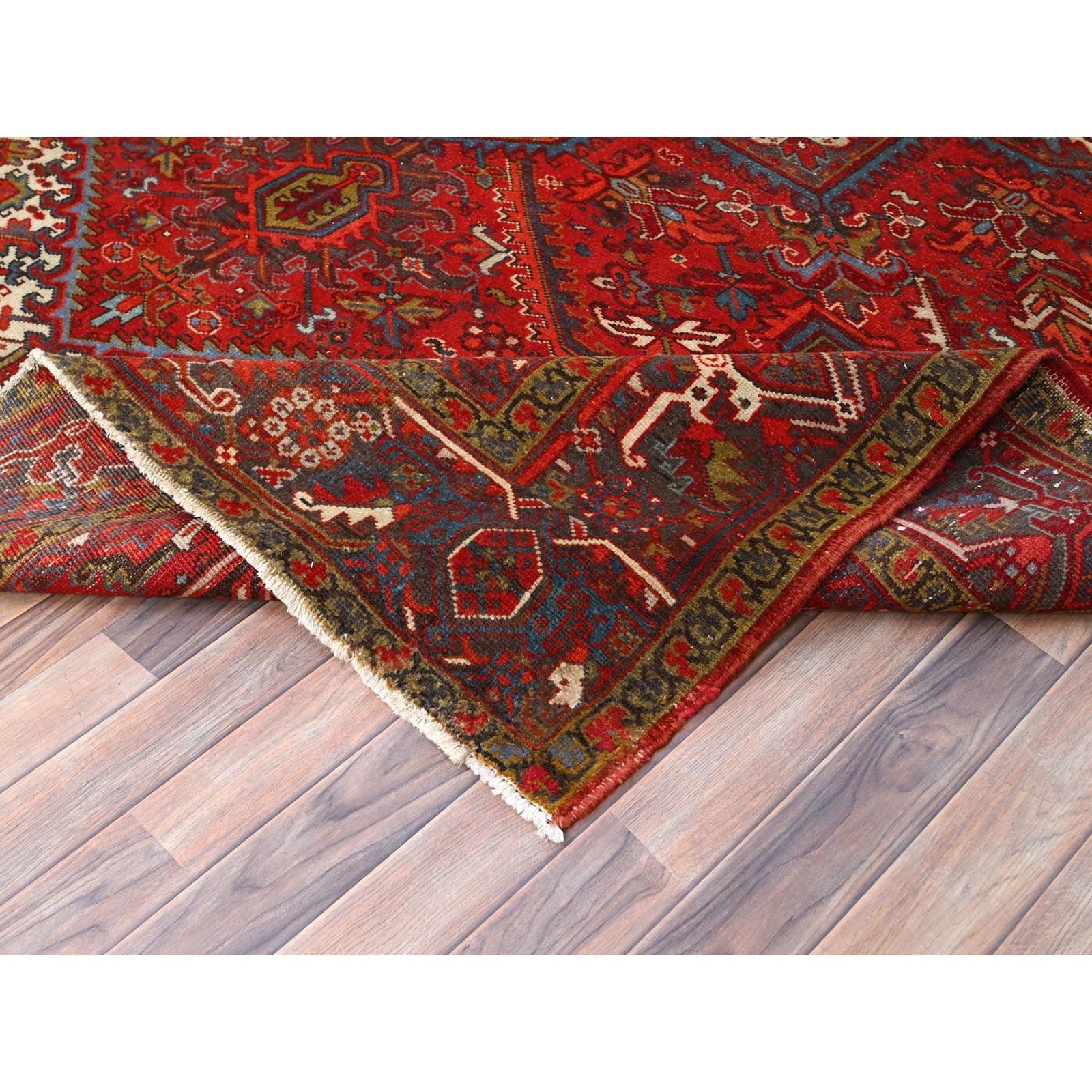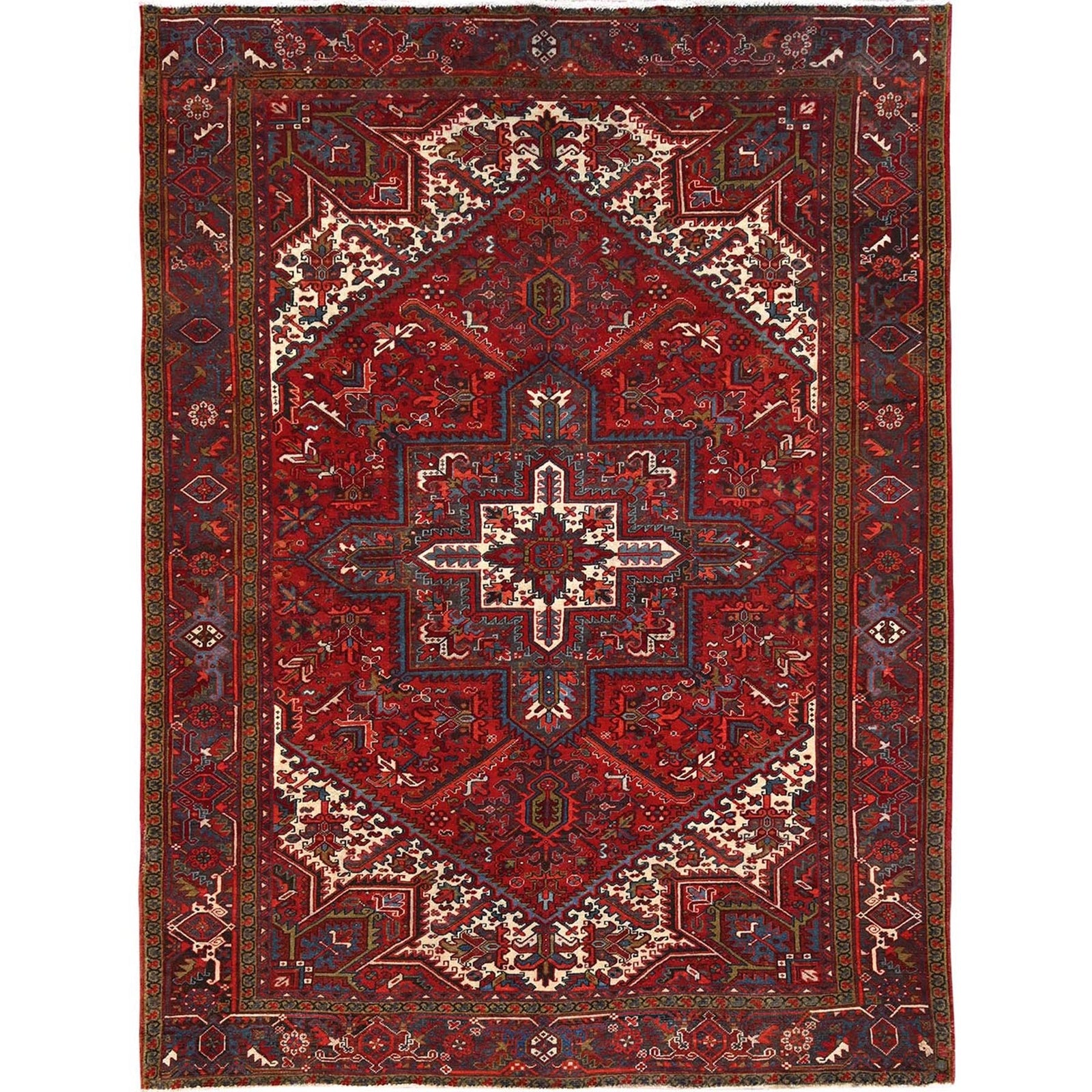 8'4"X10'10" Red Pure Wool Hand Knotted Vintage Zoroastrian Heris Rug