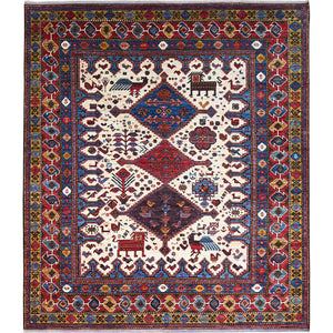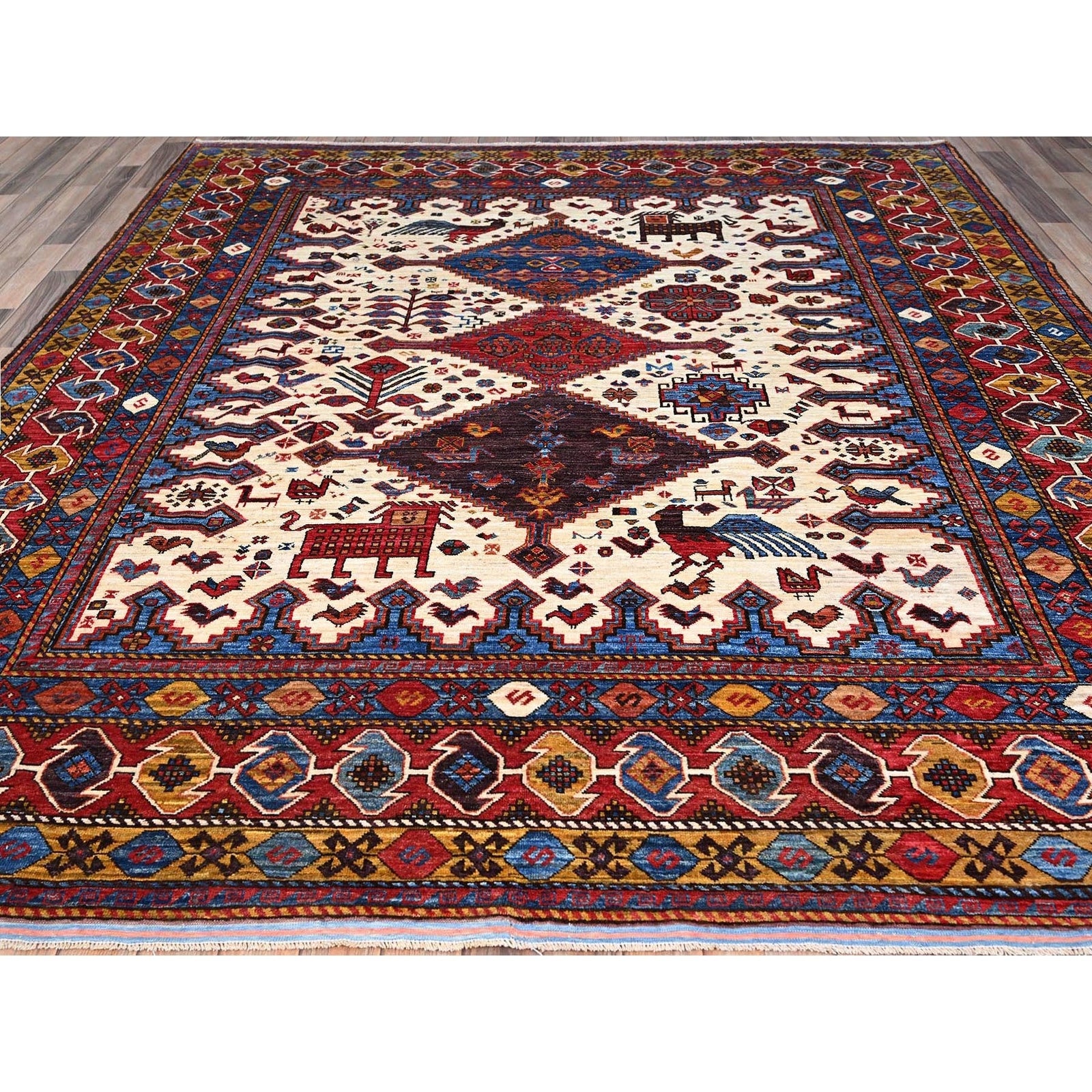 8'4"X9'3" Navajo White Turkish Knot Design Wool Hand Knotted Oriental Rug