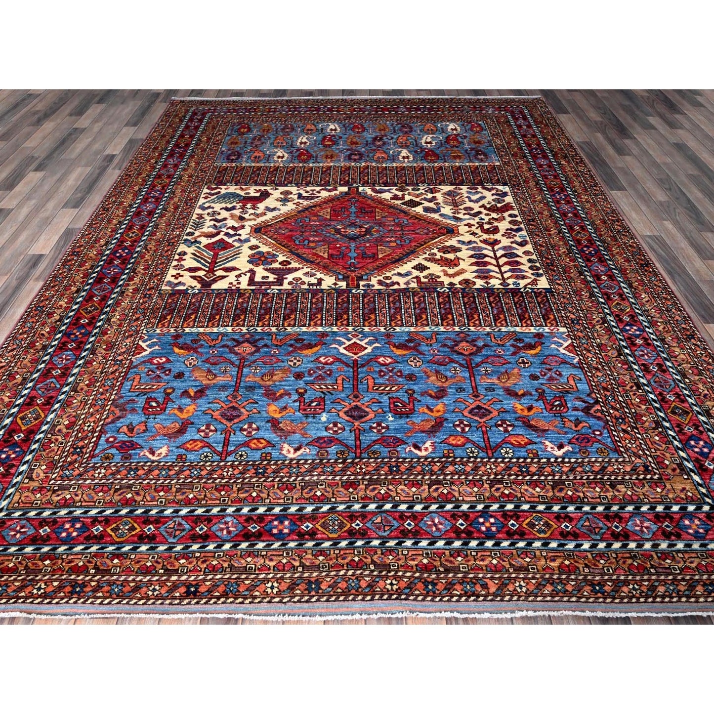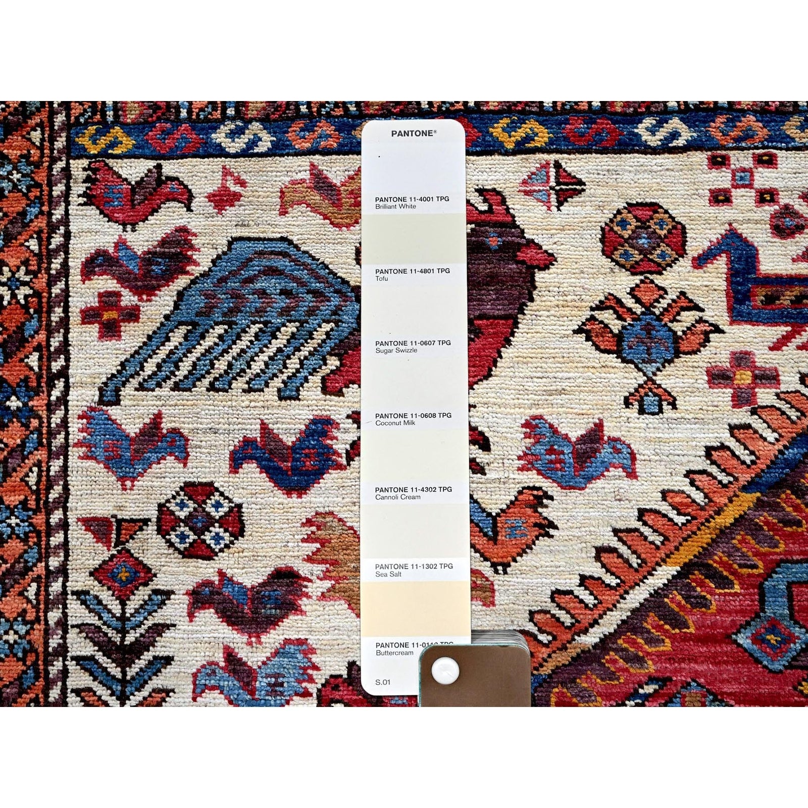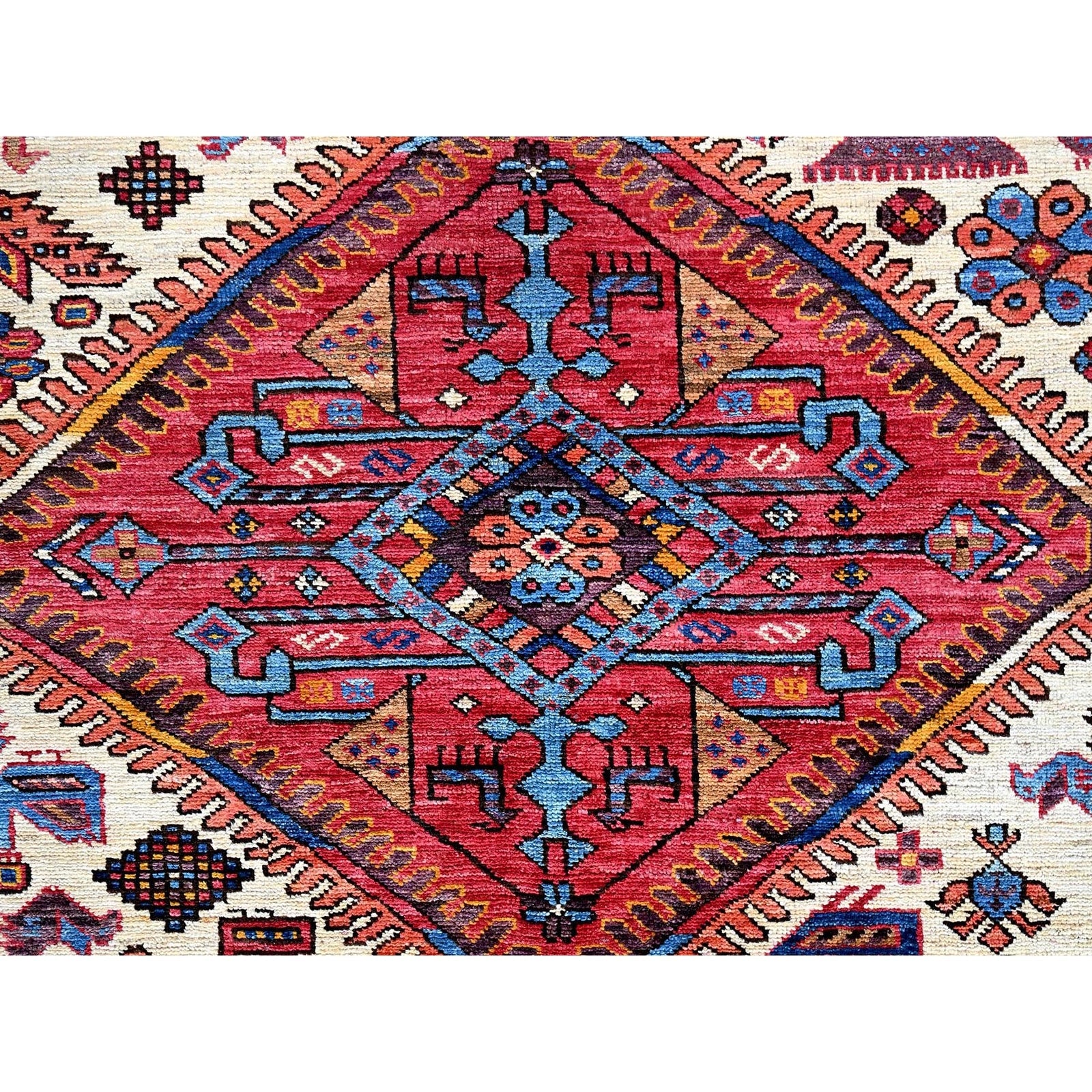 8'6"X10'8" White Hand Knotted Afghan Caucasian Design Revival Soft Wool Rug