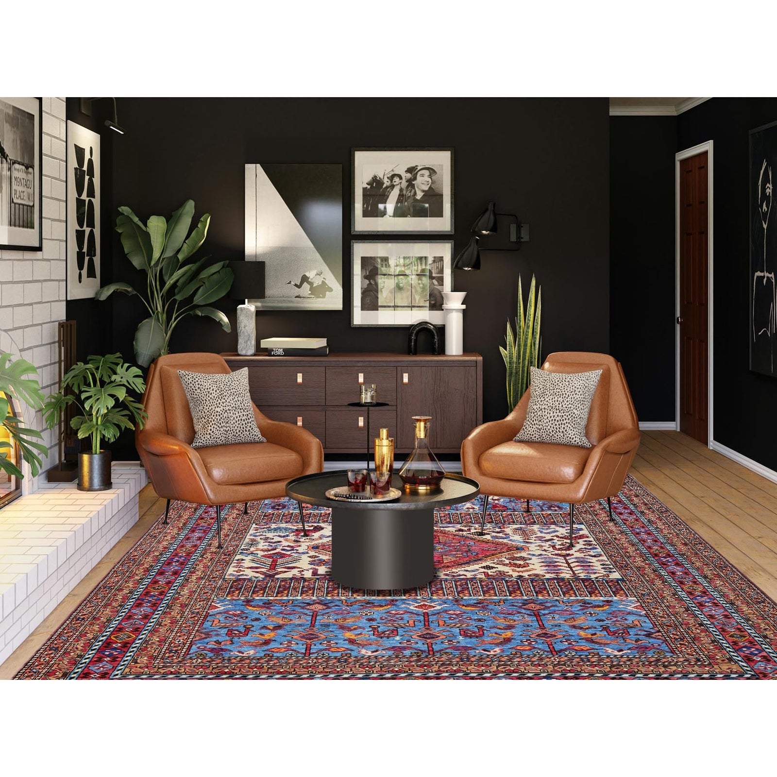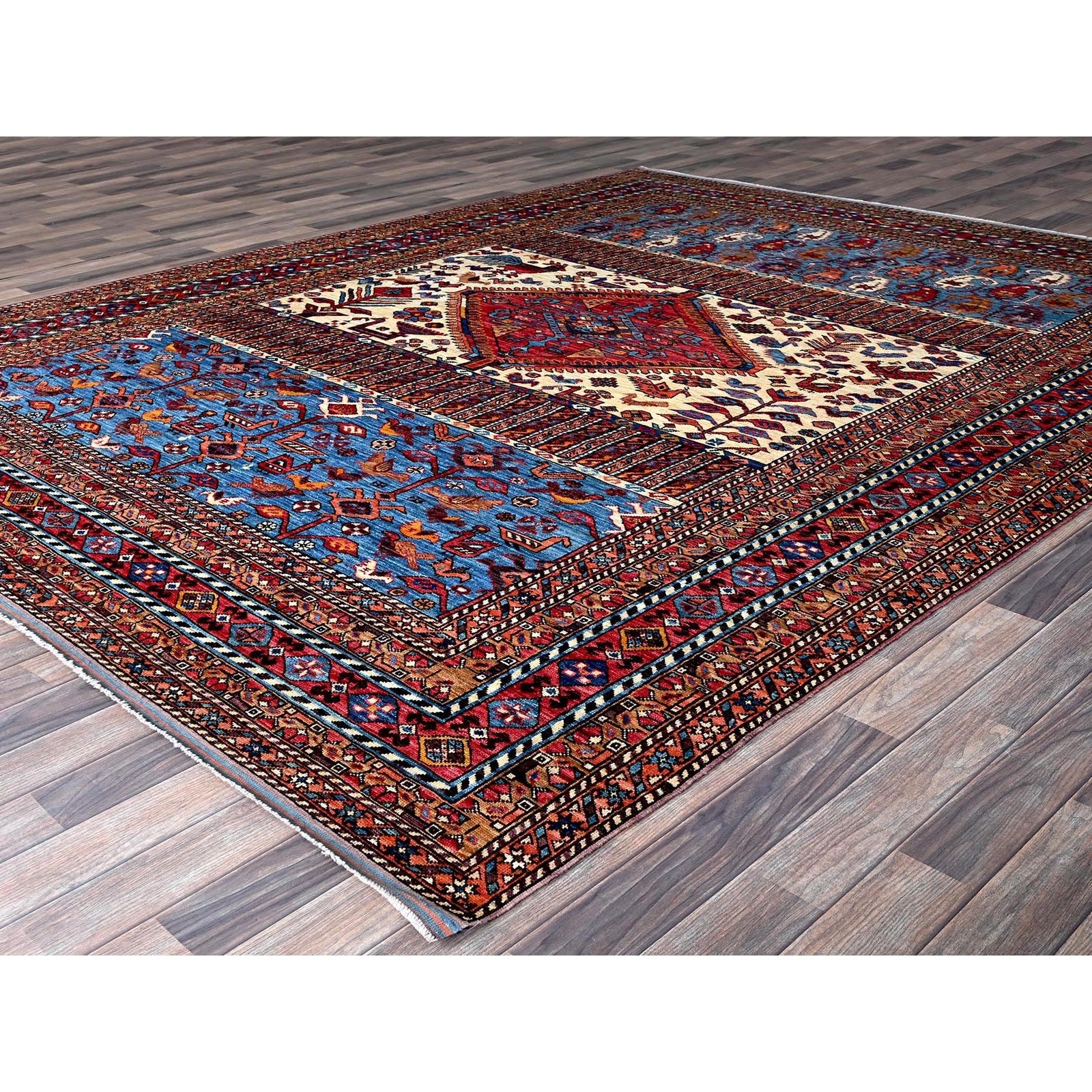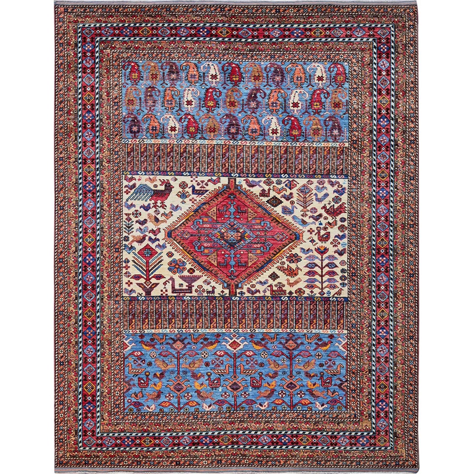 8'6"X10'8" White Hand Knotted Afghan Caucasian Design Revival Soft Wool Rug