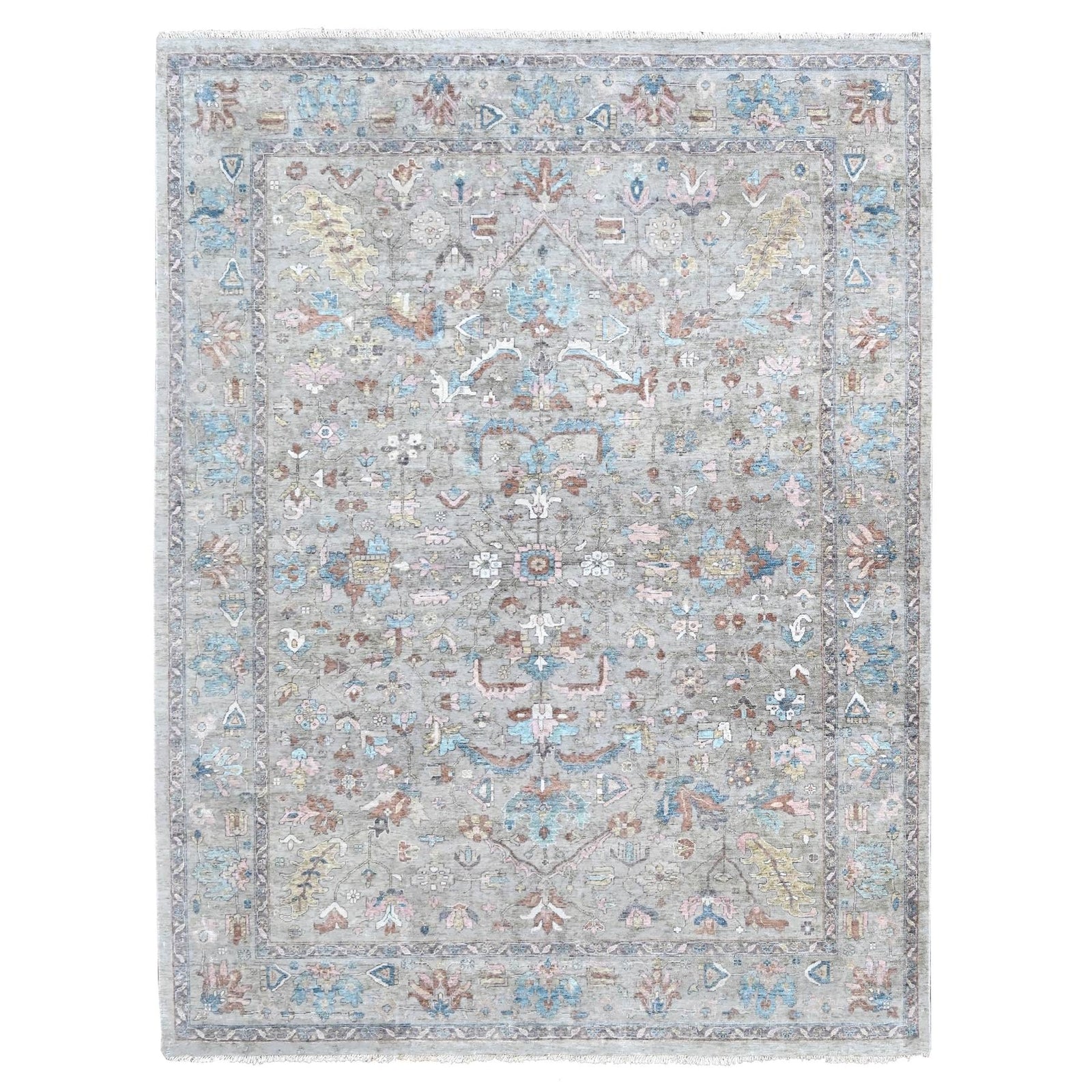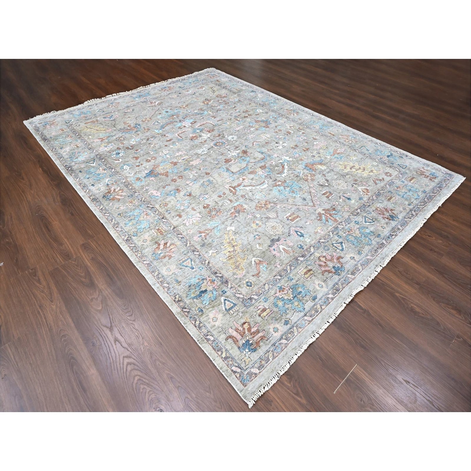 8'6"X11'3" Light Brown Antiqued Tebraz Design Pure Wool Hand Knotted Rug