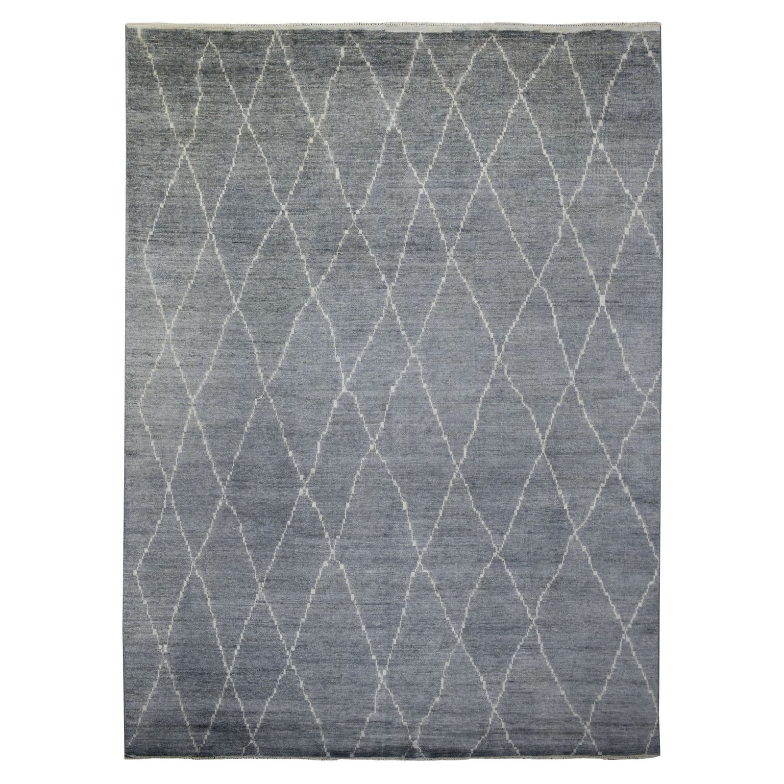 8'6"X11'6" Gray, Hand Knotted, Moroccan Berber, Soft Wool Rug