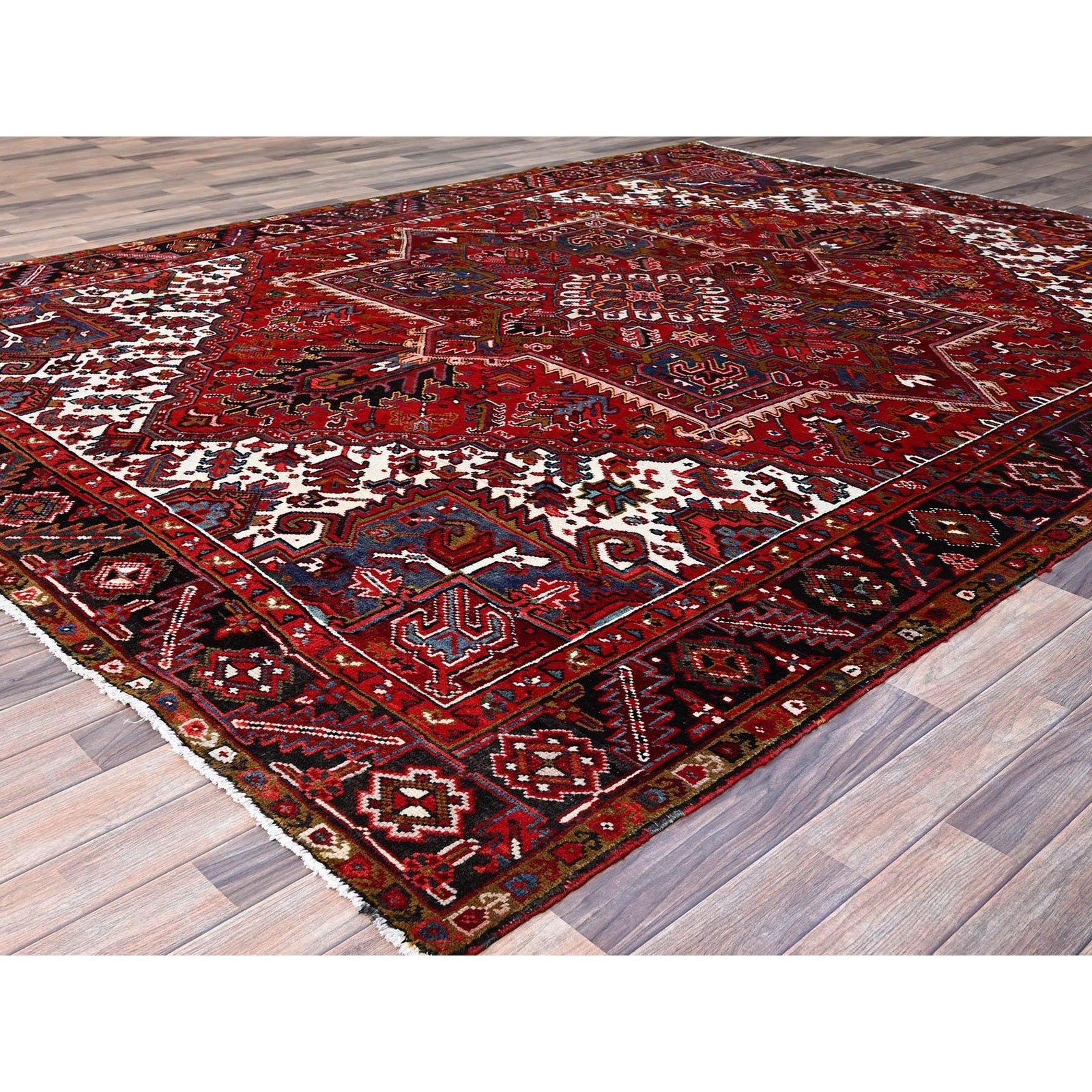 8'7'X11'1" Red Vibrant Wool Tribal Village Nomad Art Vintage Oriental Rug