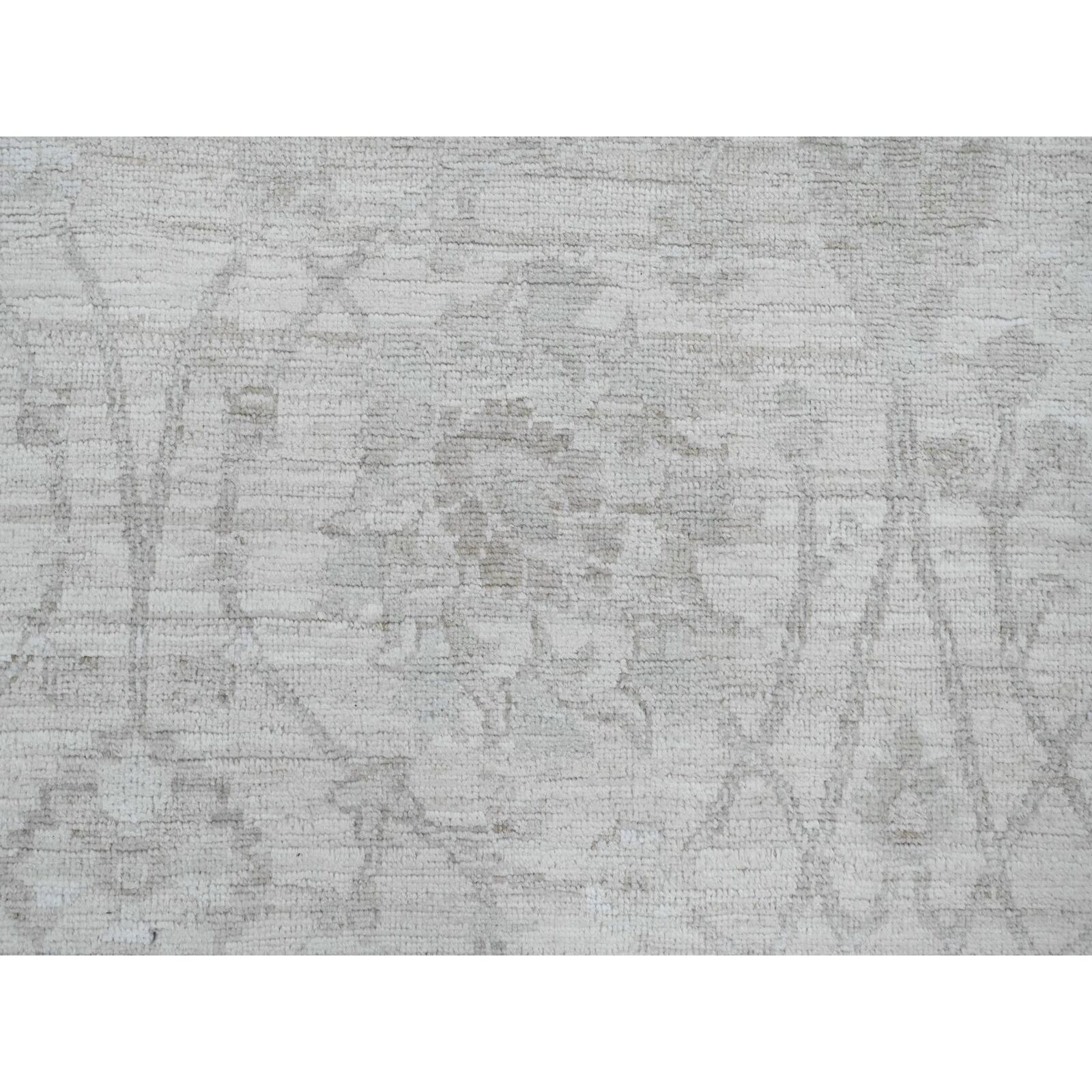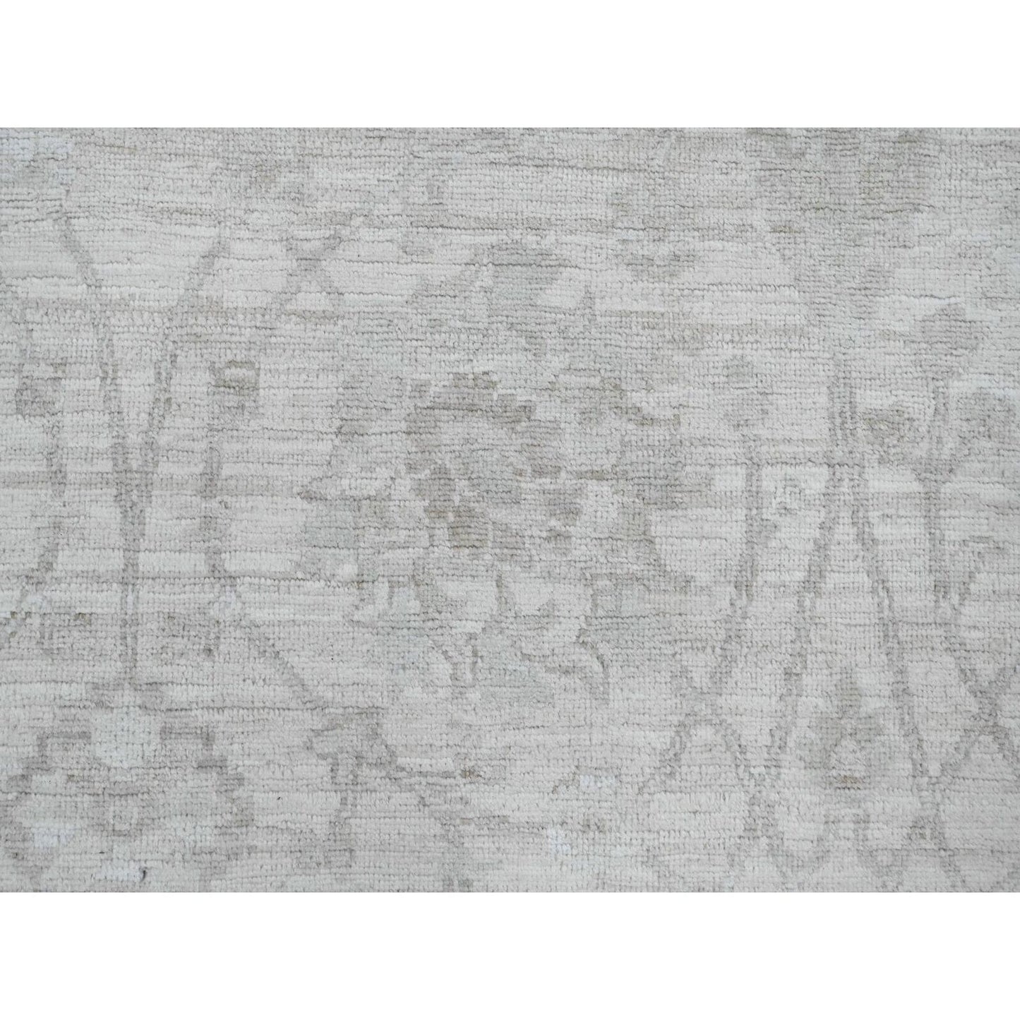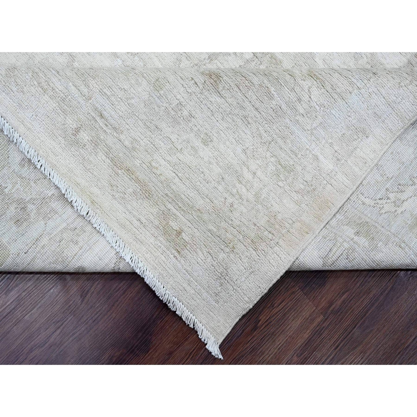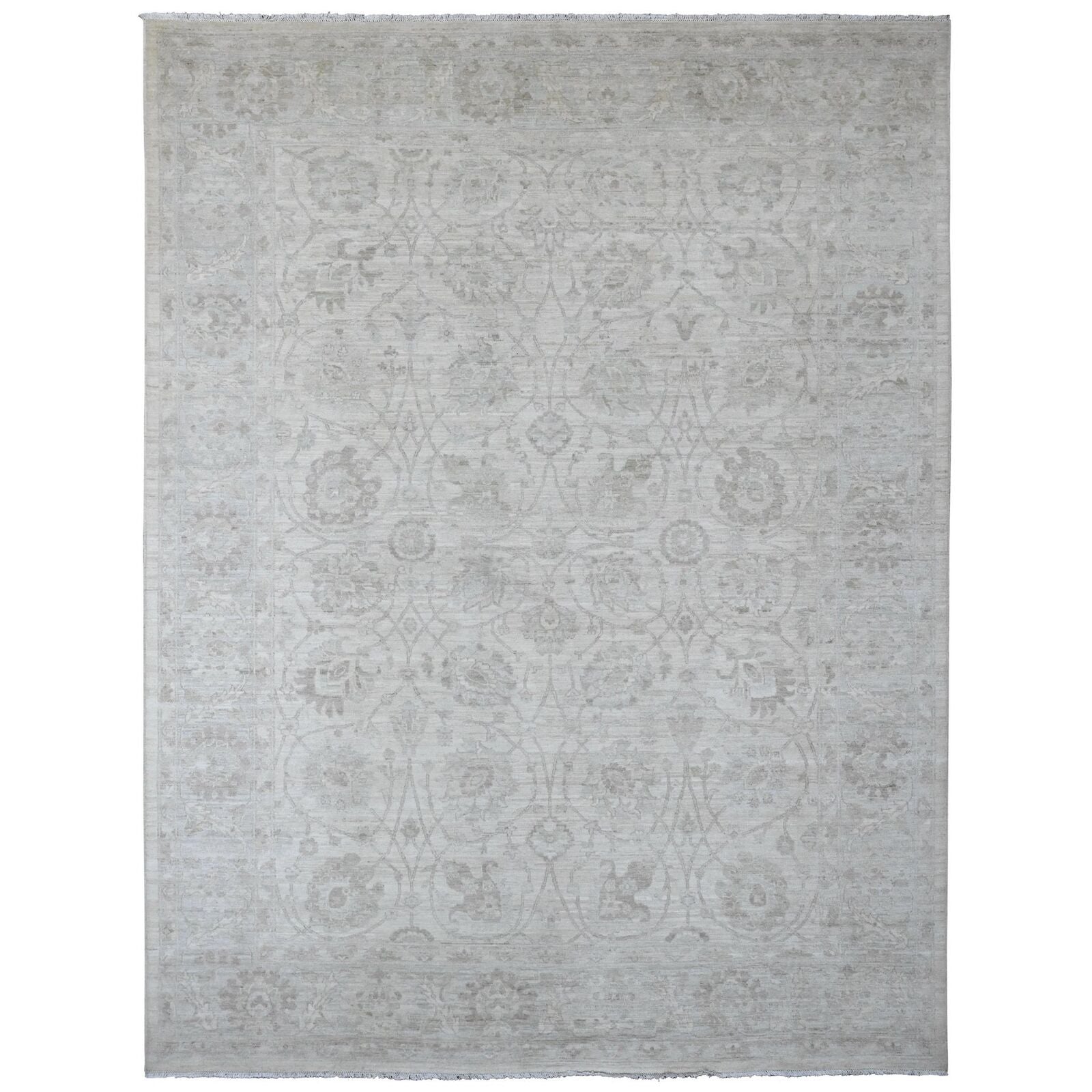 8'8"X11'5" White Hand Knotted Washed Out Peshawar Leaf Pattern Wool Rug
