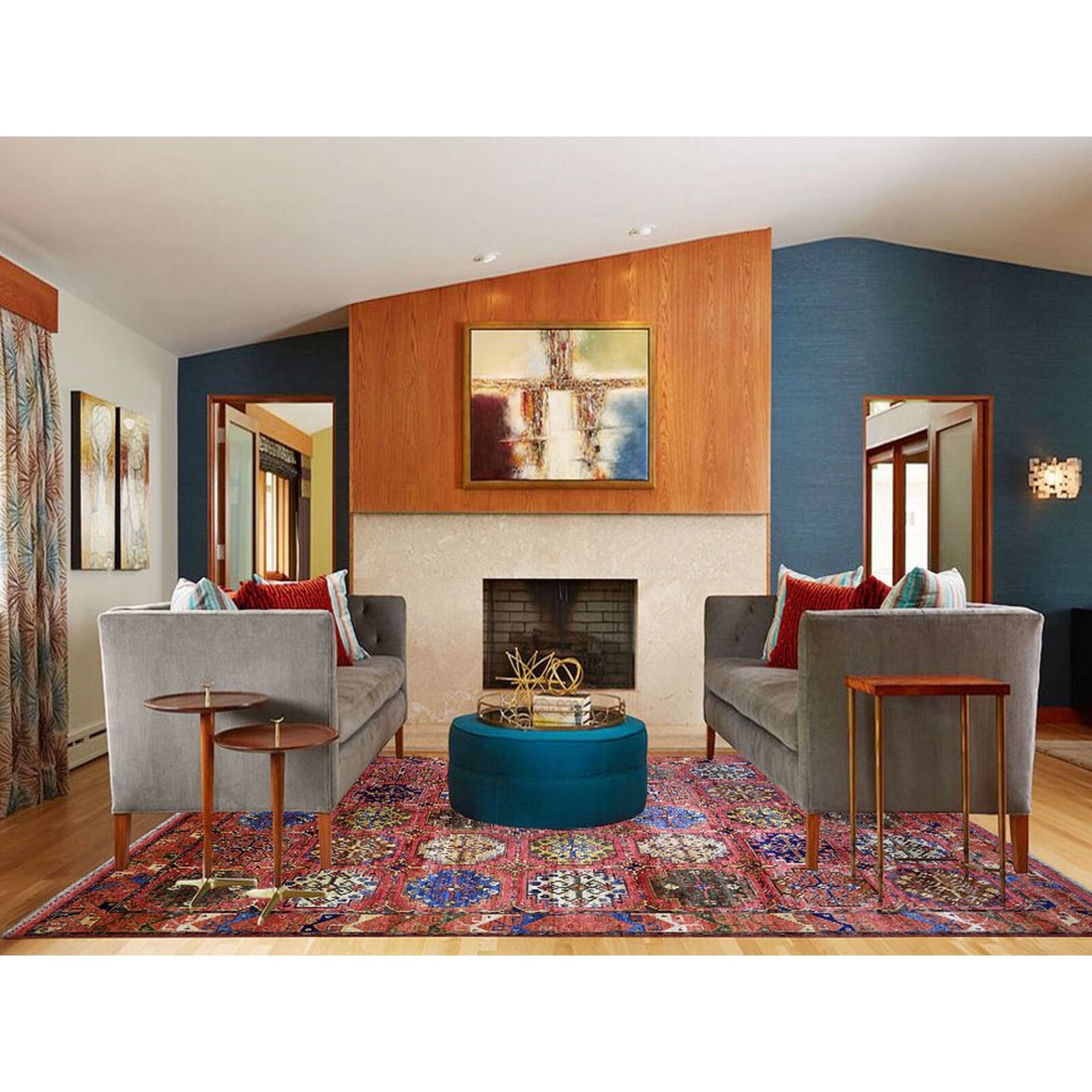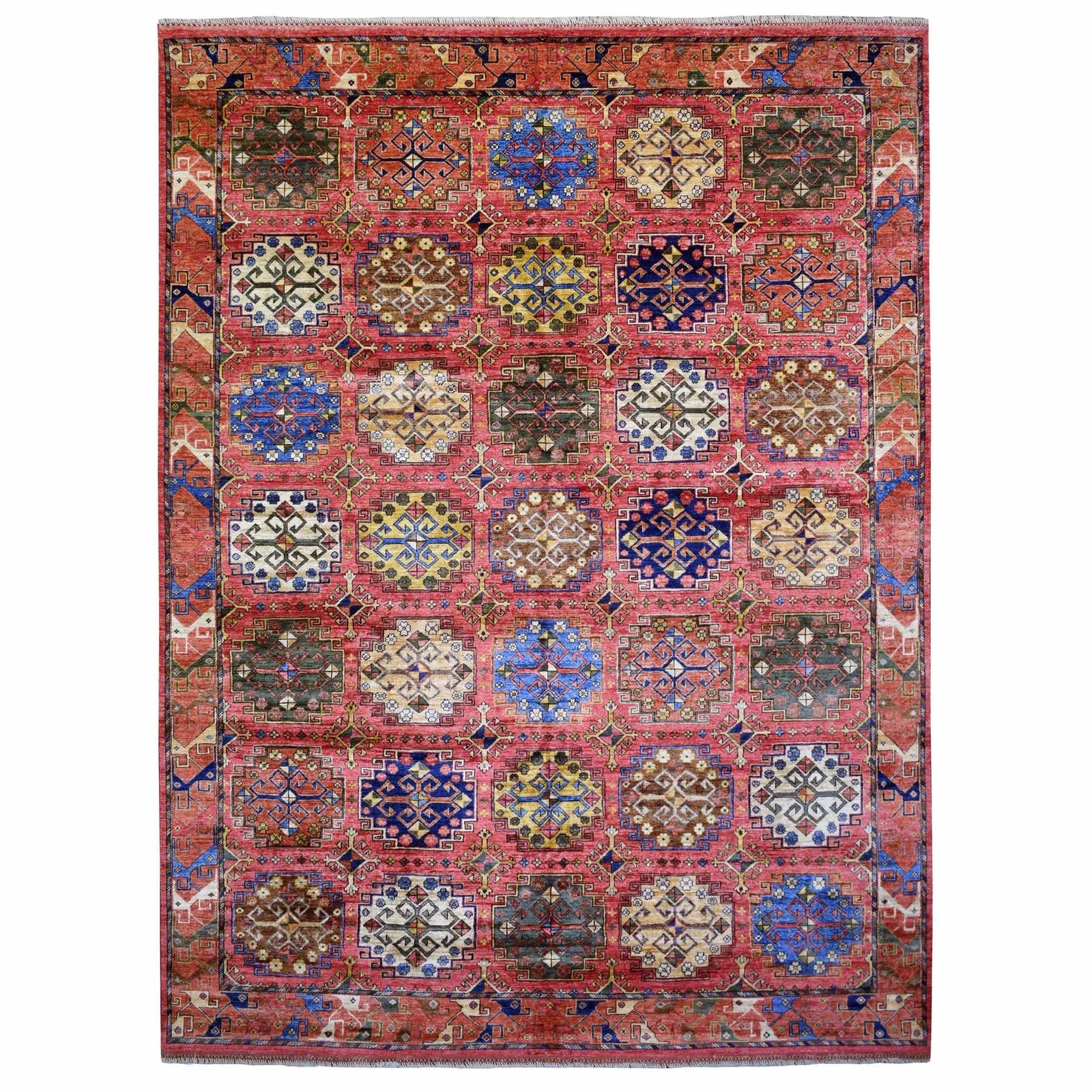 8'8"X11'7"Red Turkeman Ersari With Geometric Design Wool Hand Knotted Rug
