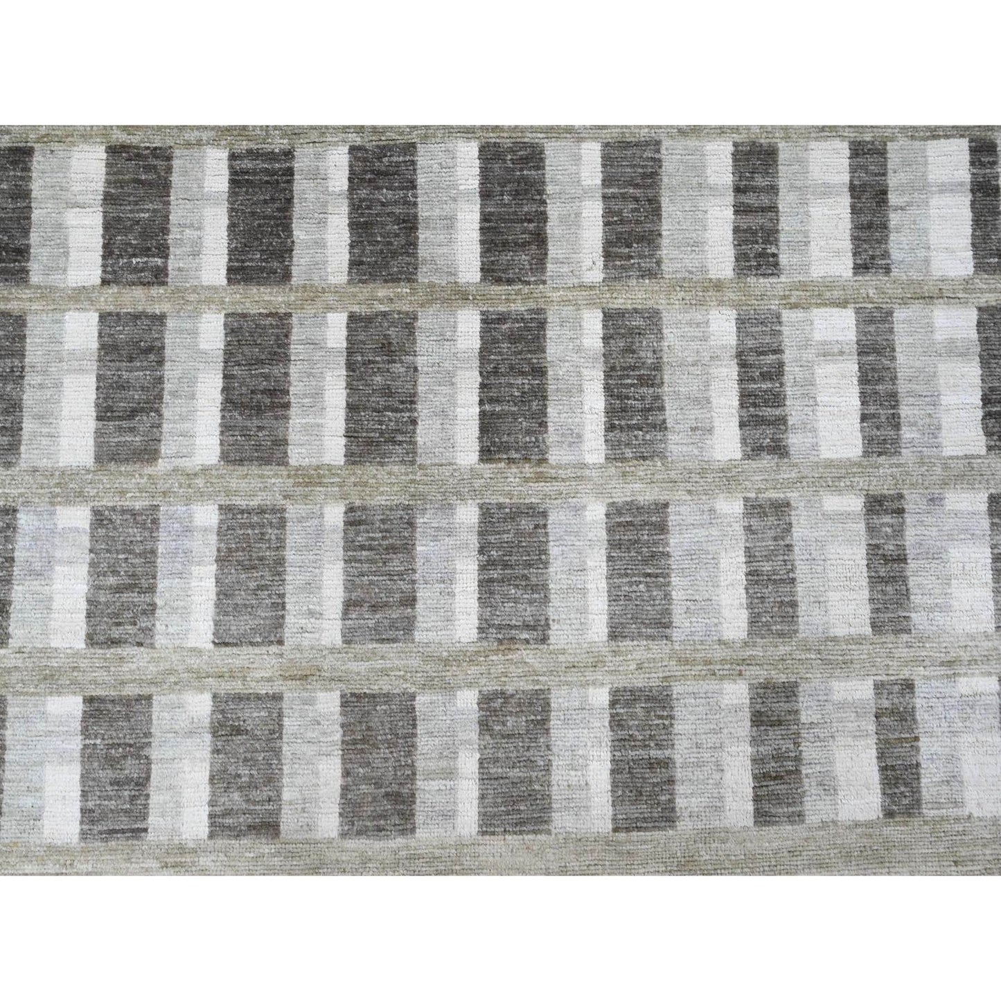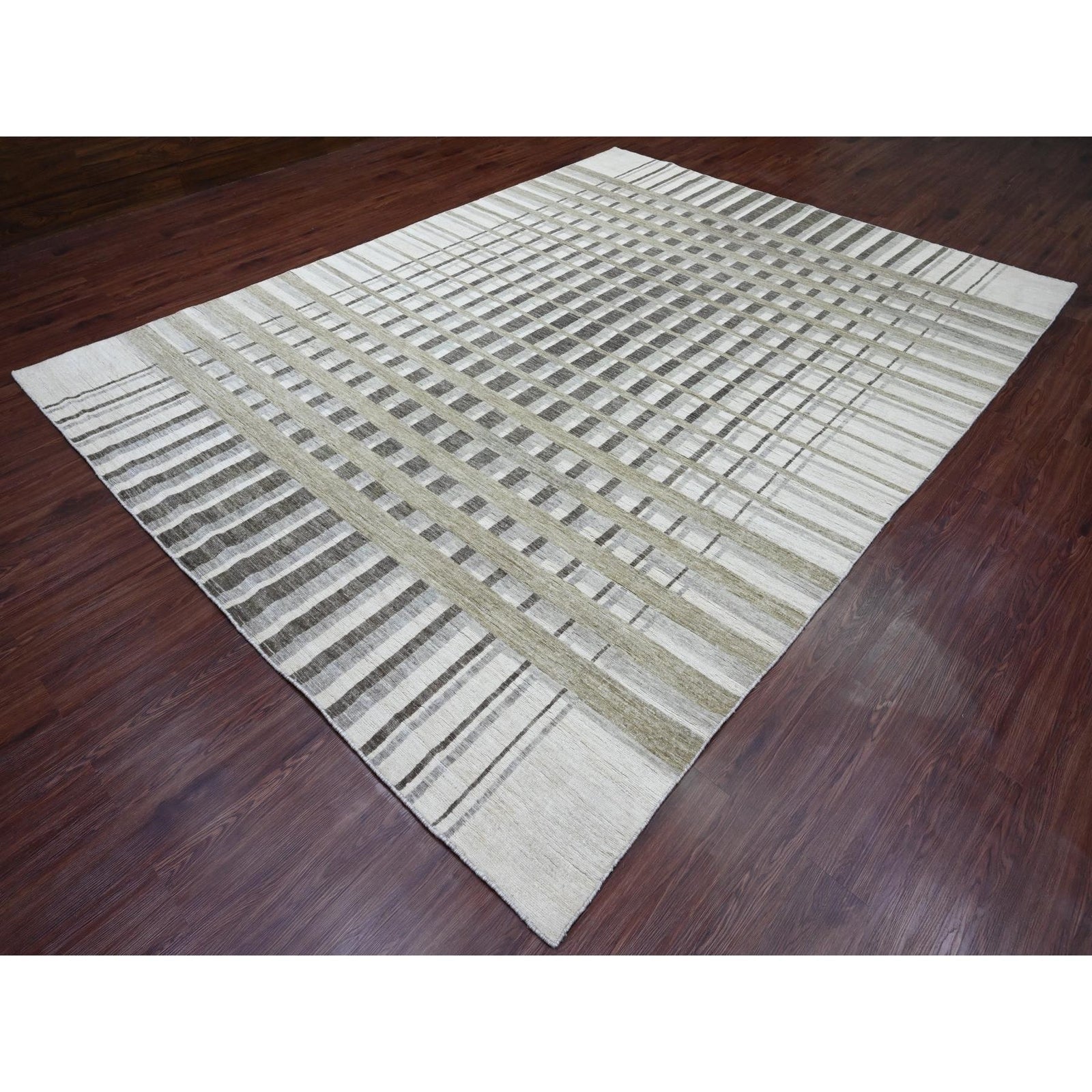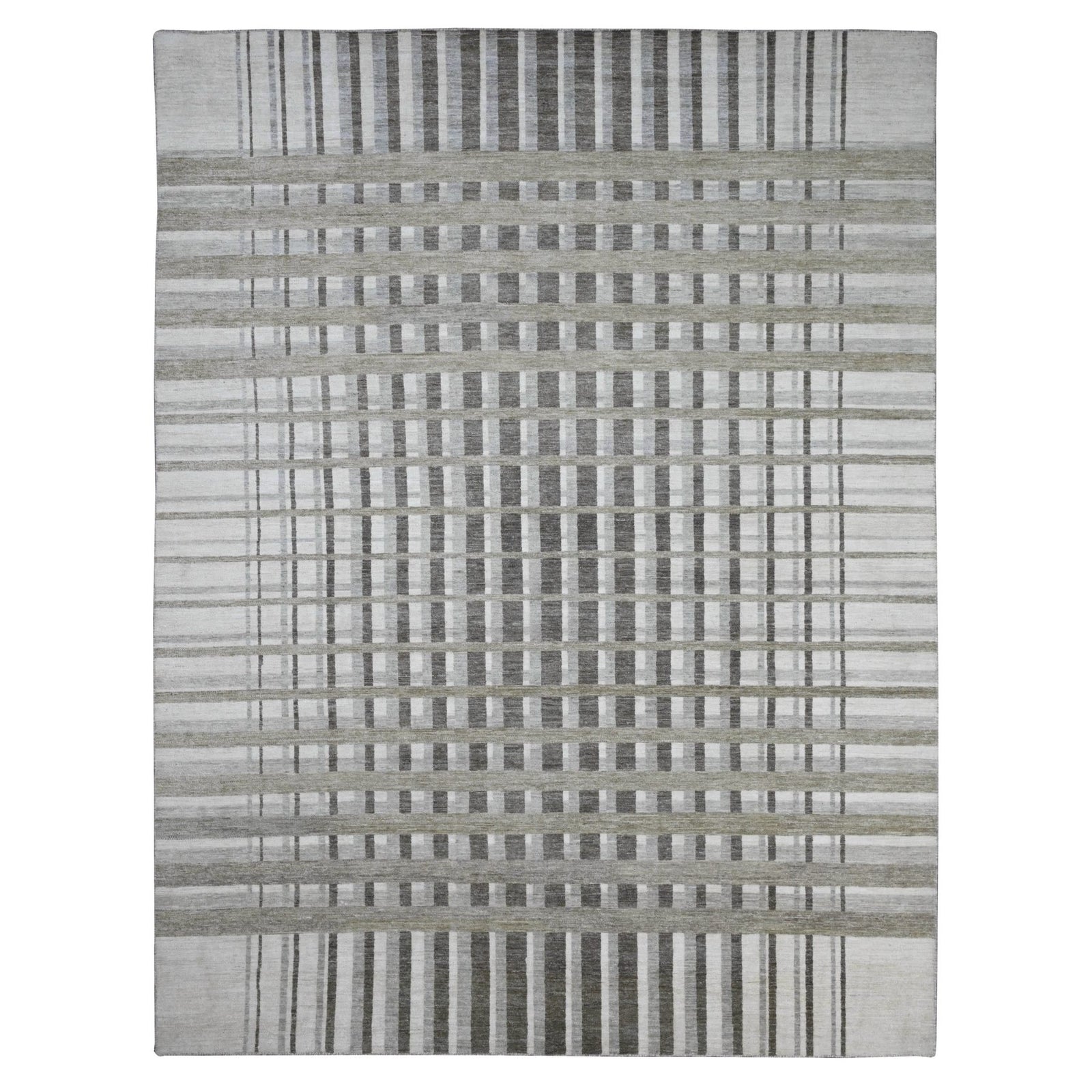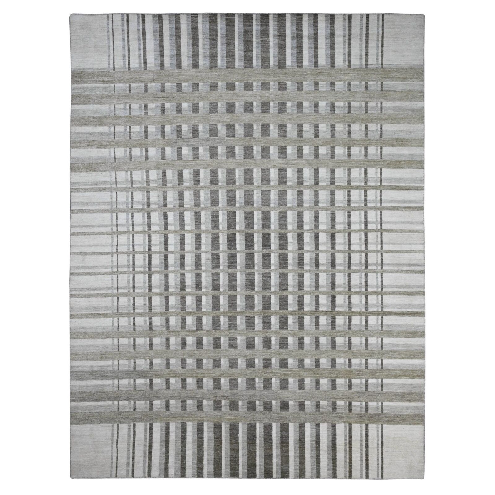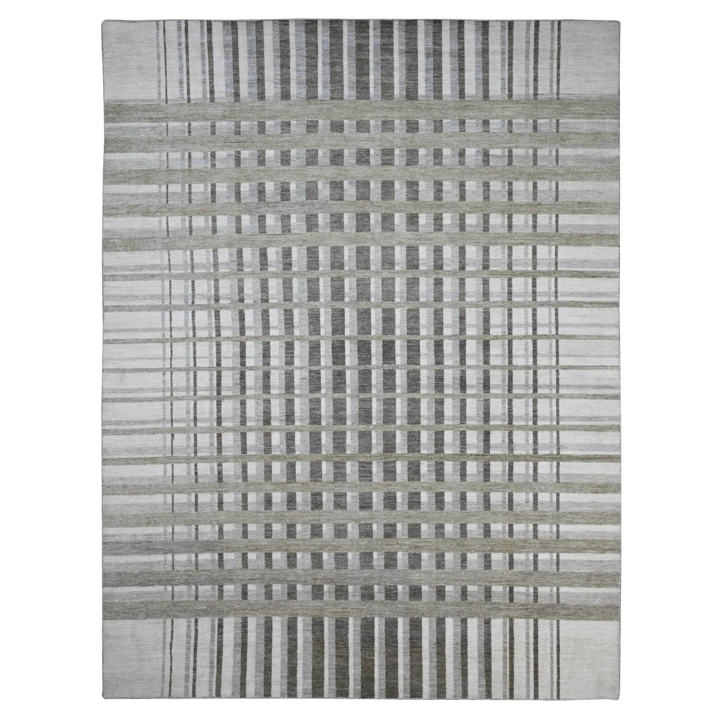 8'8"X11'8" Brown Bauhaus Inspired Line Design Hand Knotted Pure Wool Rug