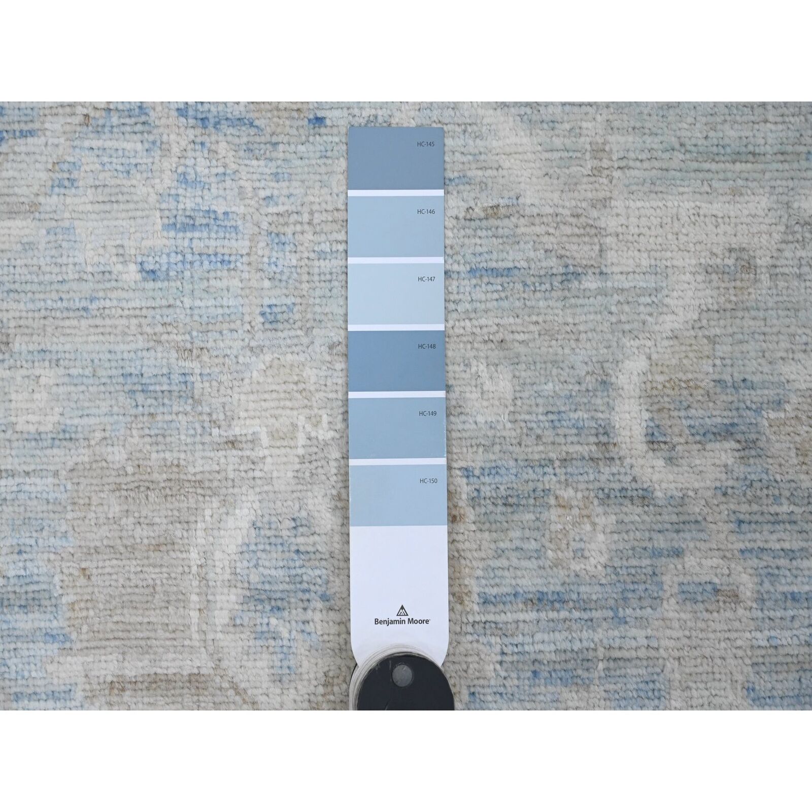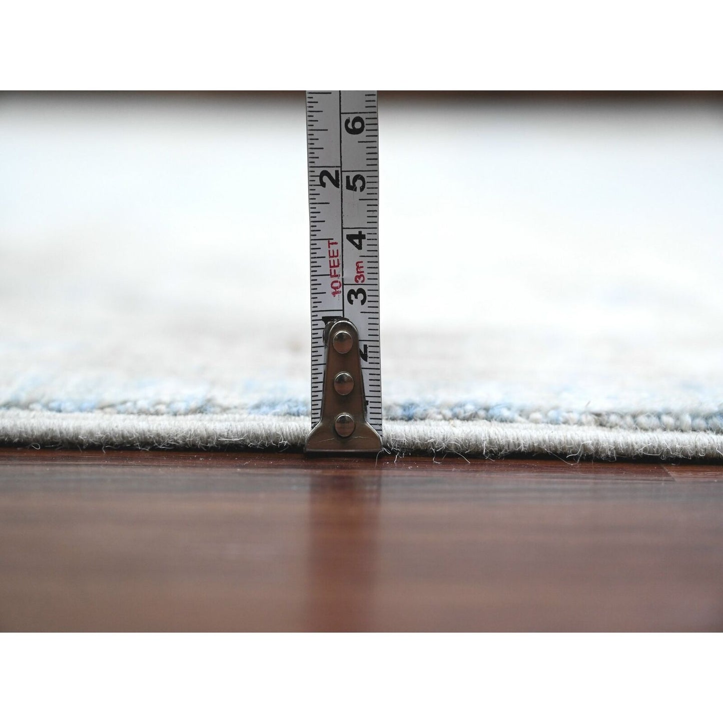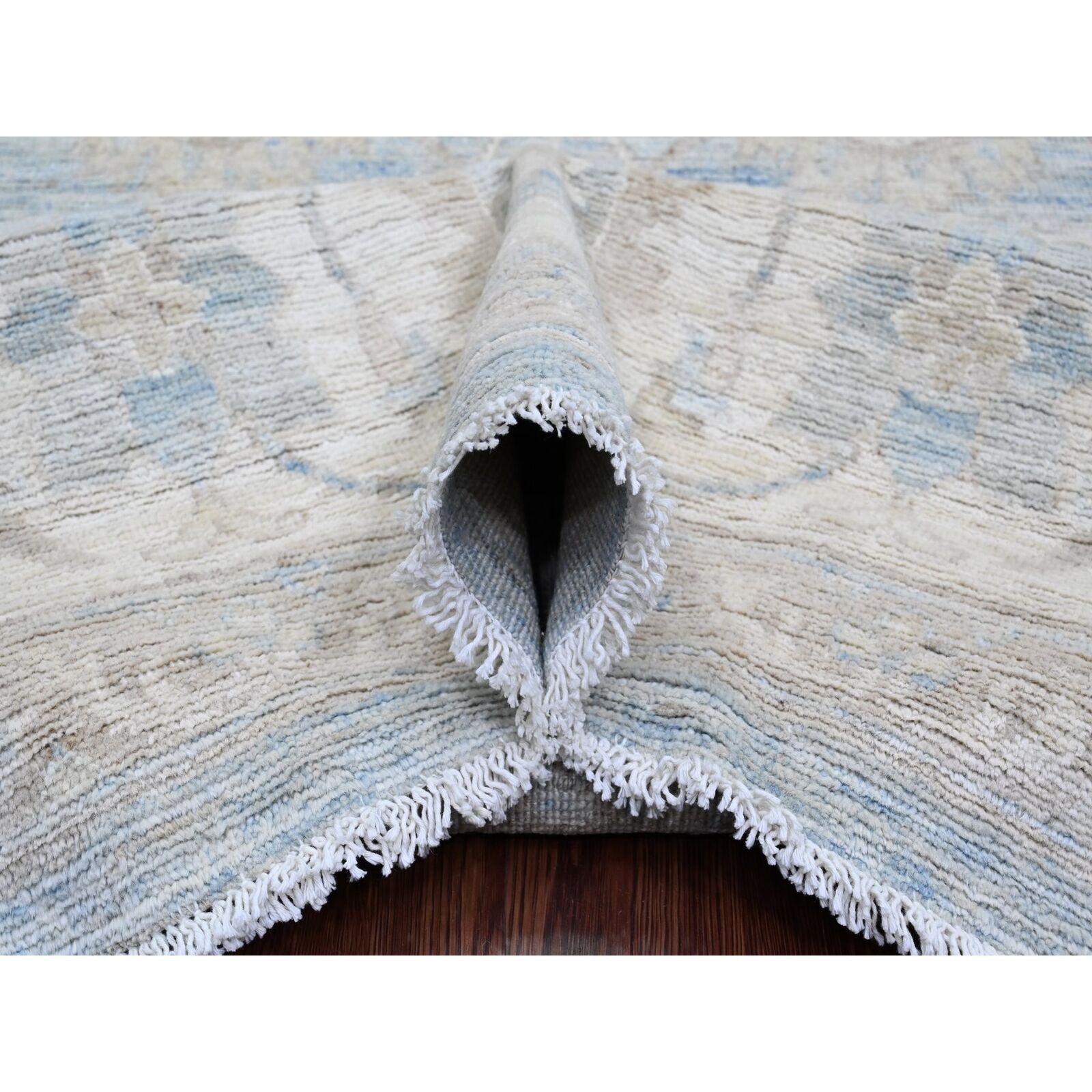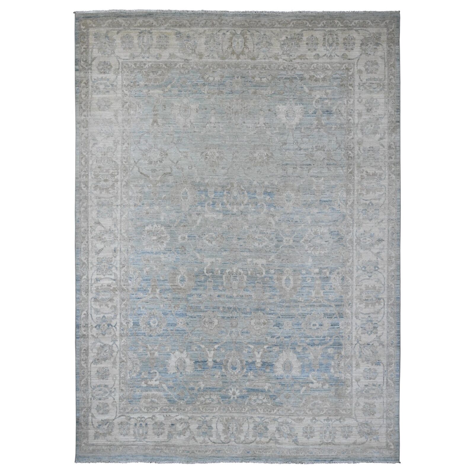 8'8"X12' Blue White Wash Peshawar Leaf Design Hand Knotted Pure Wool Rug
