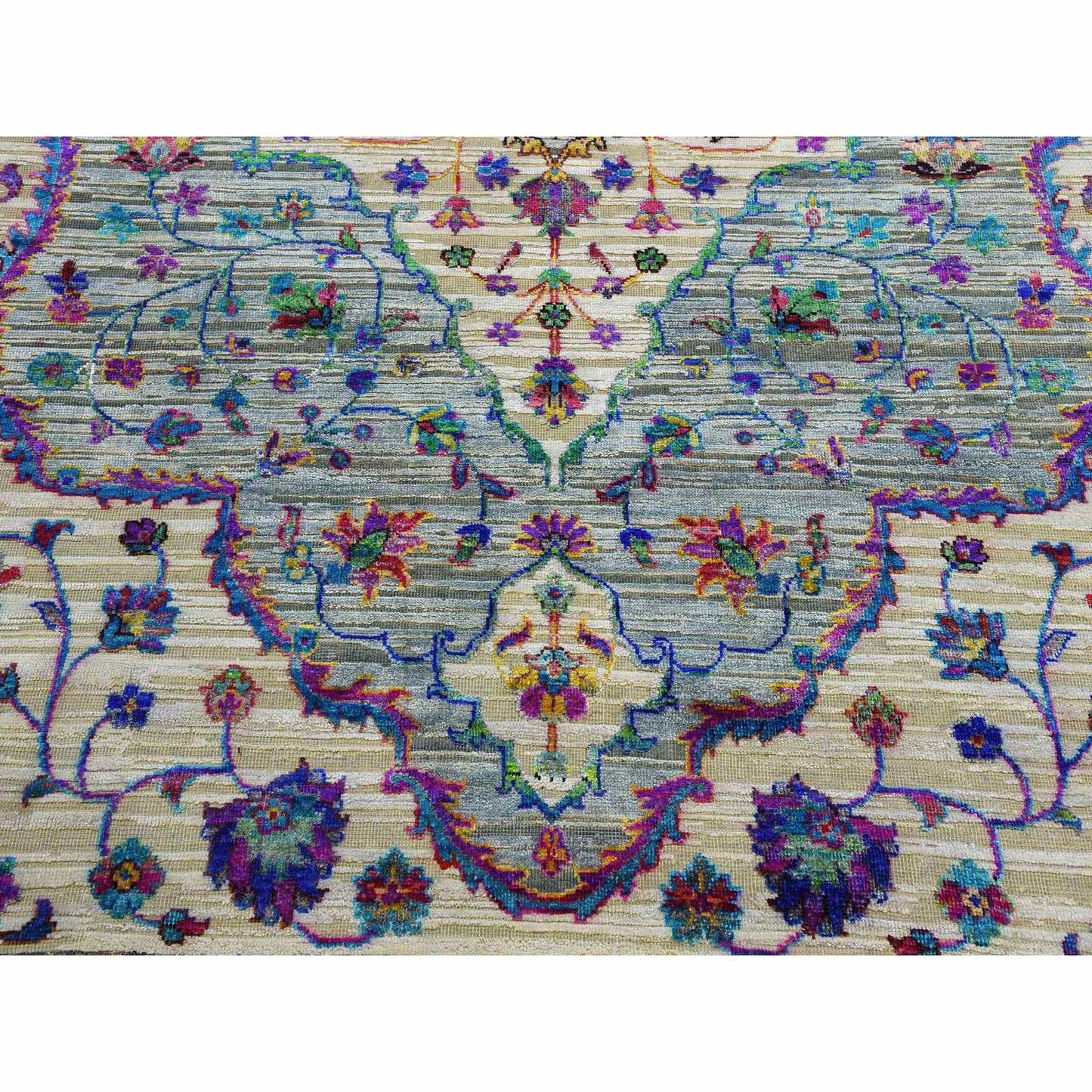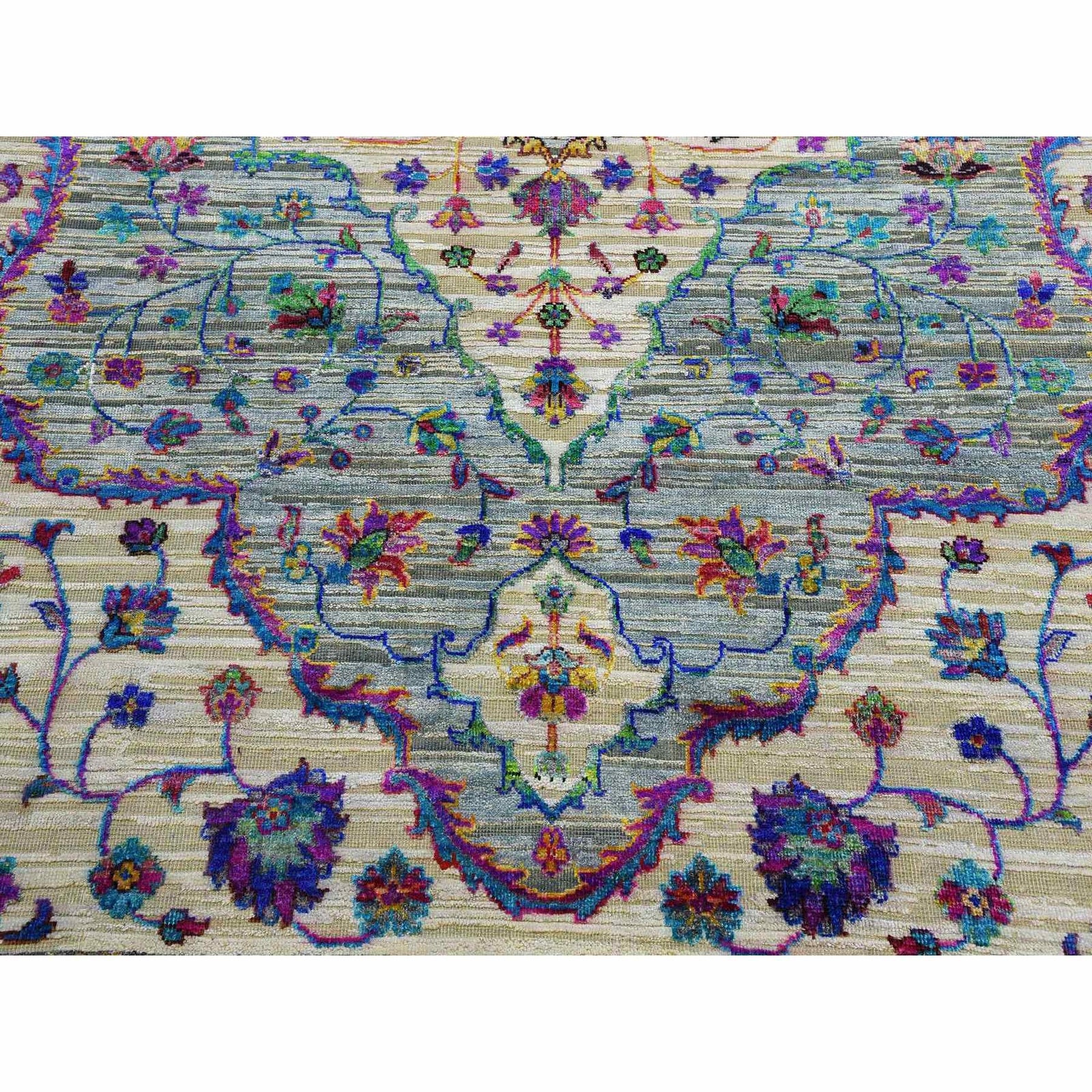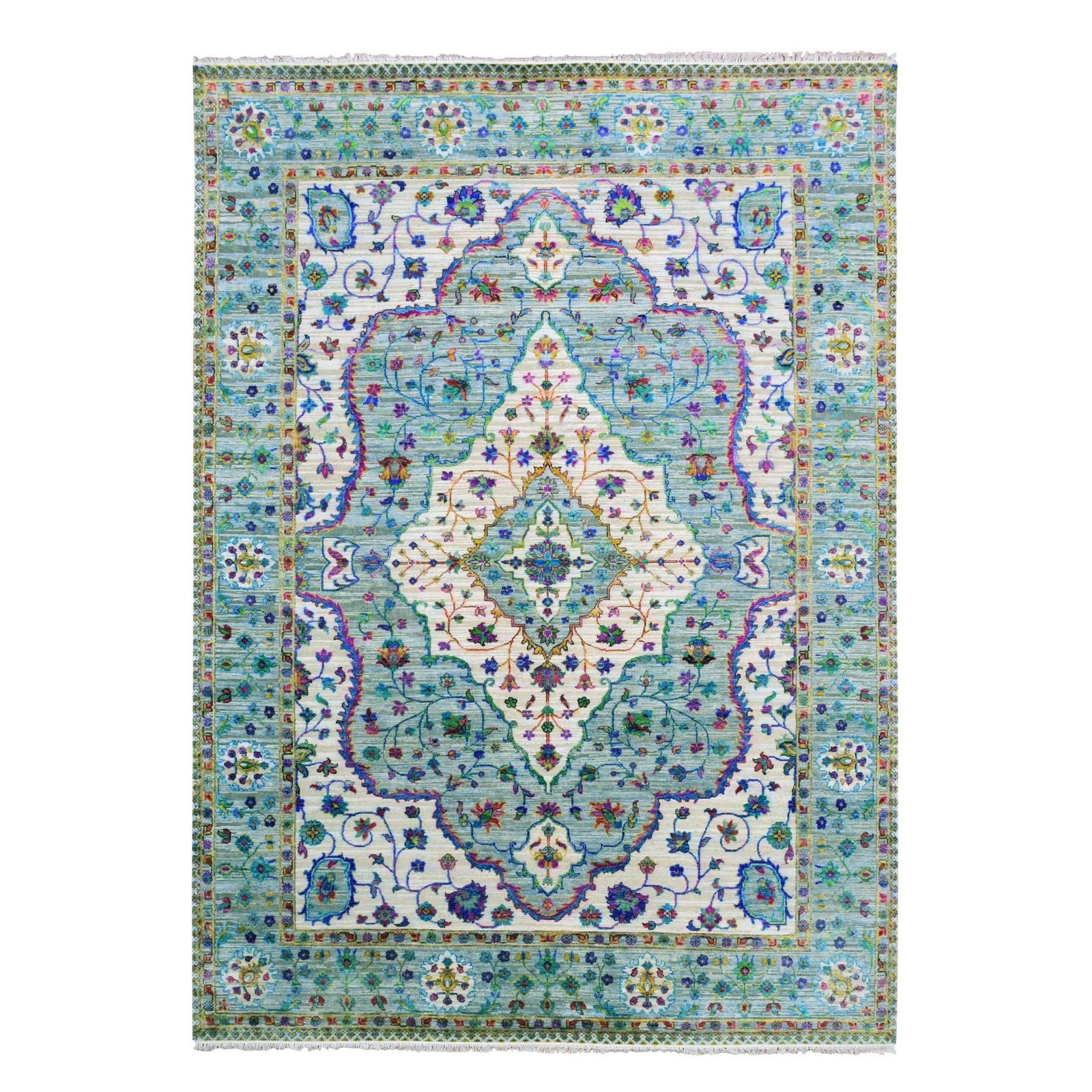 8'8"X12' Blueish Gray Medallion Design Silk With Wool Hand Knotted Rug