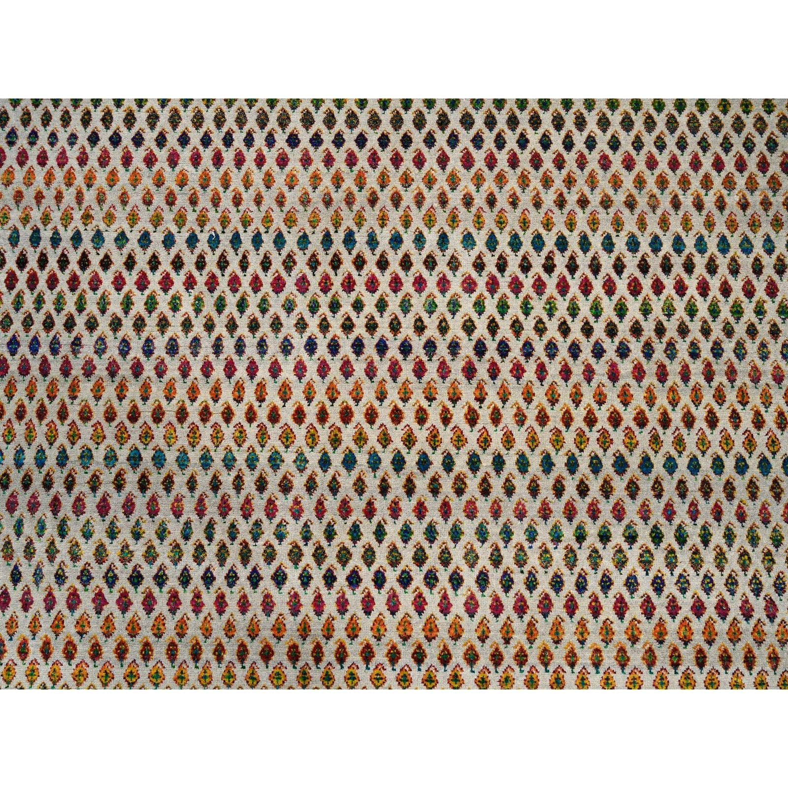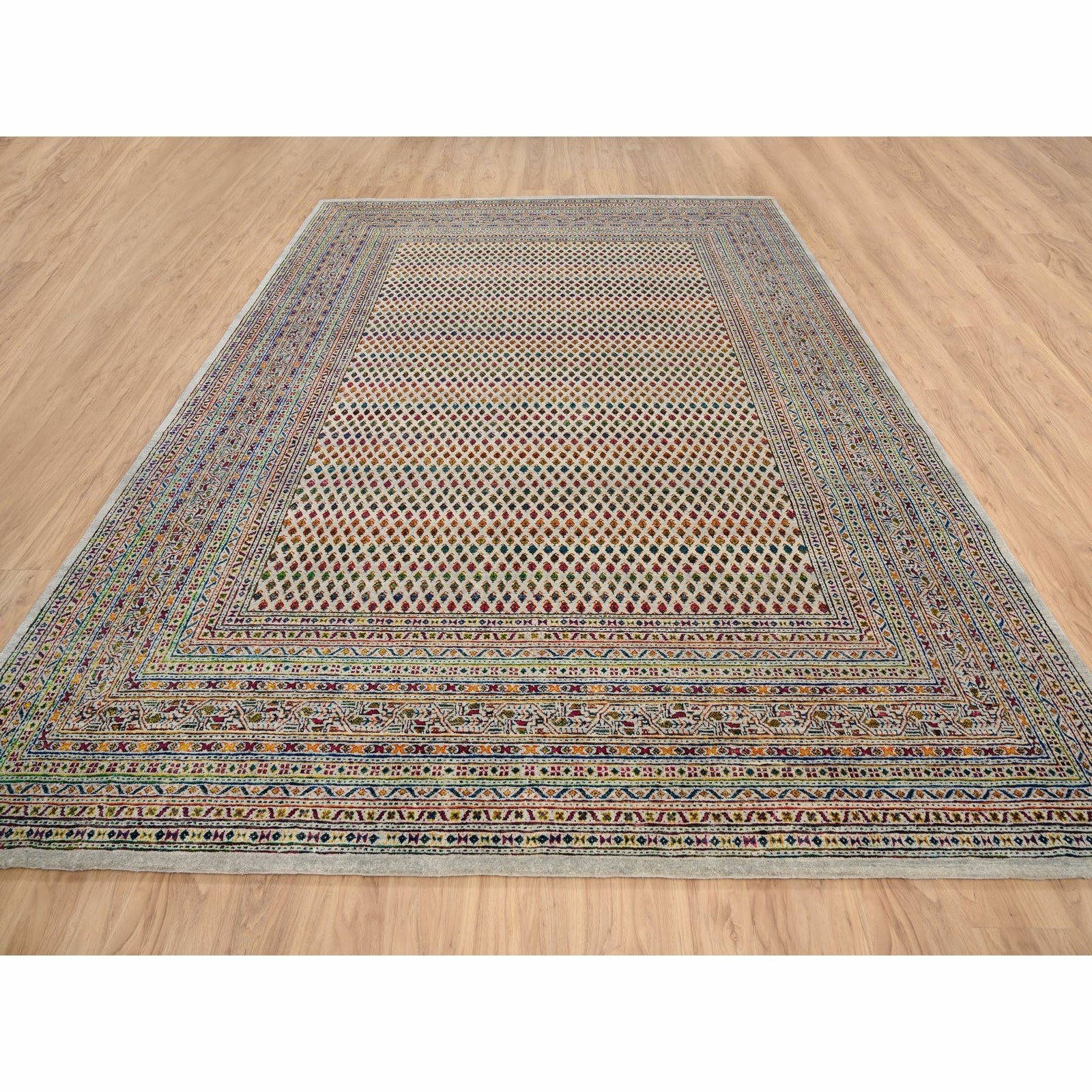 8'8"X12'2" Hand Knotted Beige Saroogh Colorful Wool And Sari Silk Rug