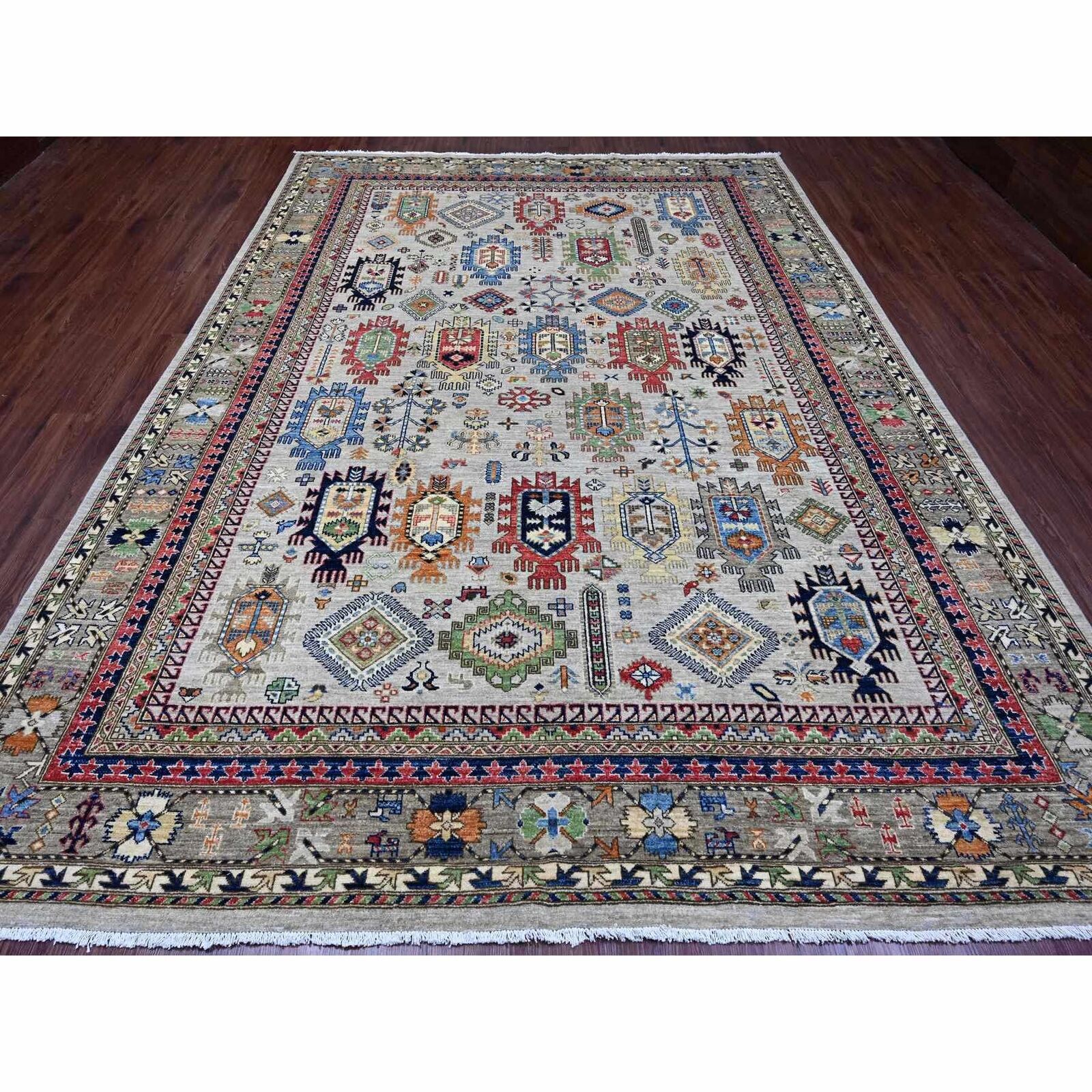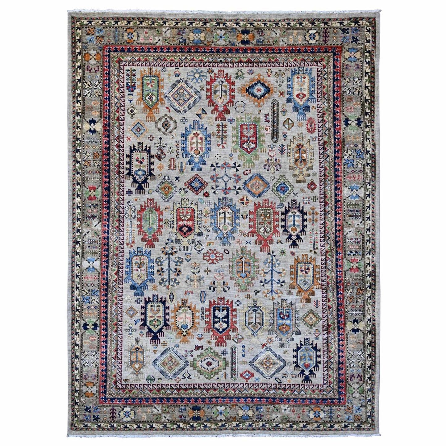 8'9"X11'10" Gray Caucasian Inspired Antiqued Design Wool Hand Knotted Rug